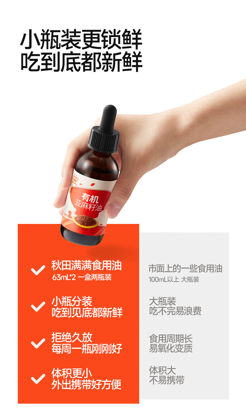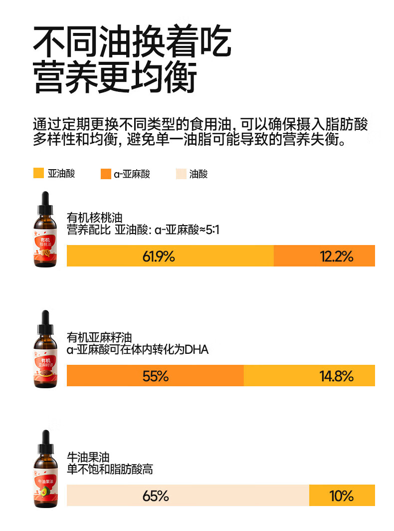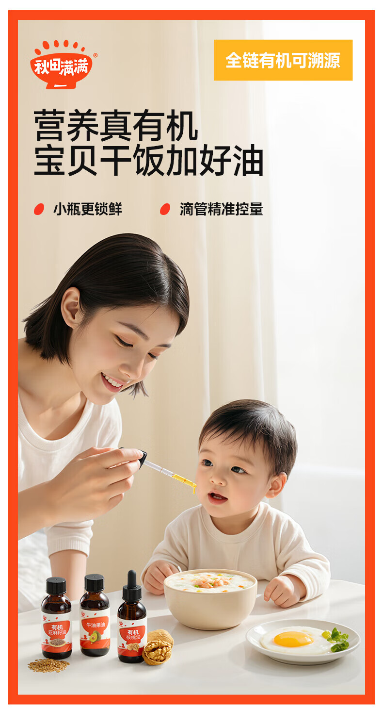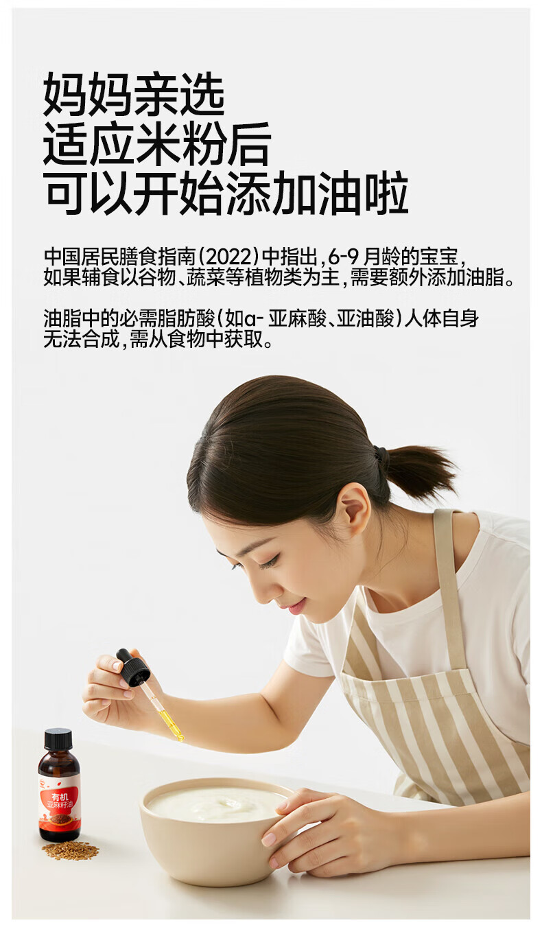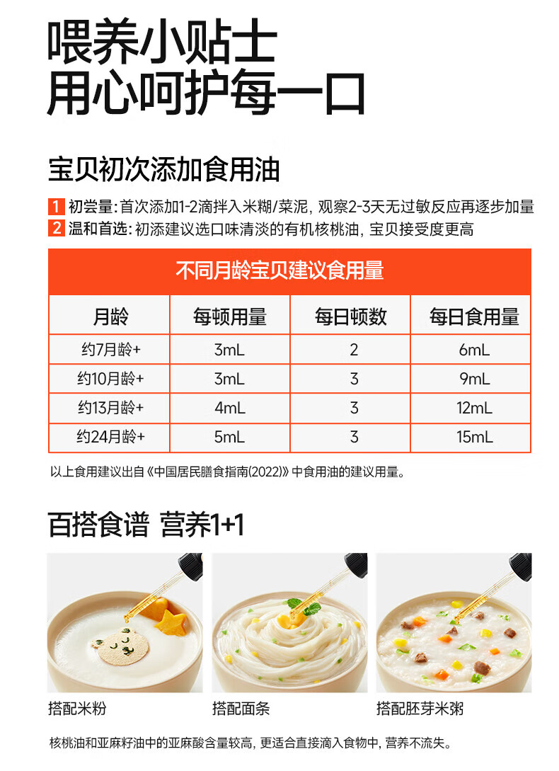 秋田满满有机核桃油 儿童核桃油牛油果油亚麻籽食用油-享婴儿营养食谱 有机核桃油126ml +营养面40g