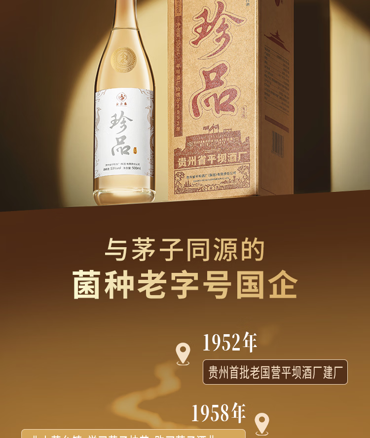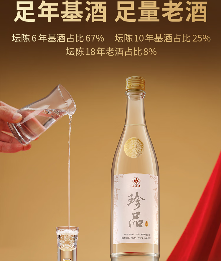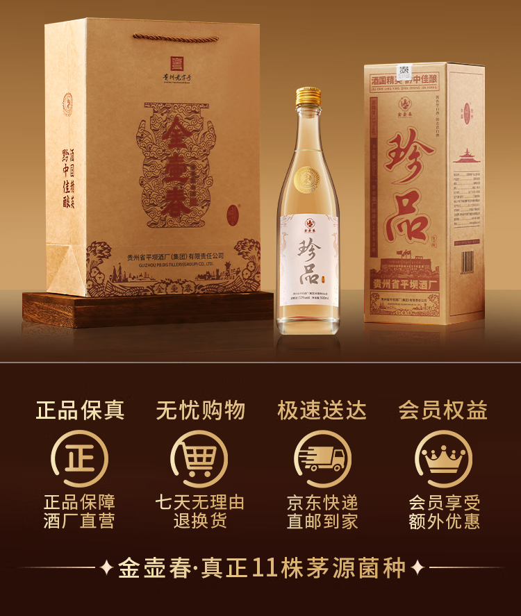 金壶春珍品光瓶纪念酒贵州平坝酱香型白酒53度酱酒宴请送礼 53度 500mL 2瓶 *赠手提礼袋