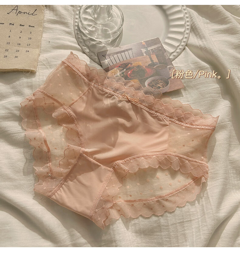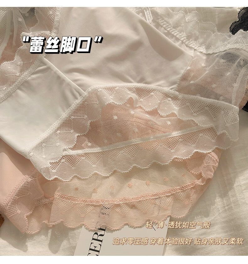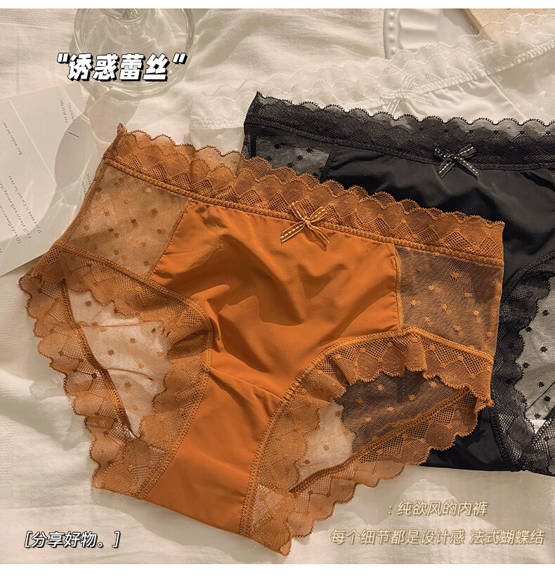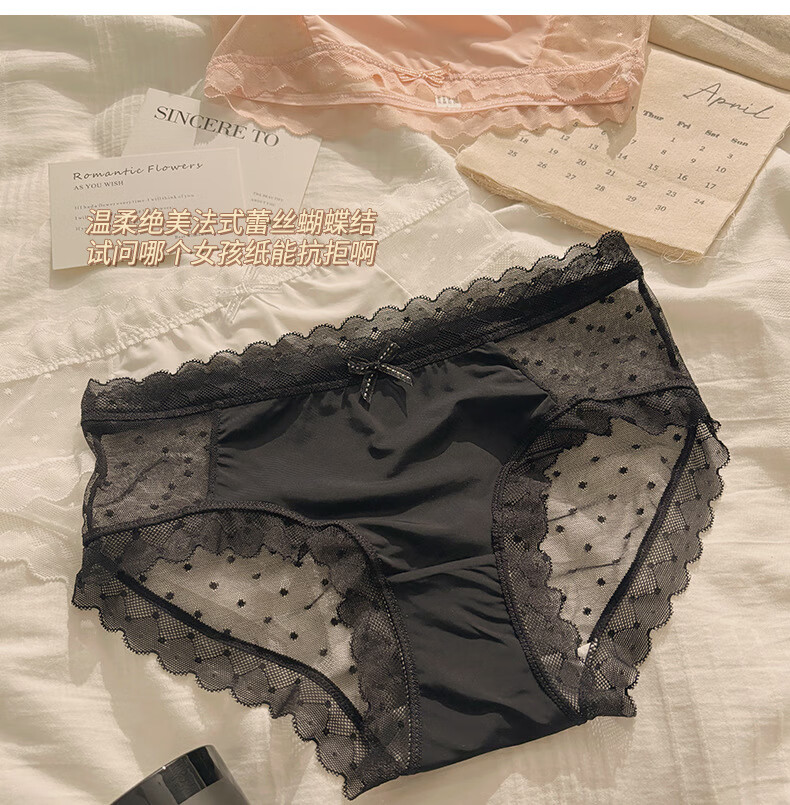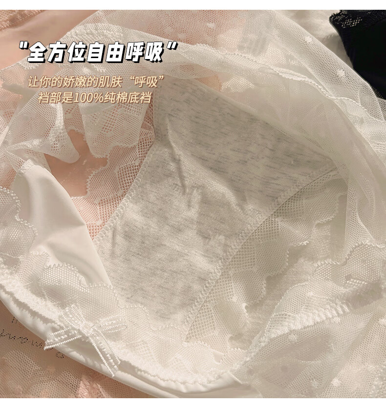 稚蝶蕾丝纯欲风网纱中腰纯棉裆三角内裤法式性感透明超薄女士内裤 混色 随机 3条 L 【95-125斤】