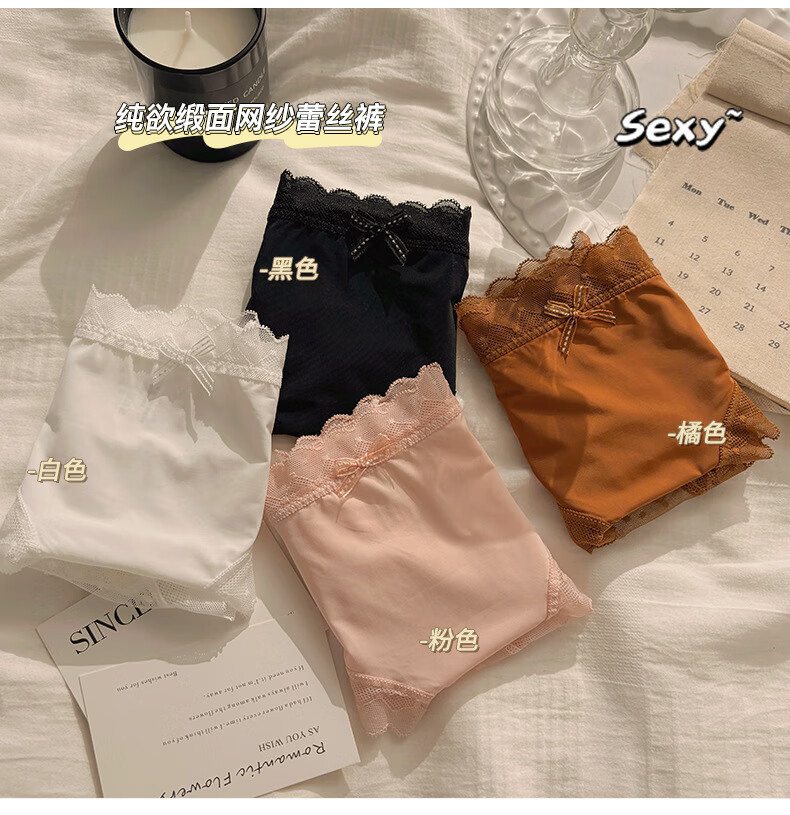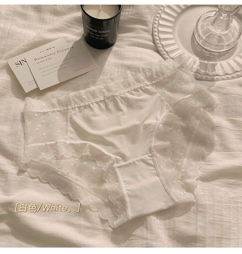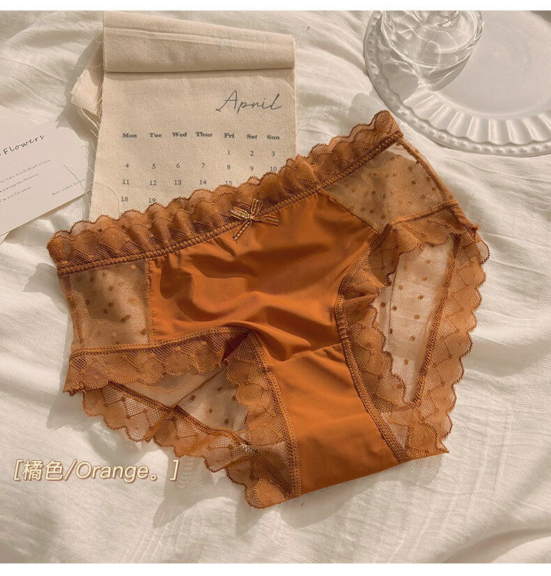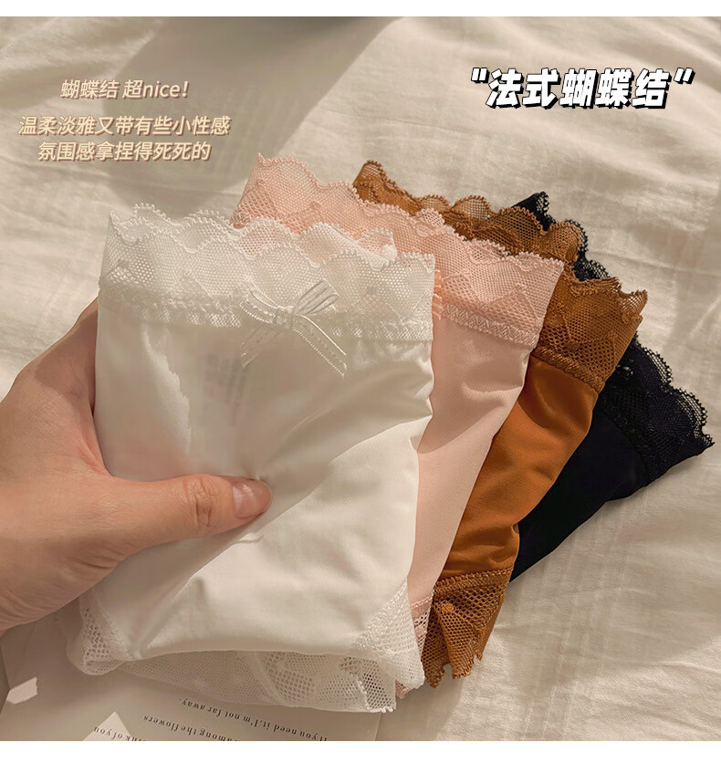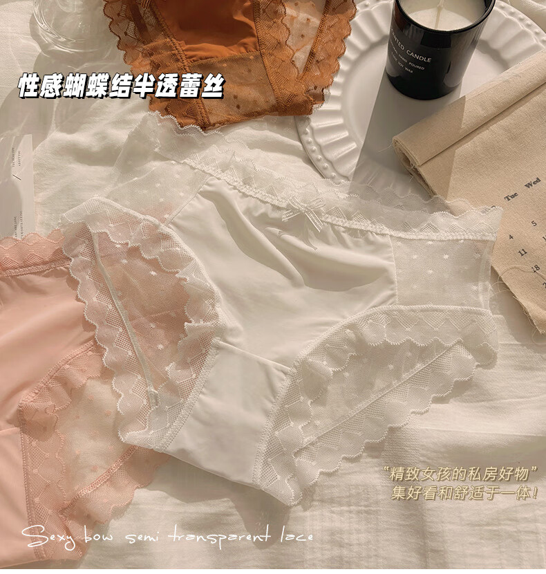 稚蝶蕾丝纯欲风网纱中腰纯棉裆三角内裤法式性感透明超薄女士内裤 混色 随机 3条 L 【95-125斤】