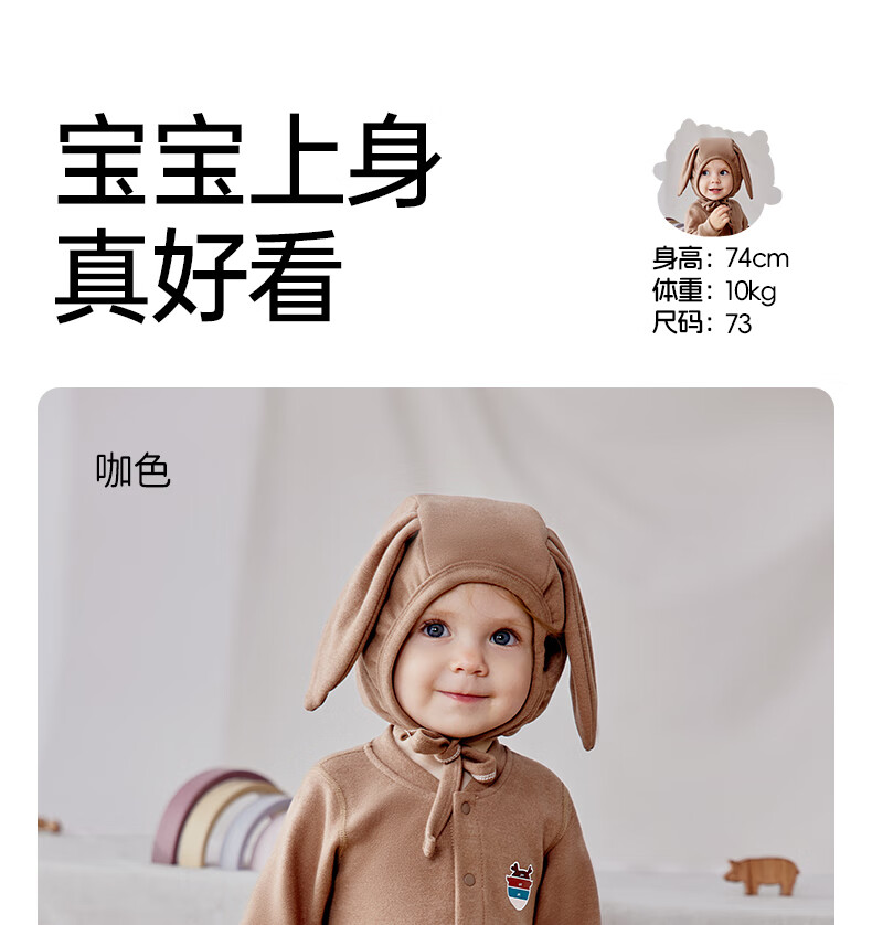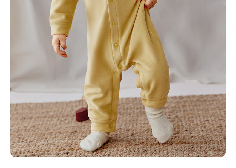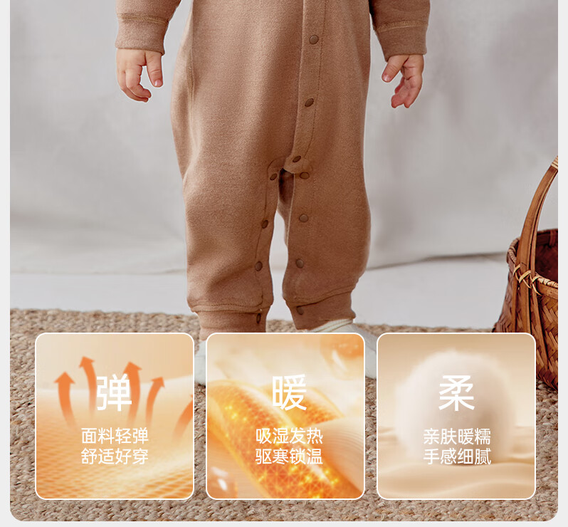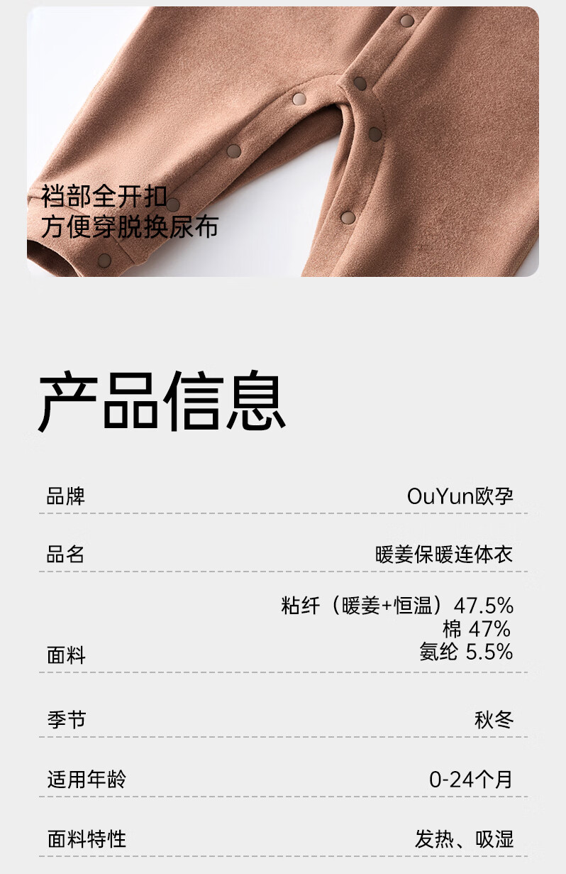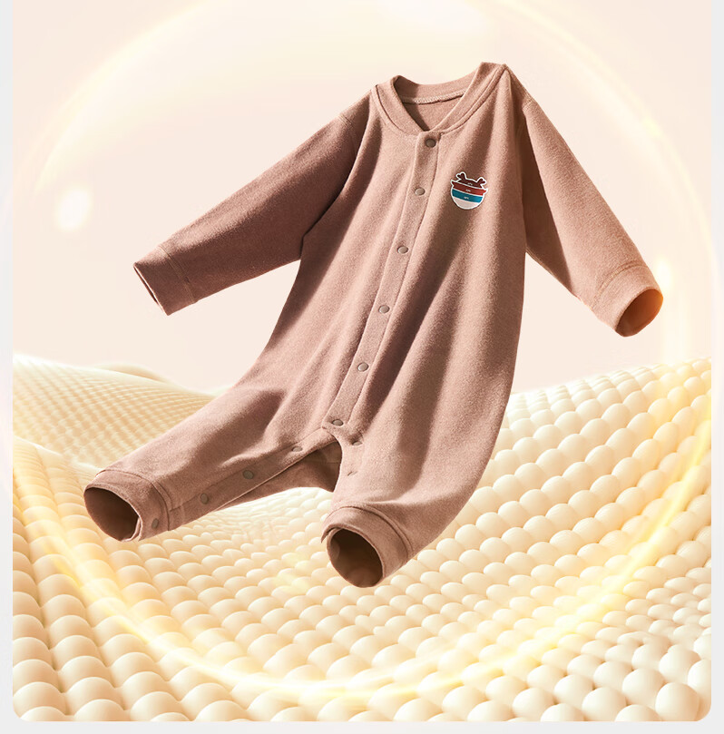 欧孕婴儿衣服秋冬季暖姜保暖宝宝连体衣打底贴身长袖睡衣哈衣爬服 奶杏 73cm 【推荐身高68-74cm】