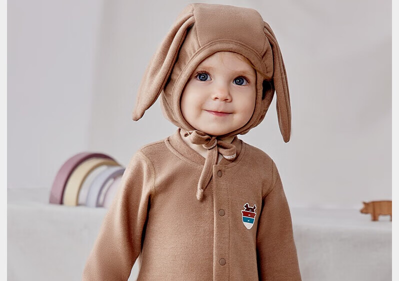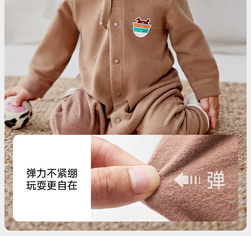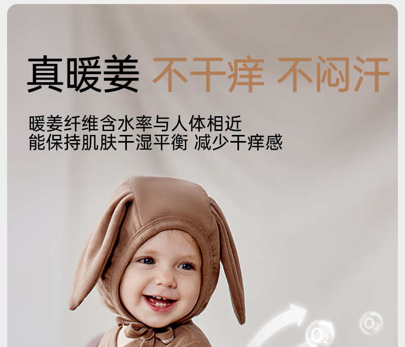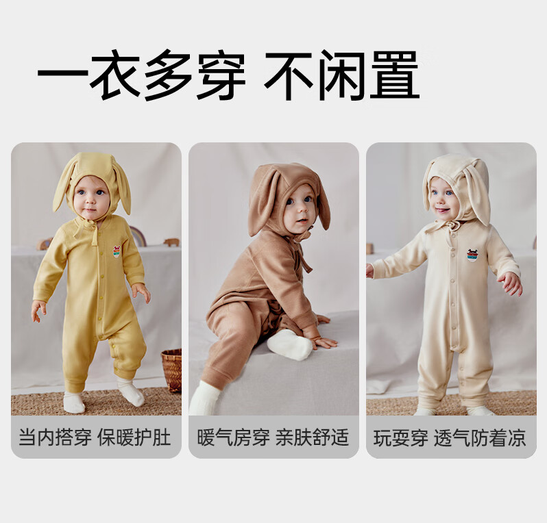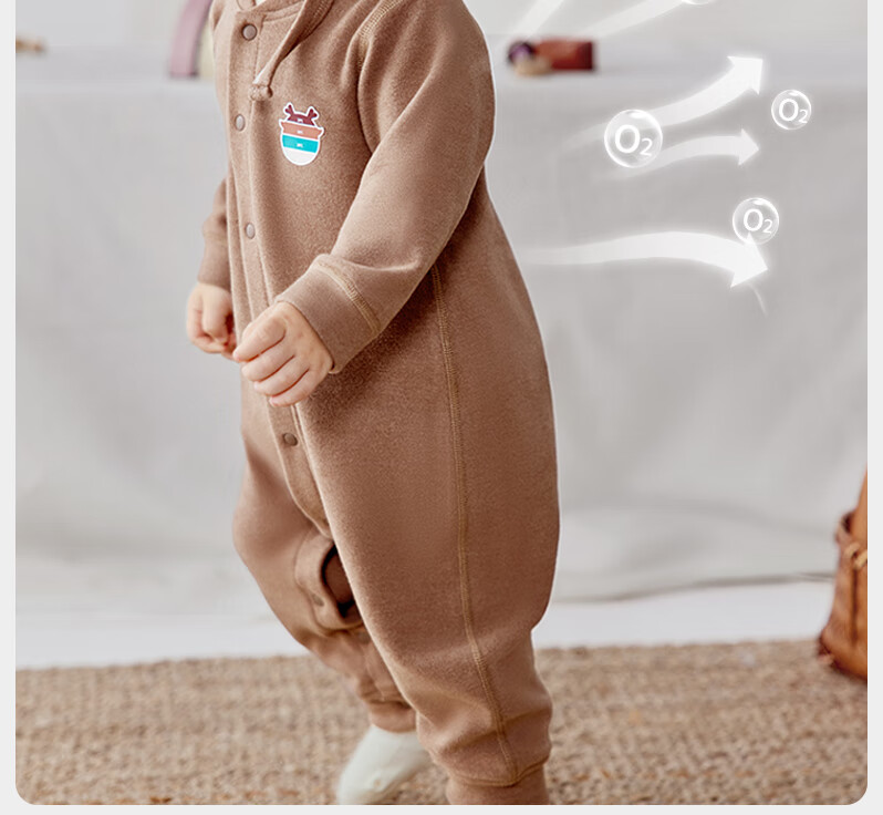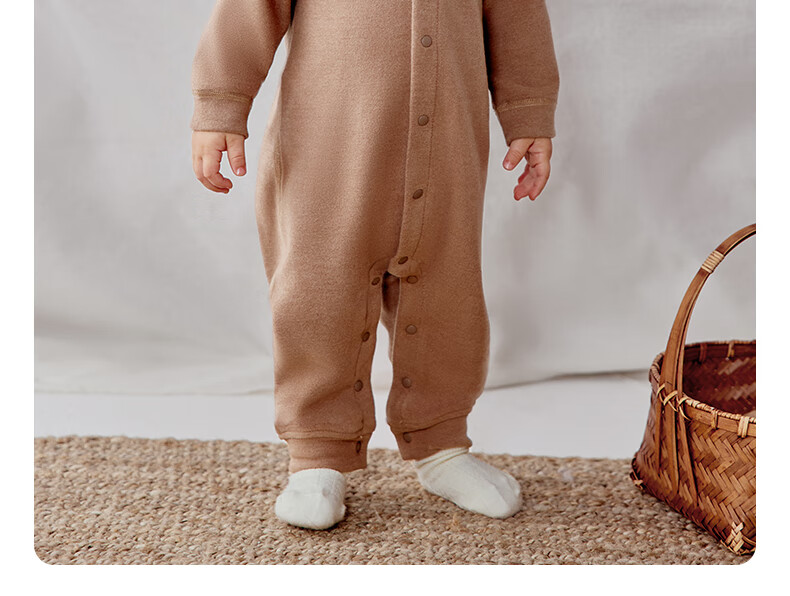 欧孕婴儿衣服秋冬季暖姜保暖宝宝连体衣打底贴身长袖睡衣哈衣爬服 奶杏 73cm 【推荐身高68-74cm】