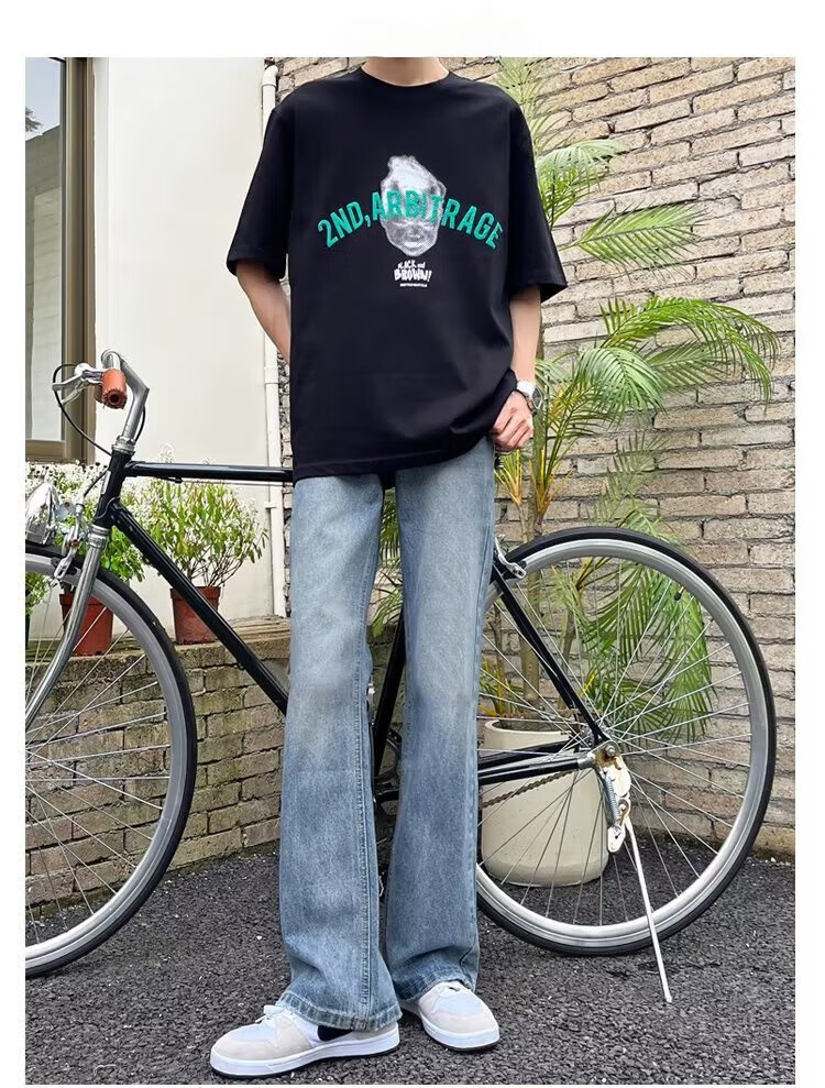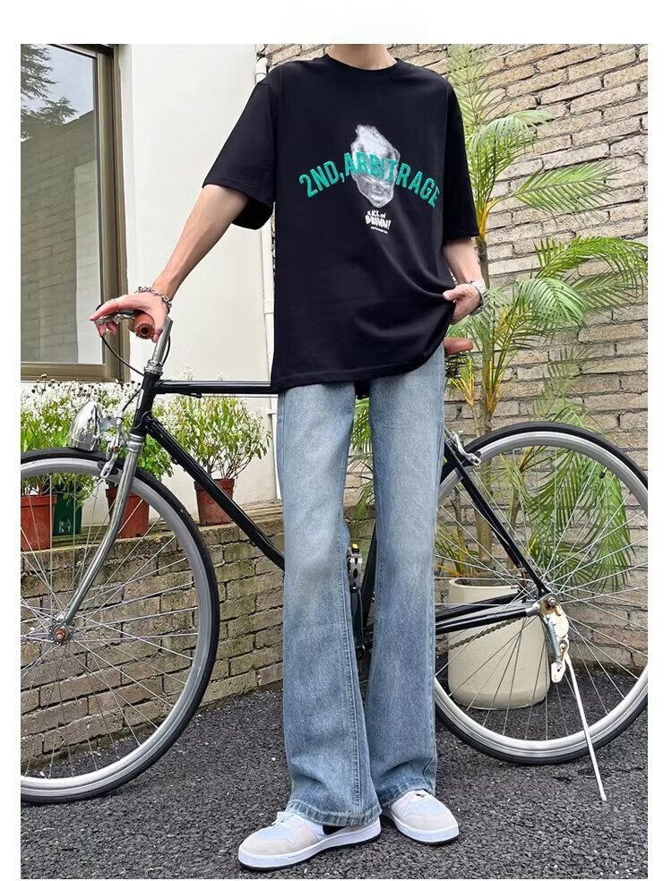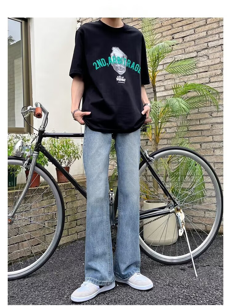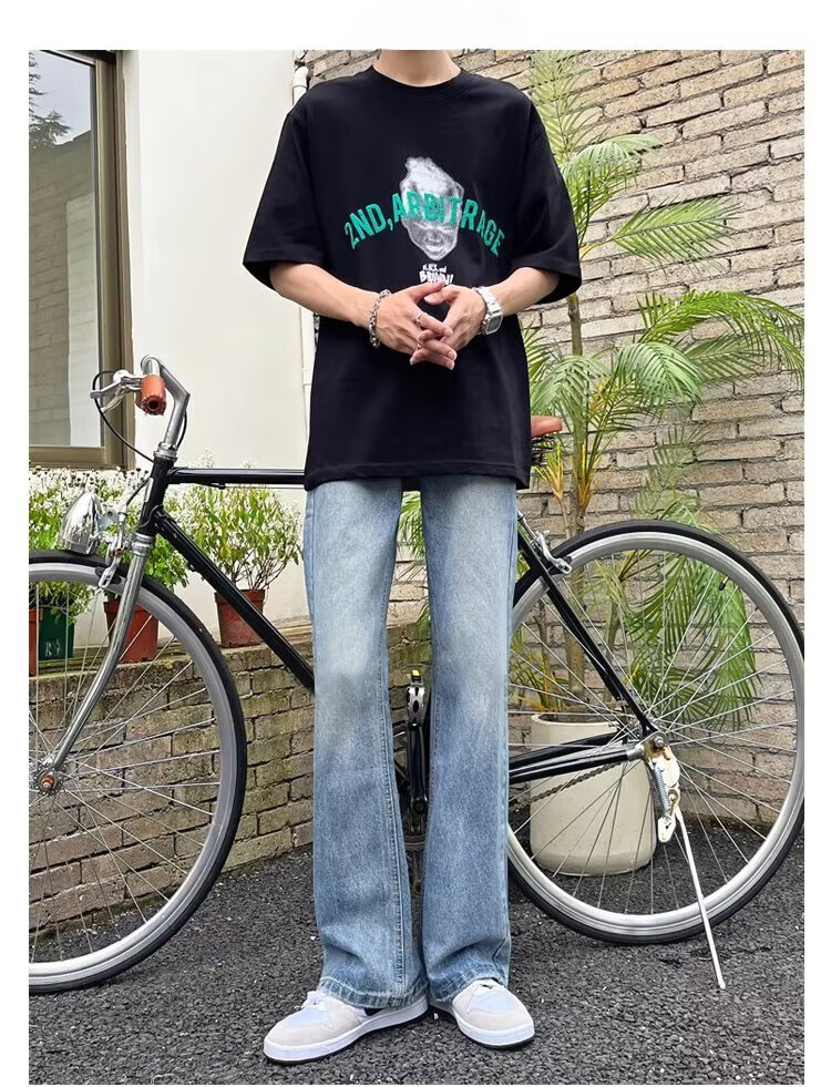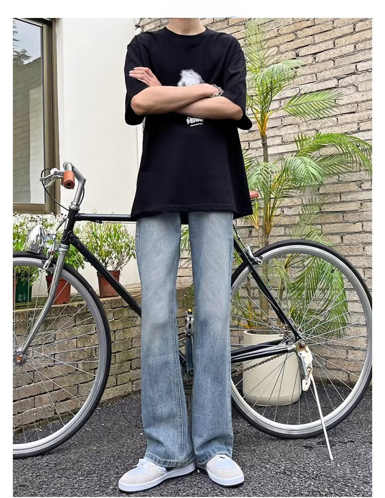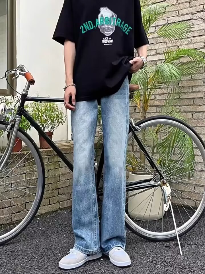 POUM男装联名秋季微喇牛仔裤男宽松直筒垂感裤子男百搭阔腿拖地休闲裤 SXNZ-720浅蓝色 L 【身高165-175体重120-135斤】