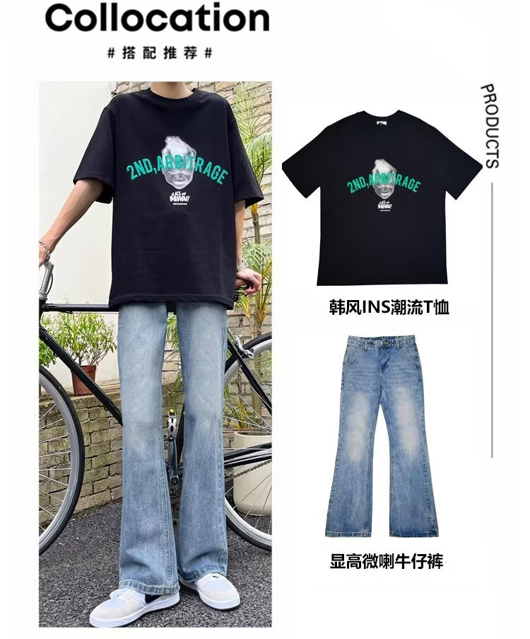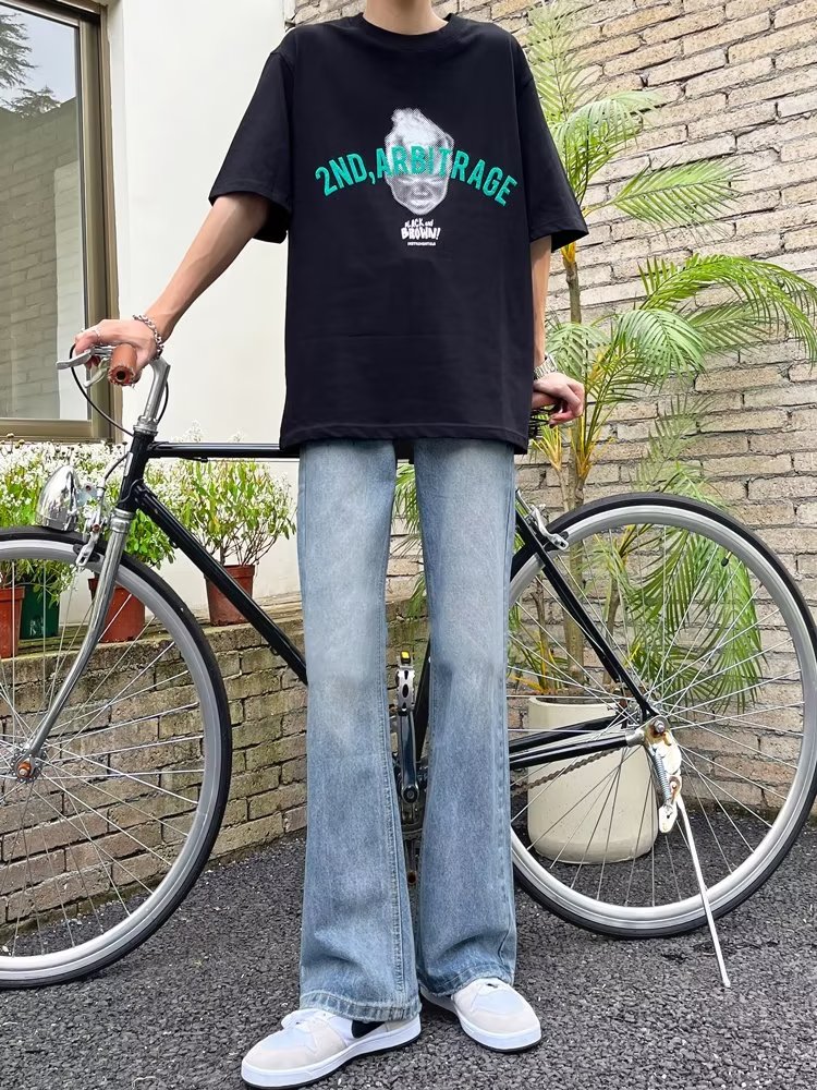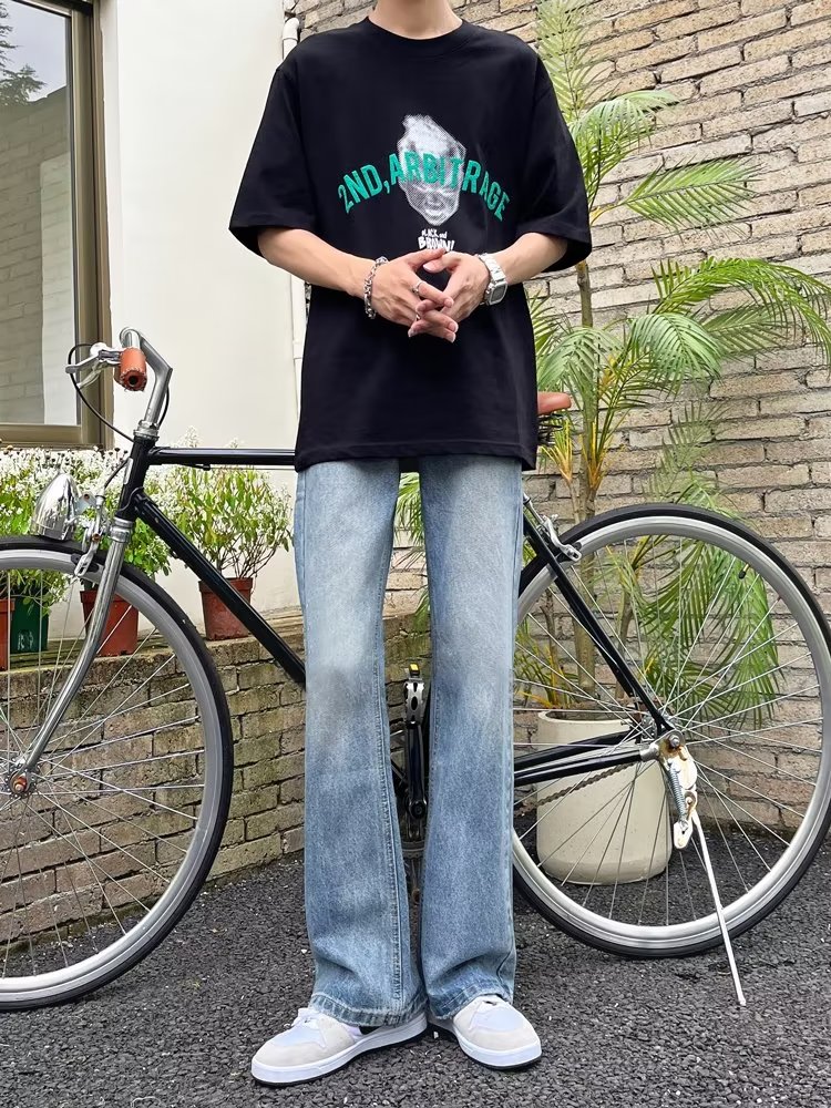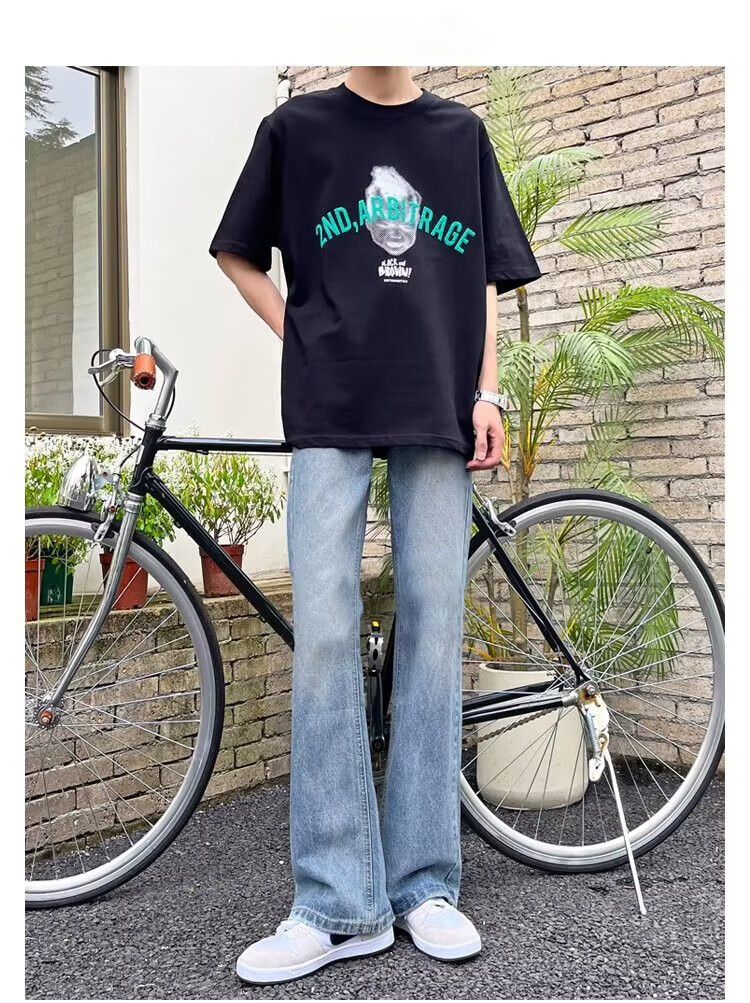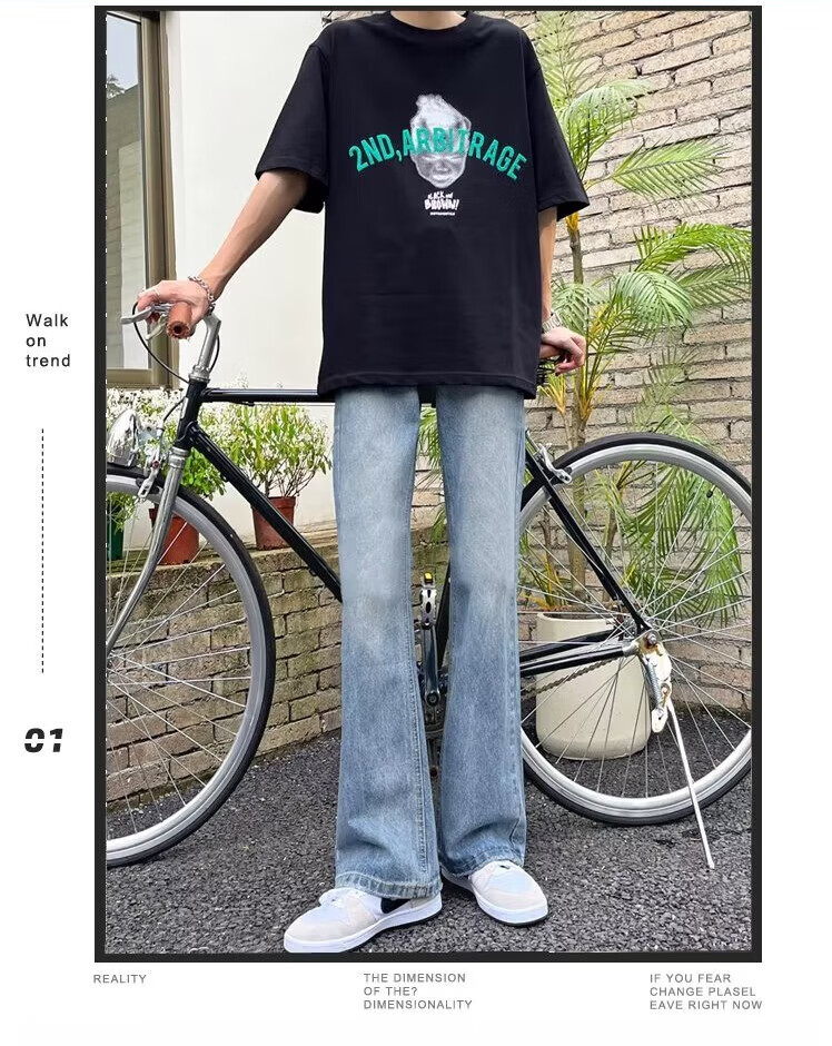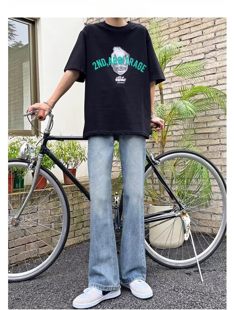 POUM男装联名秋季微喇牛仔裤男宽松直筒垂感裤子男百搭阔腿拖地休闲裤 SXNZ-720浅蓝色 L 【身高165-175体重120-135斤】