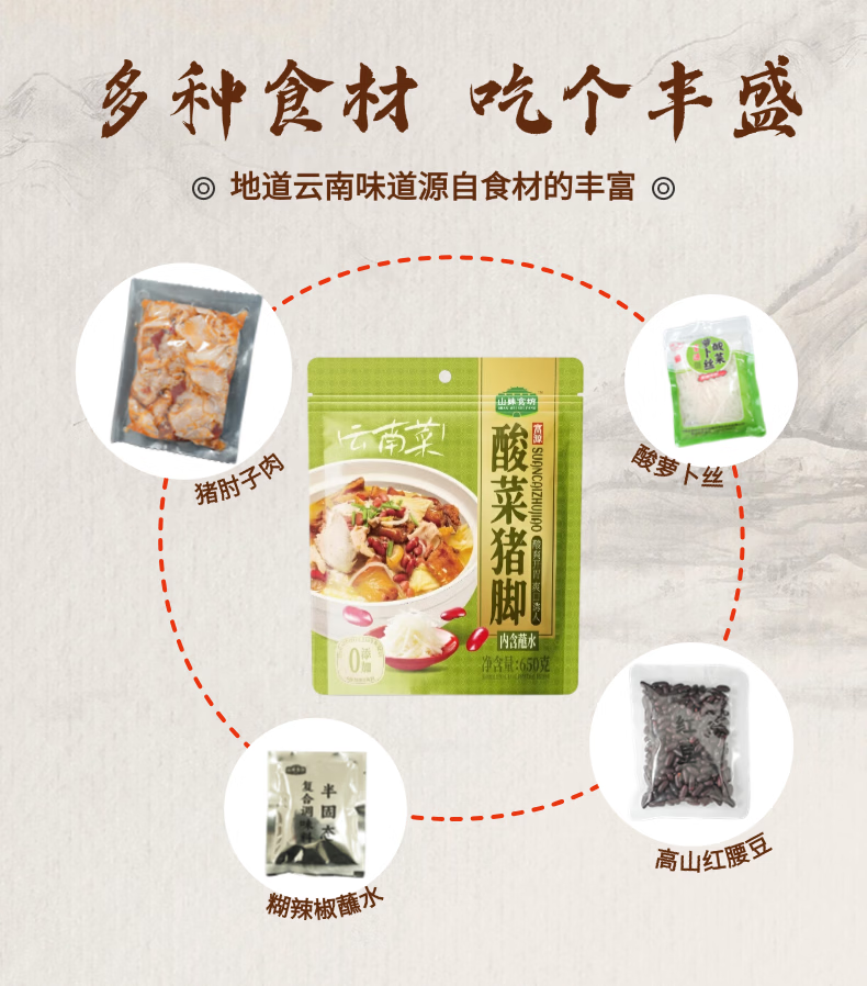 山妹食坊【京东快递】云南特产富源酸汤猪脚火锅食材带蘸水0添加3-4人套餐 酸菜猪脚1180g 300g肘子肉+200g黑皮子+480g酸菜+150g红豆+50g蘸水