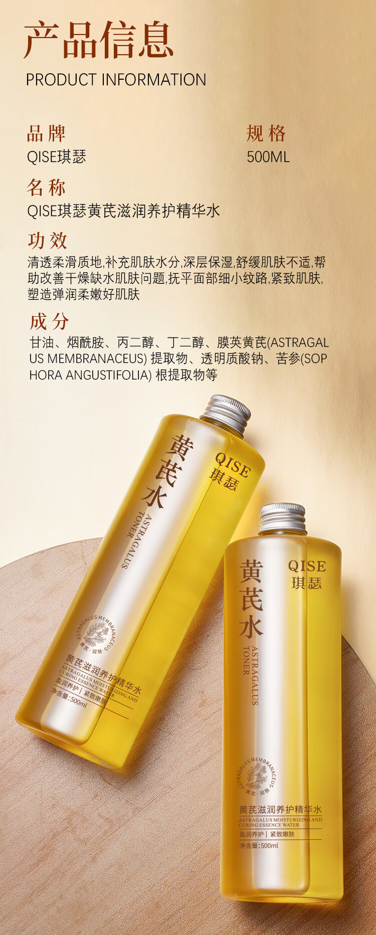 【优选直发】黄芪滋润养护精华水肌肤爽肤水 琪瑟黄芪滋润养护精华水500ml /瓶