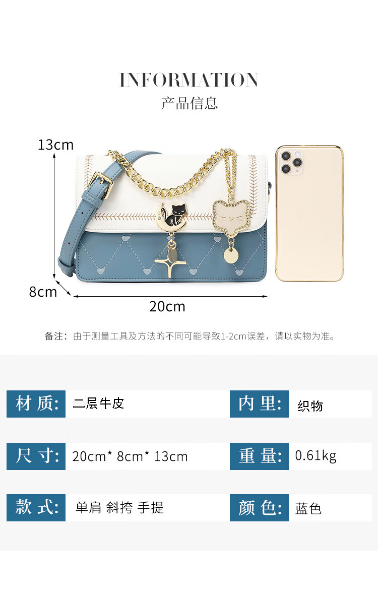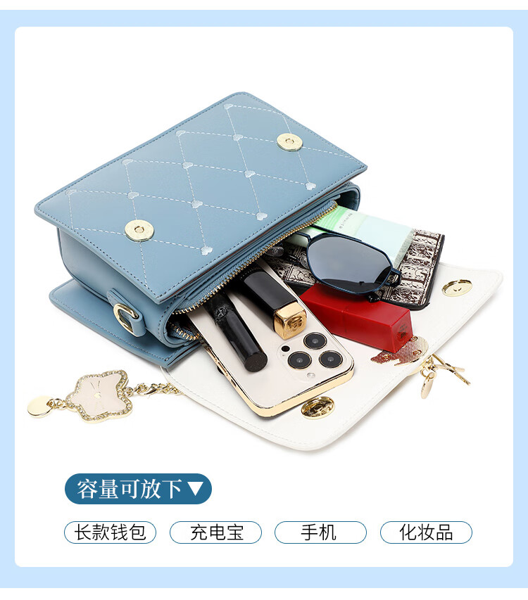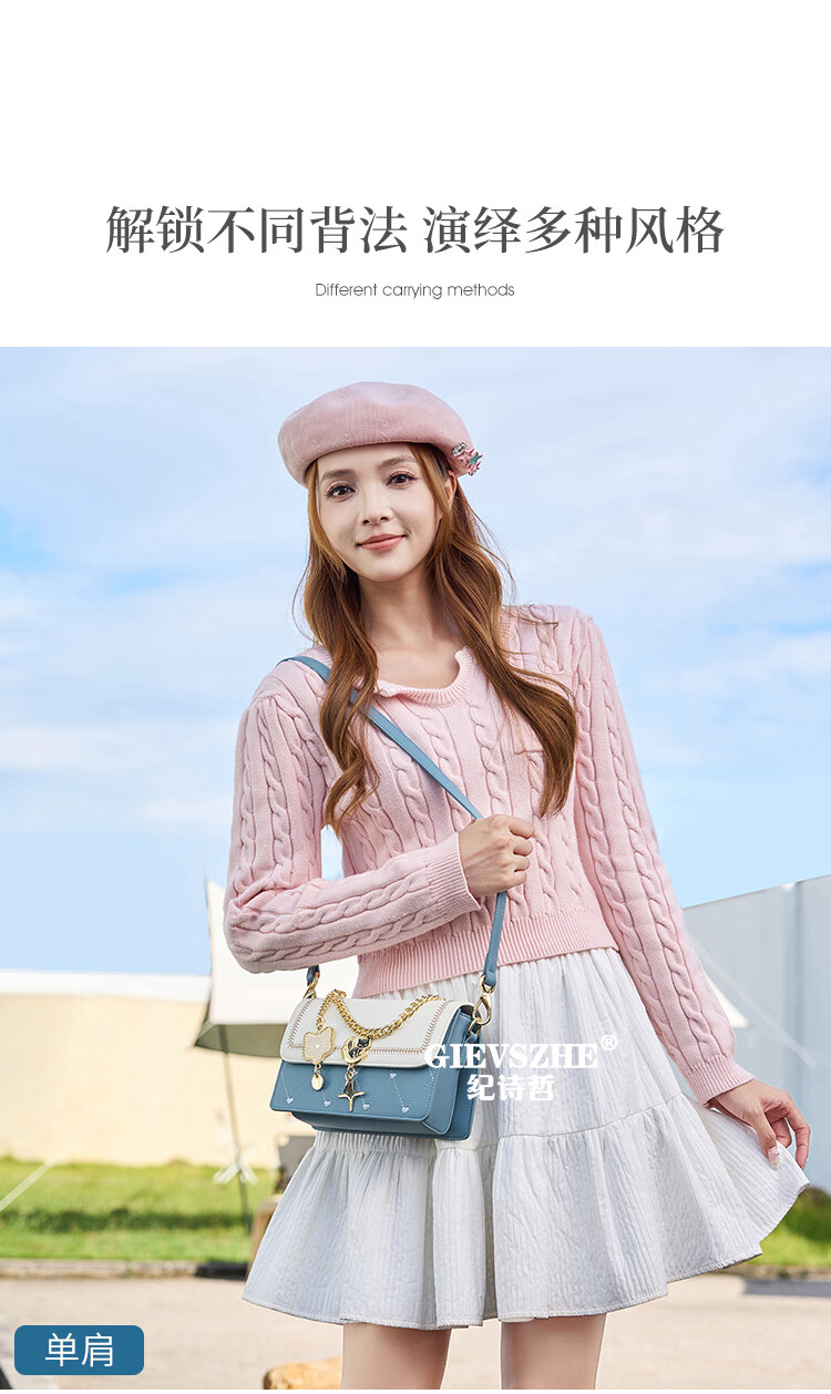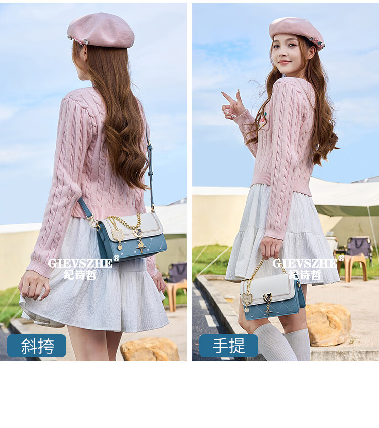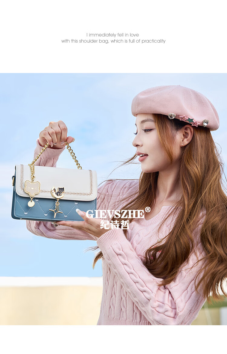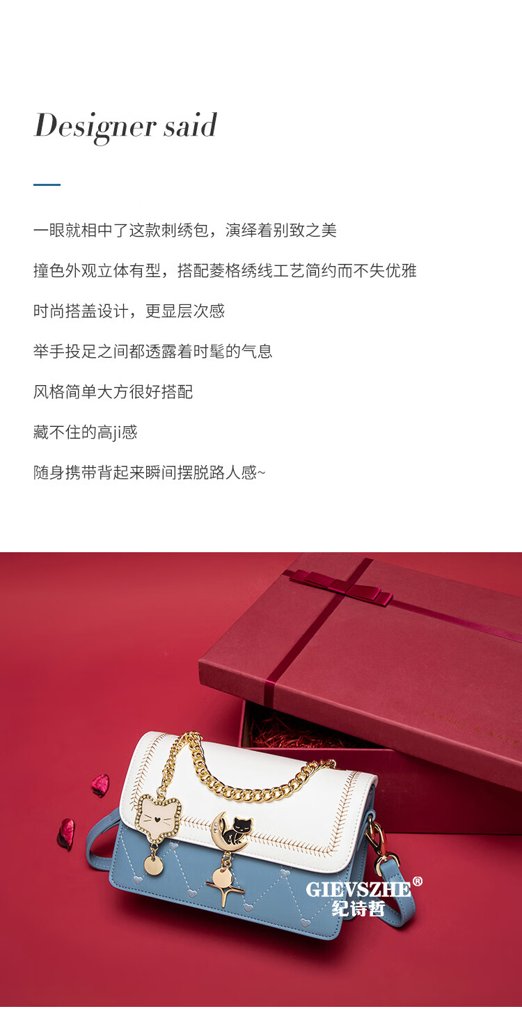 纪诗哲包包女包2026新款轻奢侈女士单肩斜挎包送老婆女友生日情人节礼物 蓝色 品牌礼盒装