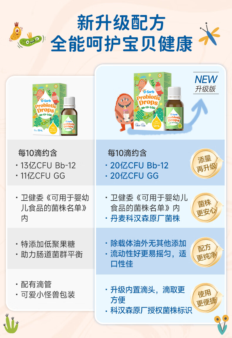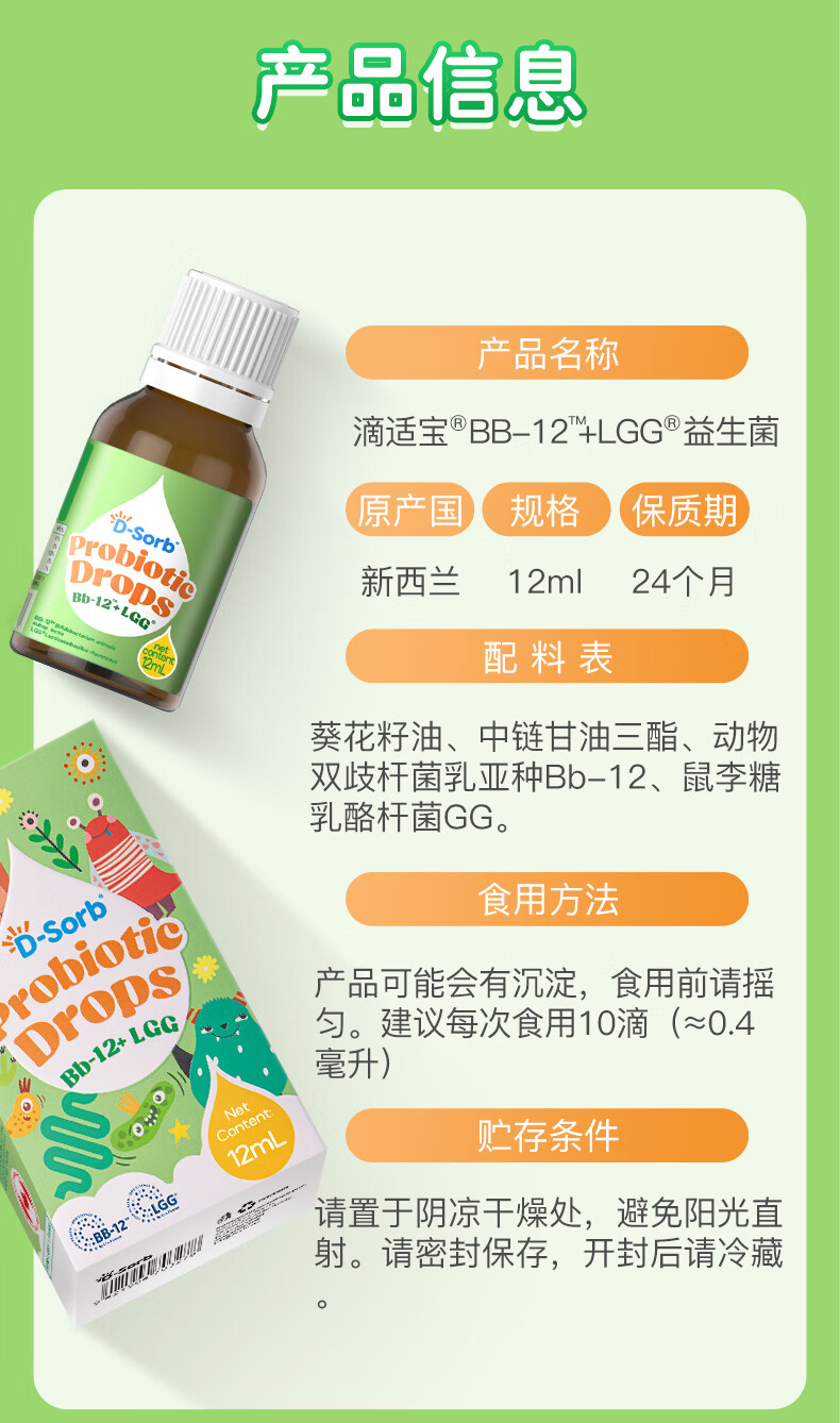 D-SorbBb12+gg益生菌滴剂科汉森菌株活性乳杆菌鼠李糖益生菌儿童益生菌 【升级版】BBGG益生菌 12ml*1瓶
