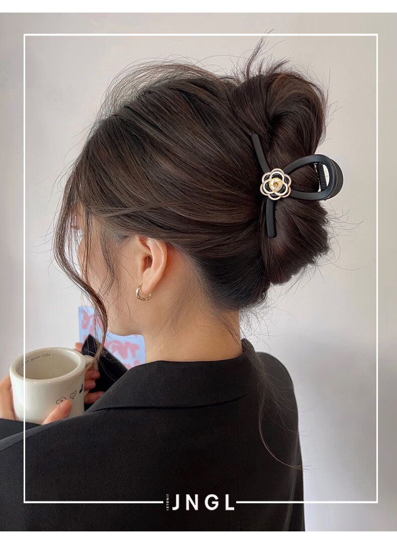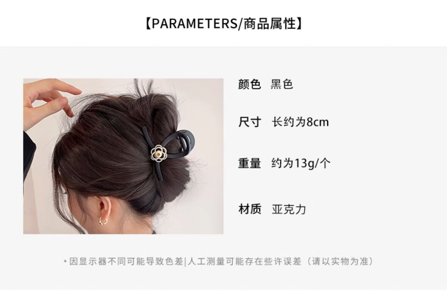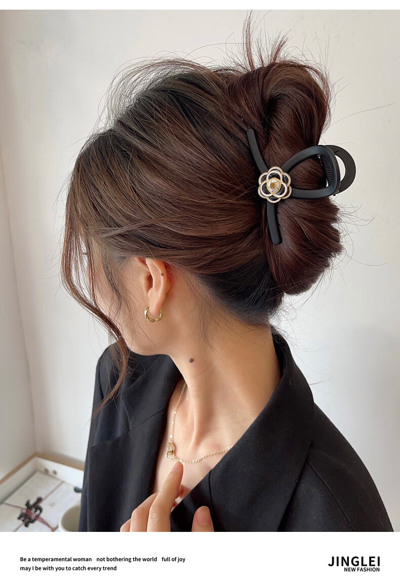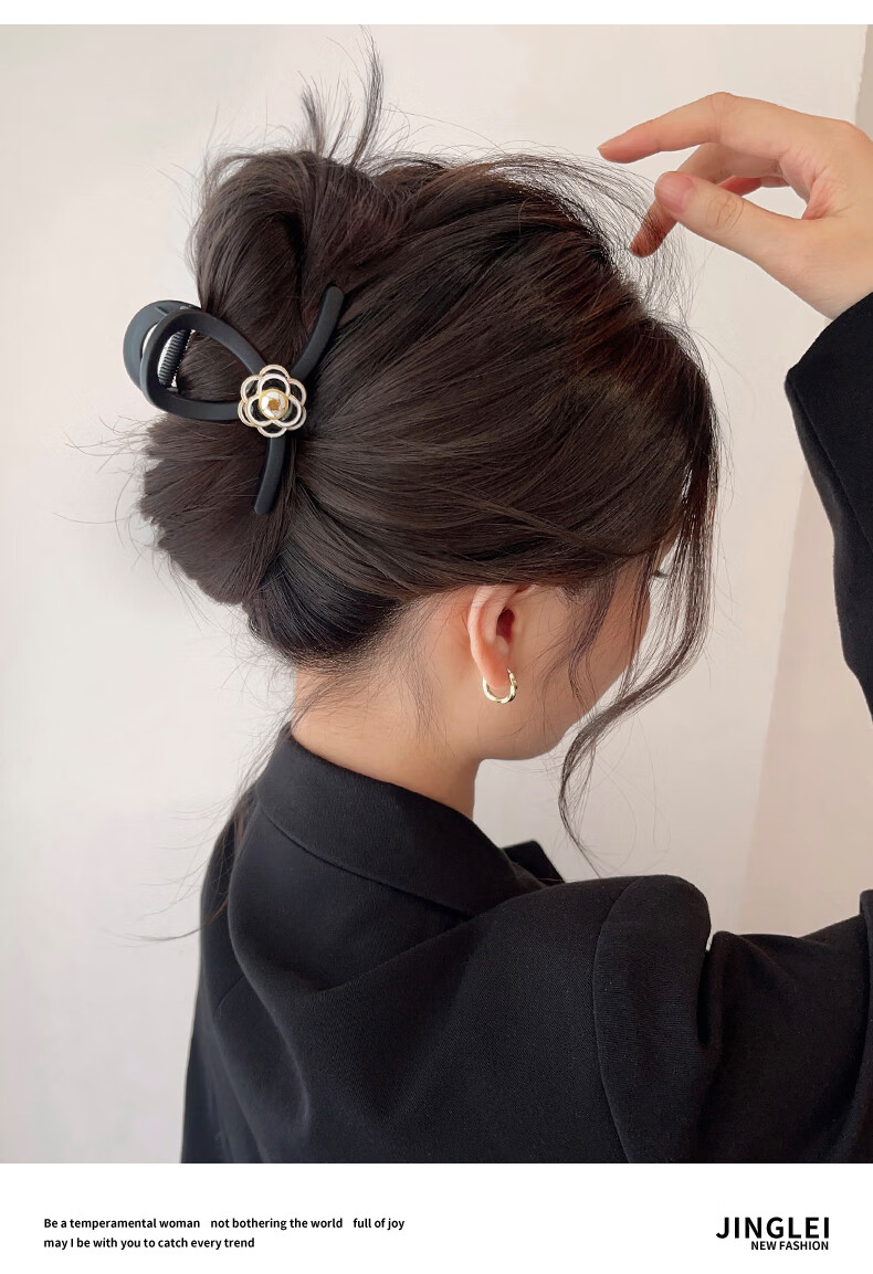 山茶花抓夹女2026新款后脑勺中号发量少鲨鱼夹高级感气质黑色头饰 粉色山茶花抓夹长约8CM