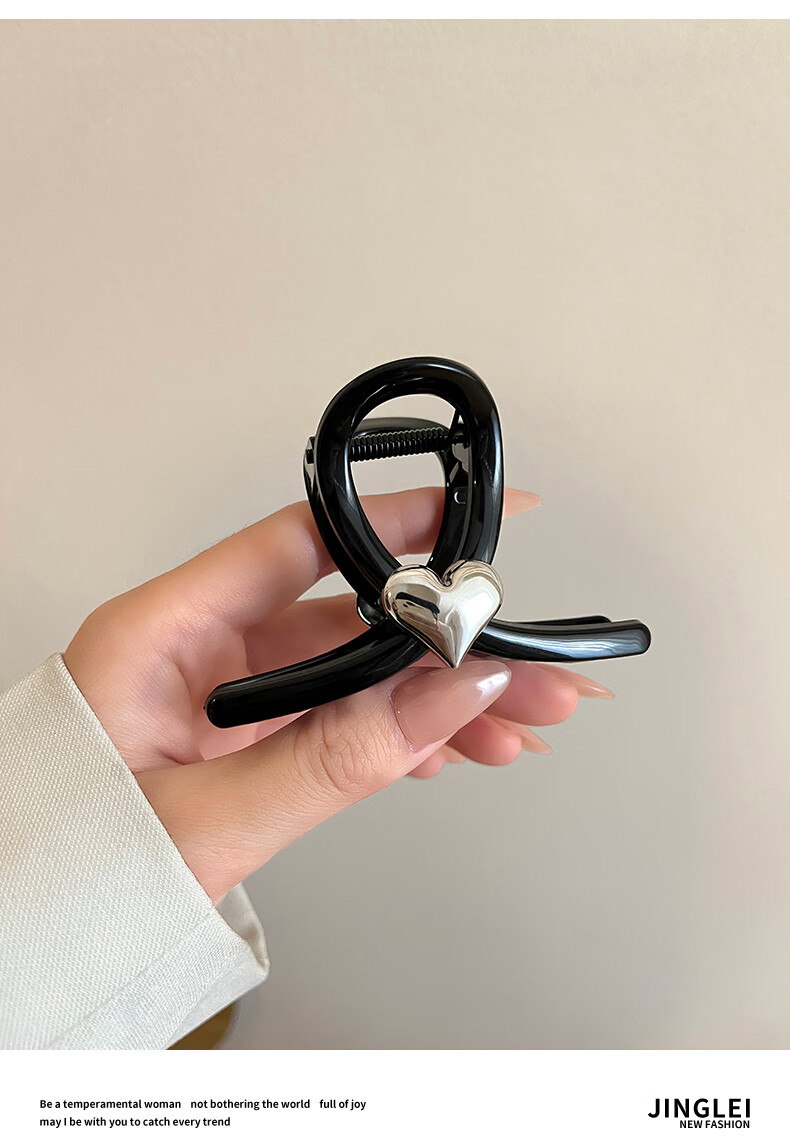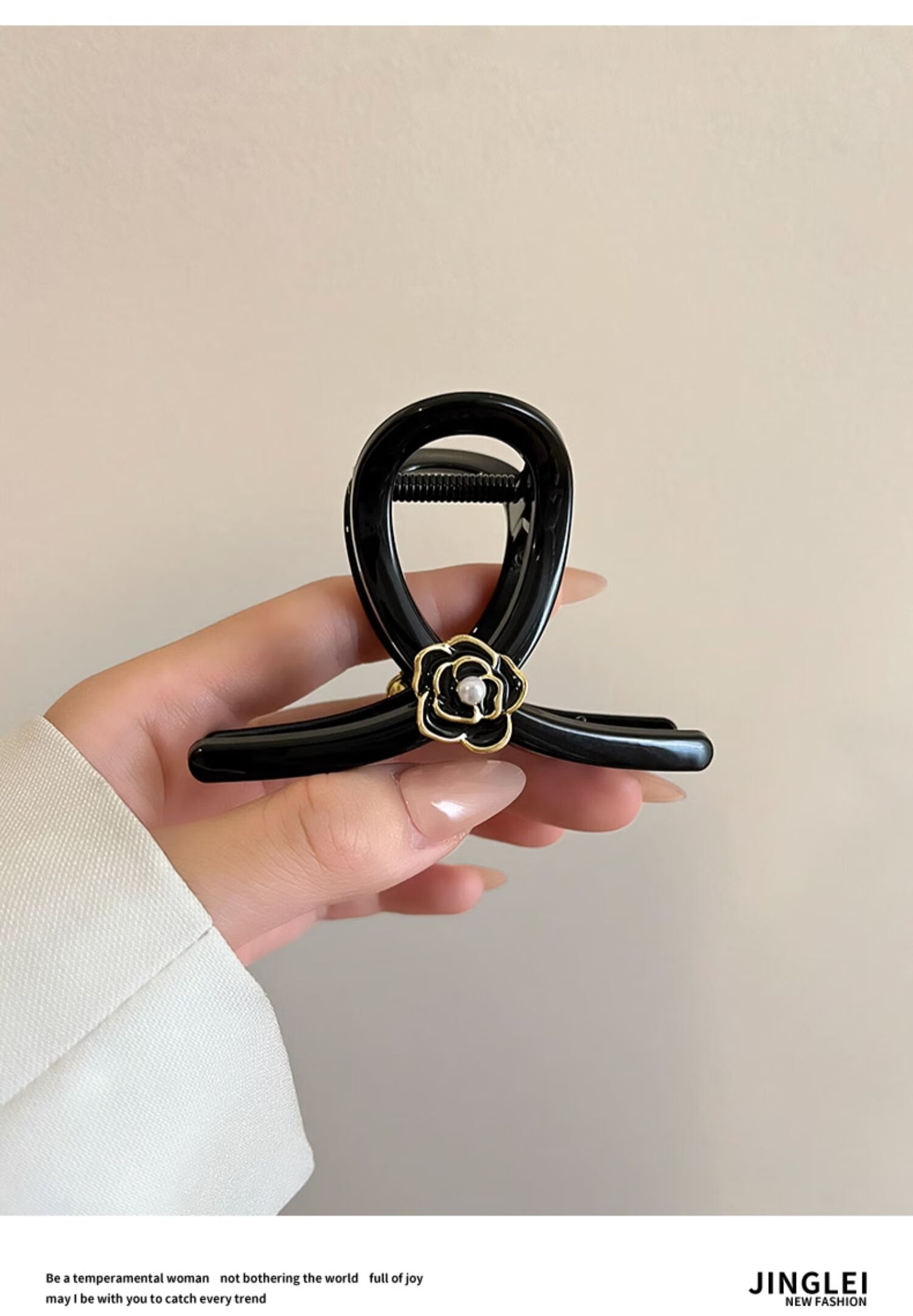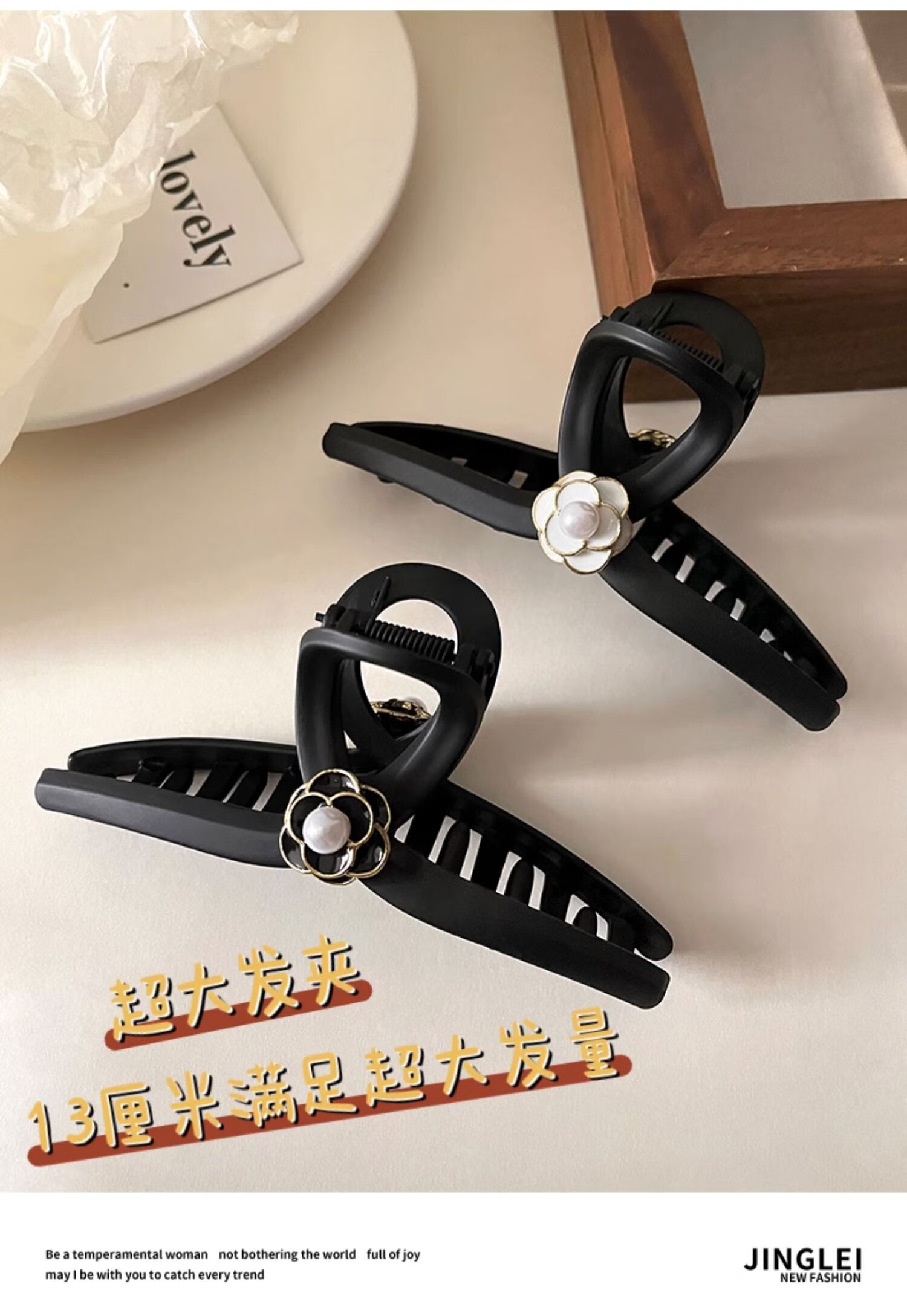 山茶花抓夹女2026新款后脑勺中号发量少鲨鱼夹高级感气质黑色头饰 粉色山茶花抓夹长约8CM