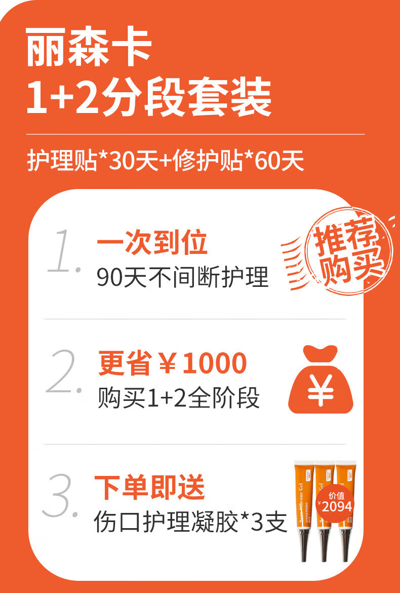 丽森卡疤痕贴剖腹产 买3贈2到手五盒巩固装