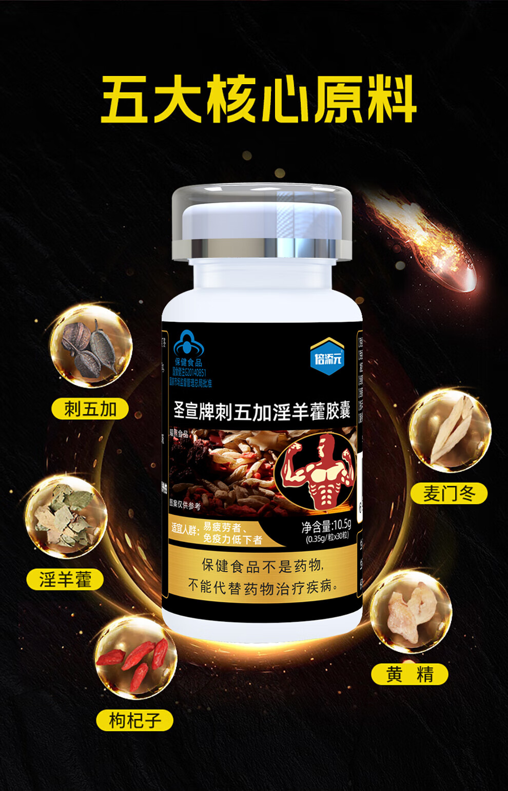 倍添元男性成人易疲劳者刺五加淫羊藿胶囊保健品增强免疫力缓解体力疲劳 【1瓶装】刺五加淫羊藿胶囊