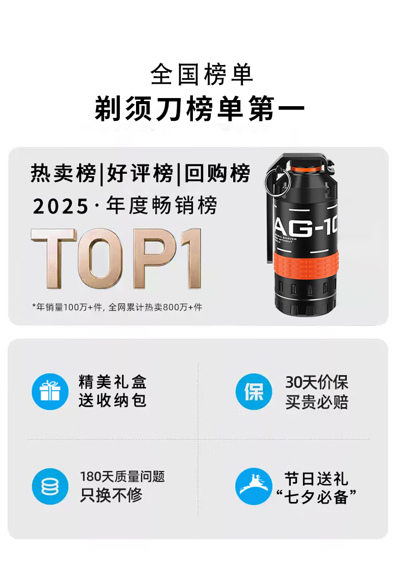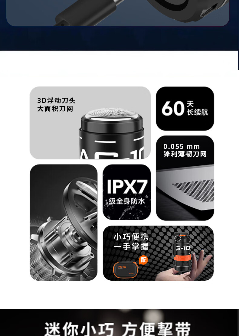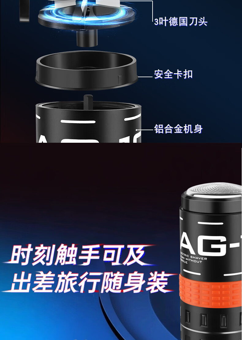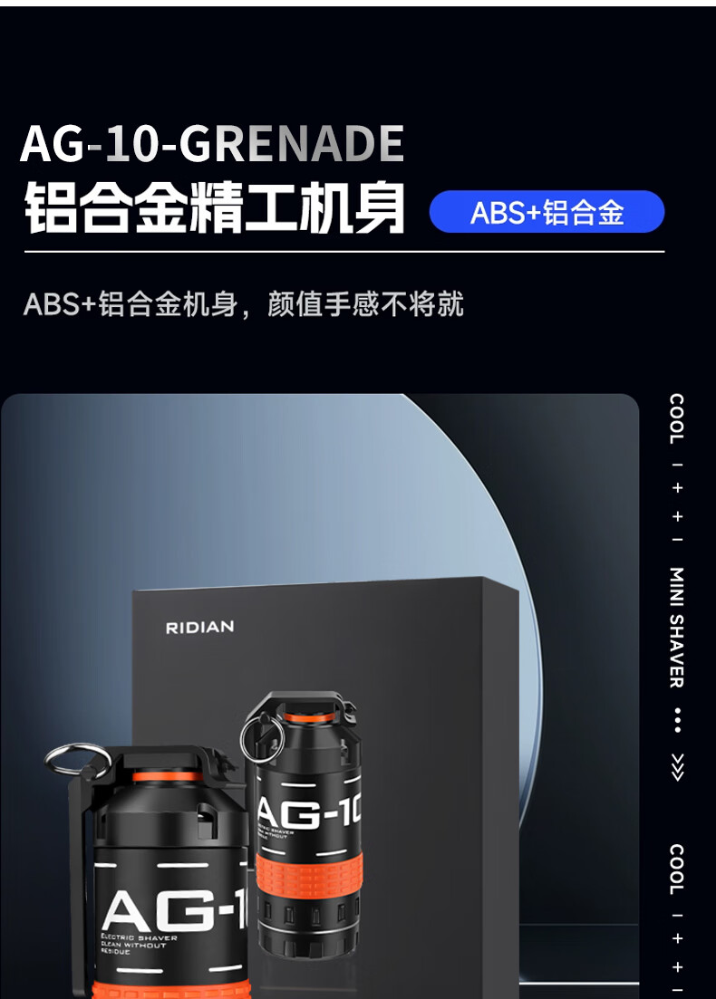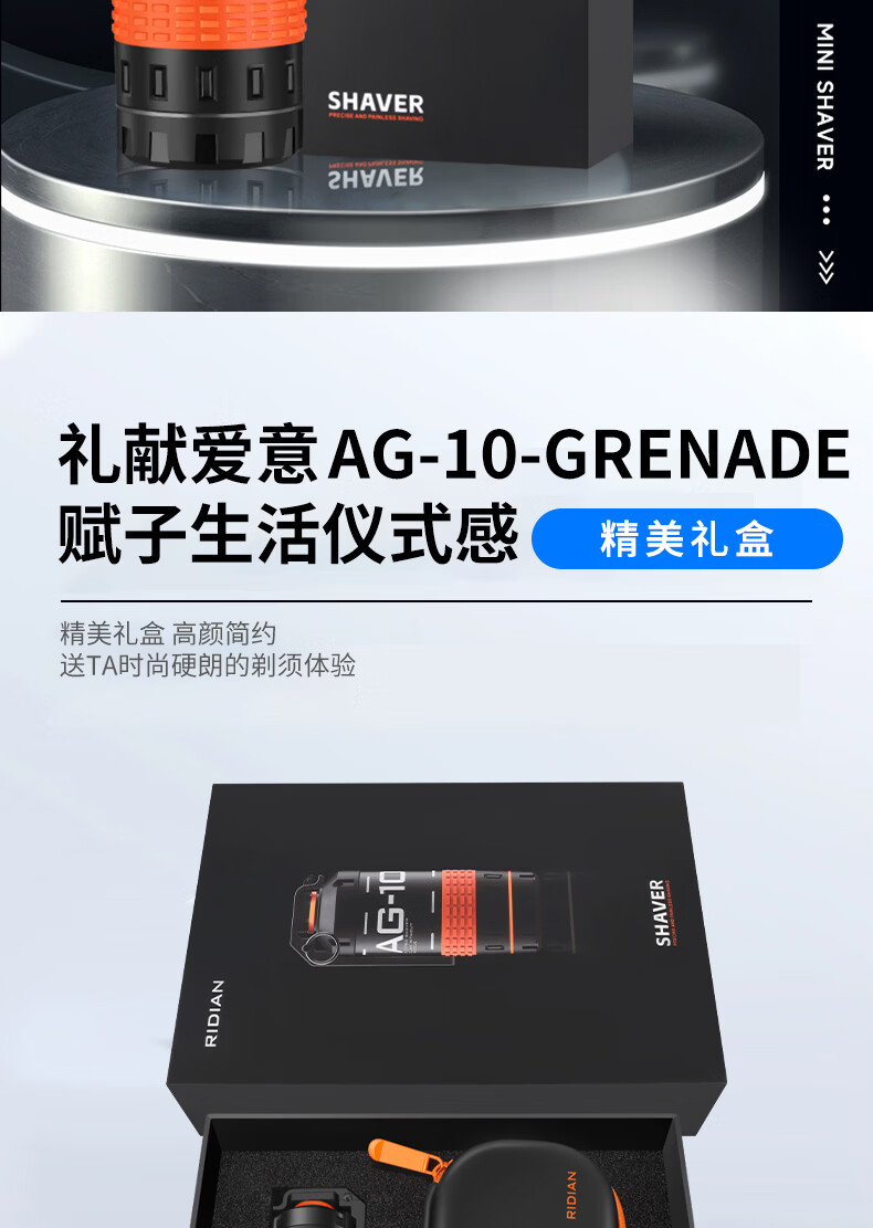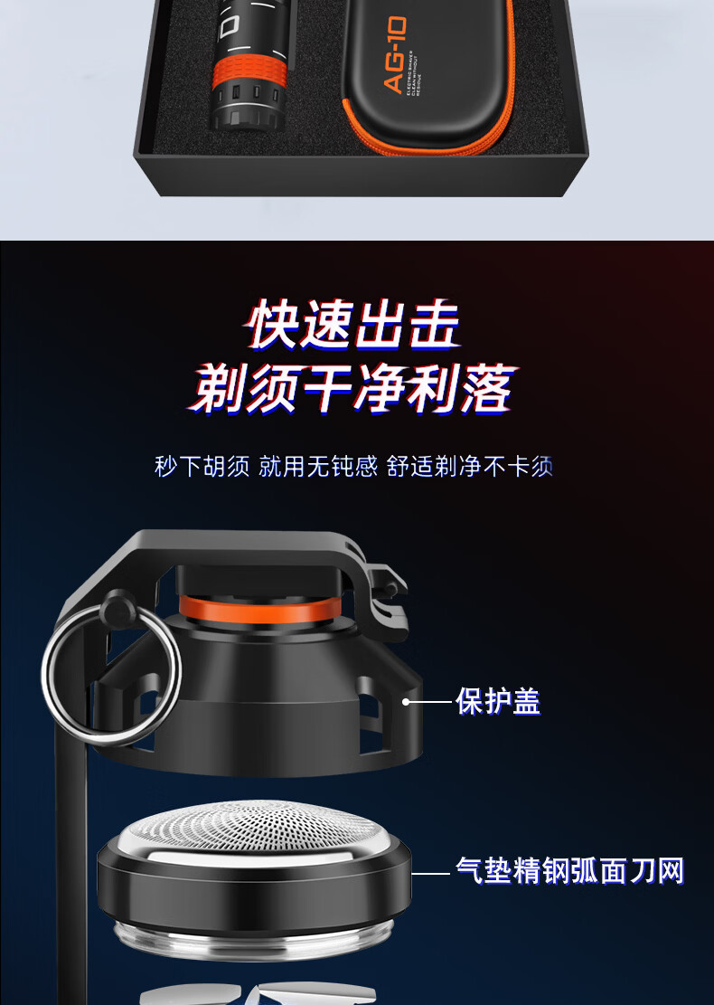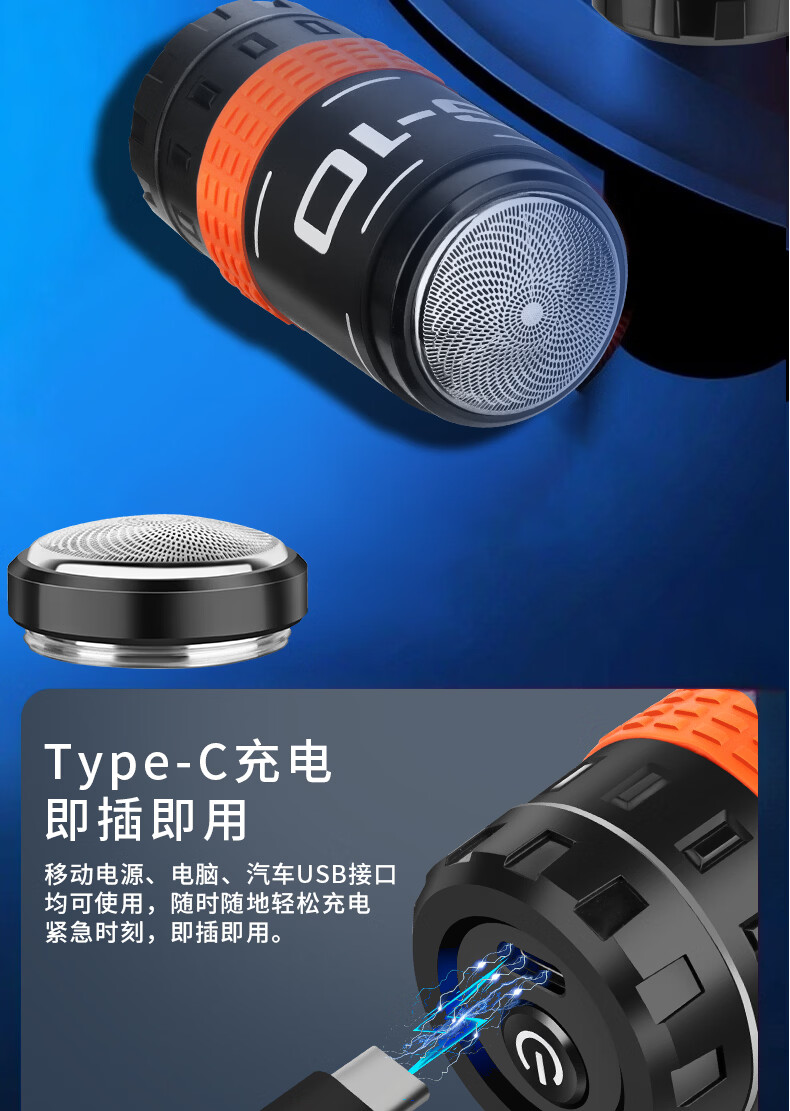 HIENA日电手雷家用电动剃须刀便携迷你胡须刀户外橙色军迷吃鸡和平精英同款干湿两用礼盒礼物 户外橙色 1套