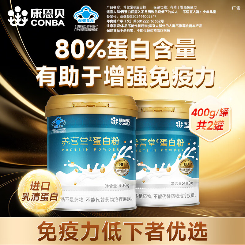康恩贝 蛋白粉 有助于增强免疫力 中老年女性营养品 【80%高含量礼袋装】蛋白粉 400g*2罐