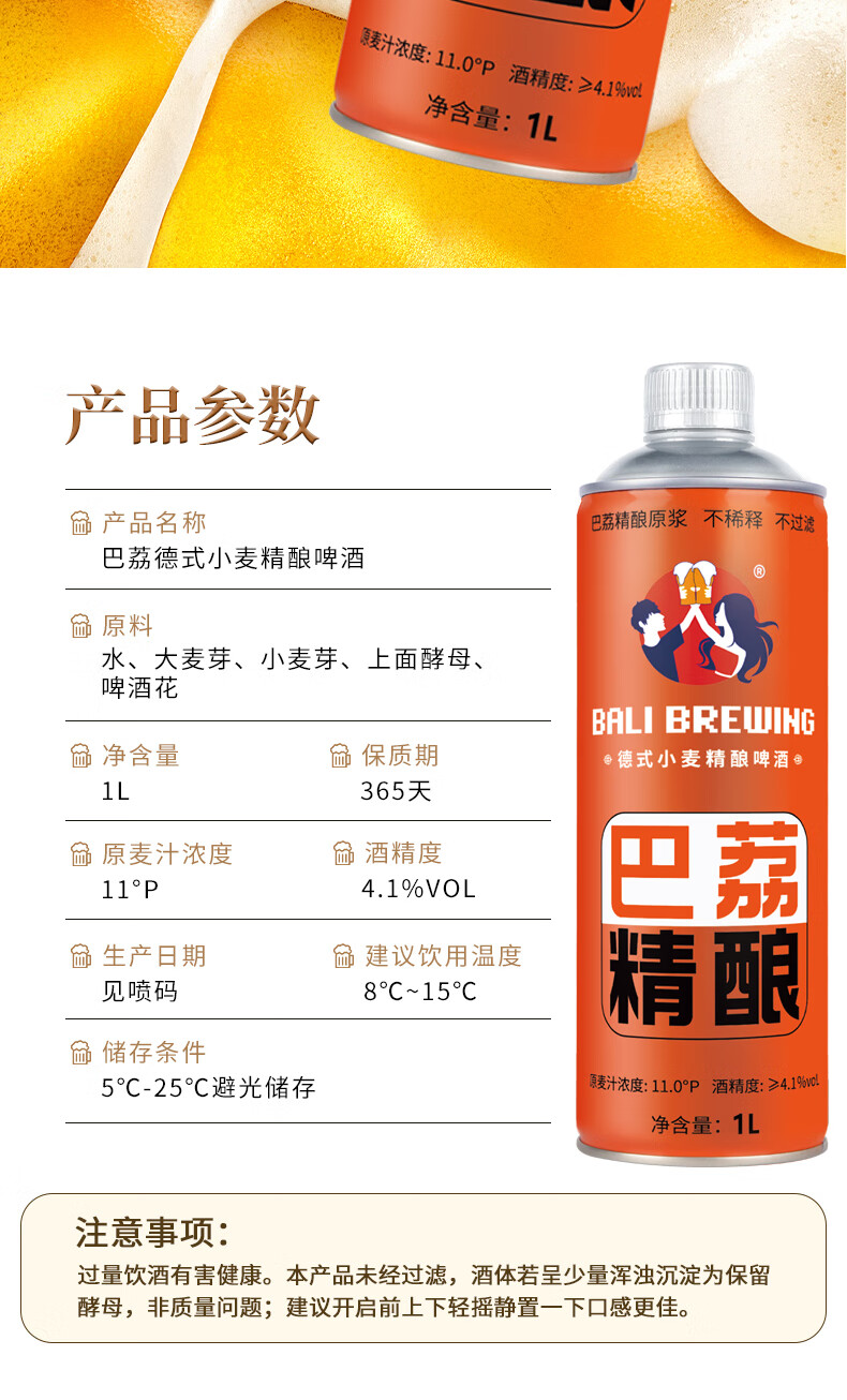 巴荔 啤酒精酿啤酒白啤德式小麦精酿啤酒 精酿 330ml*8罐