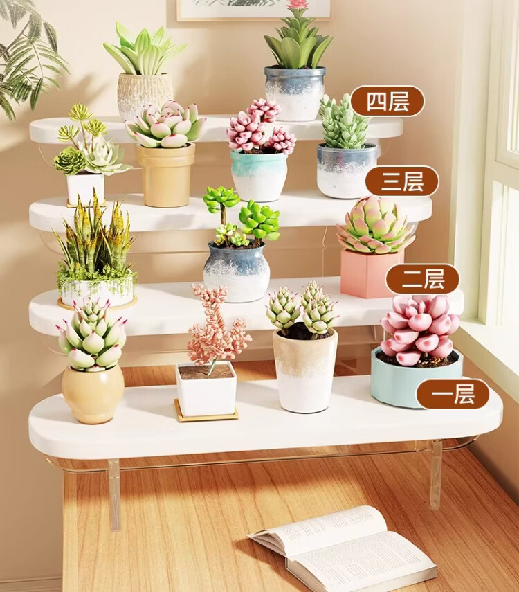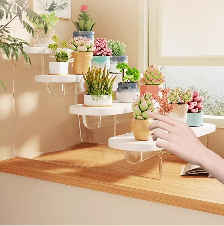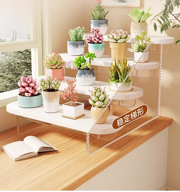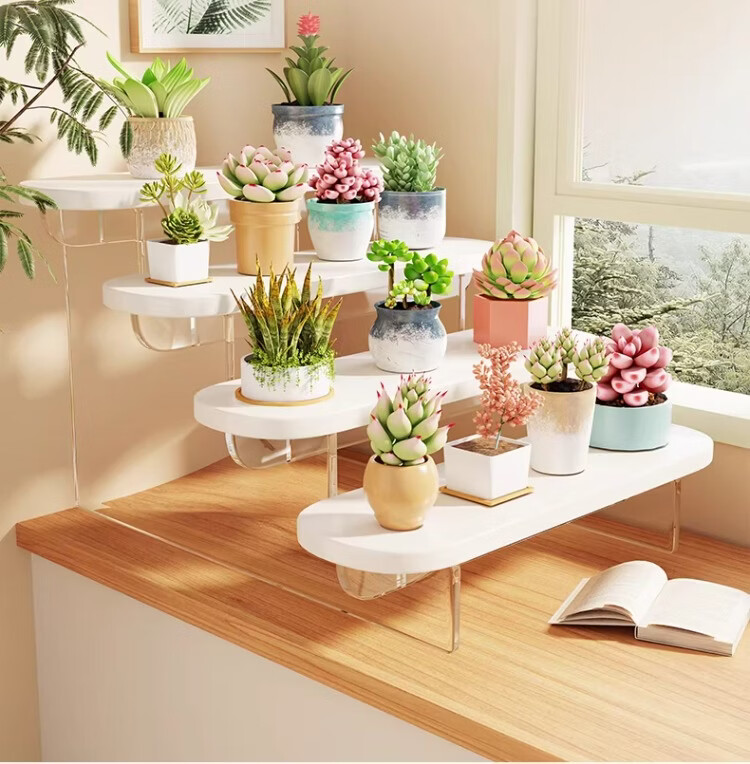 尔思家亚克力展示架桌面花架置物架阳台多肉种植现代简约客厅高颜值托架 【白色-透明】-四层