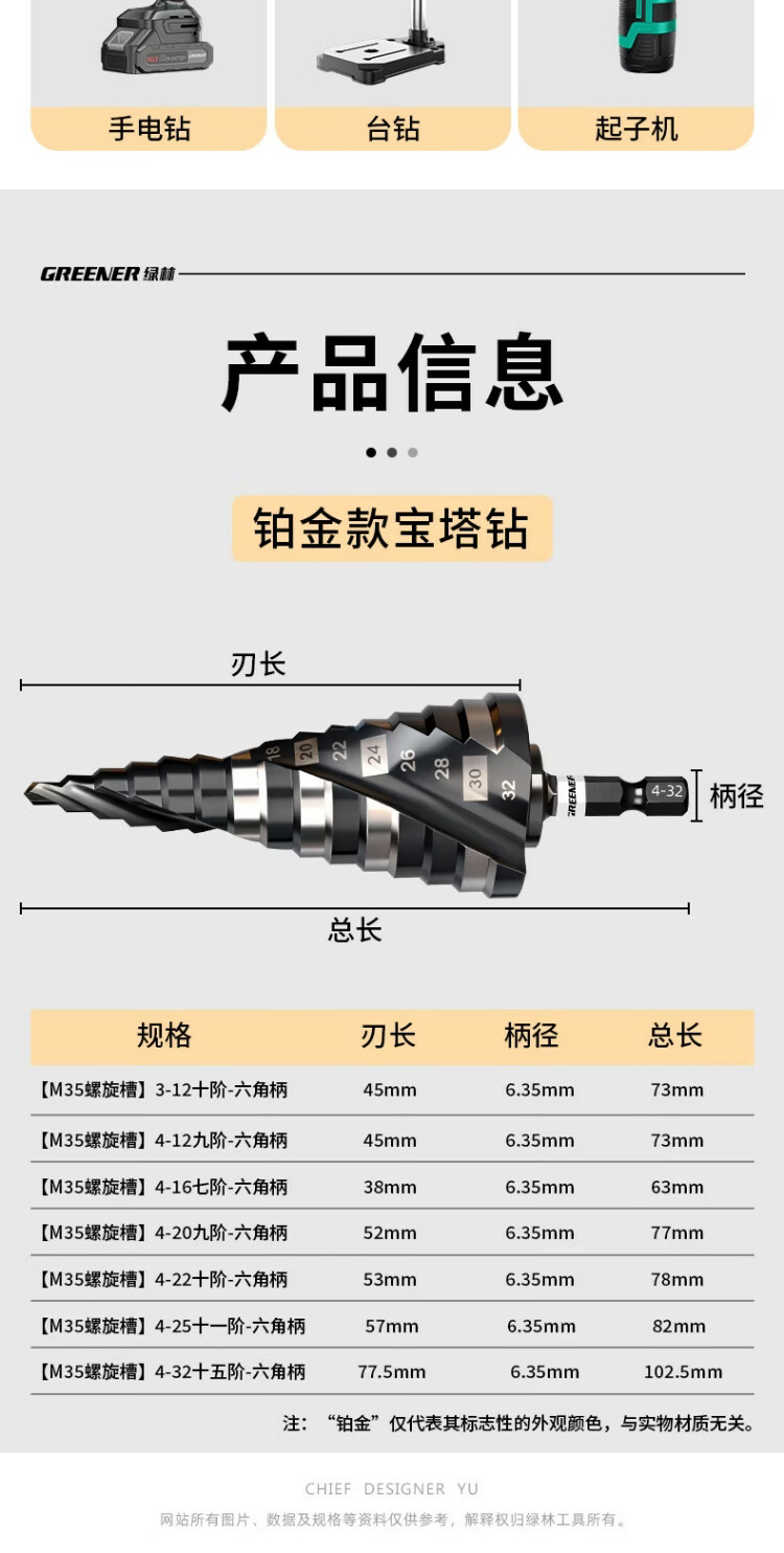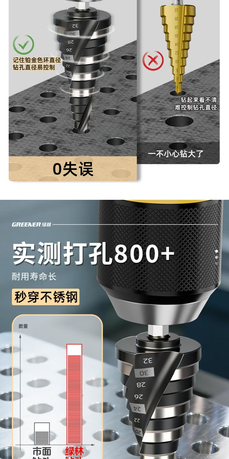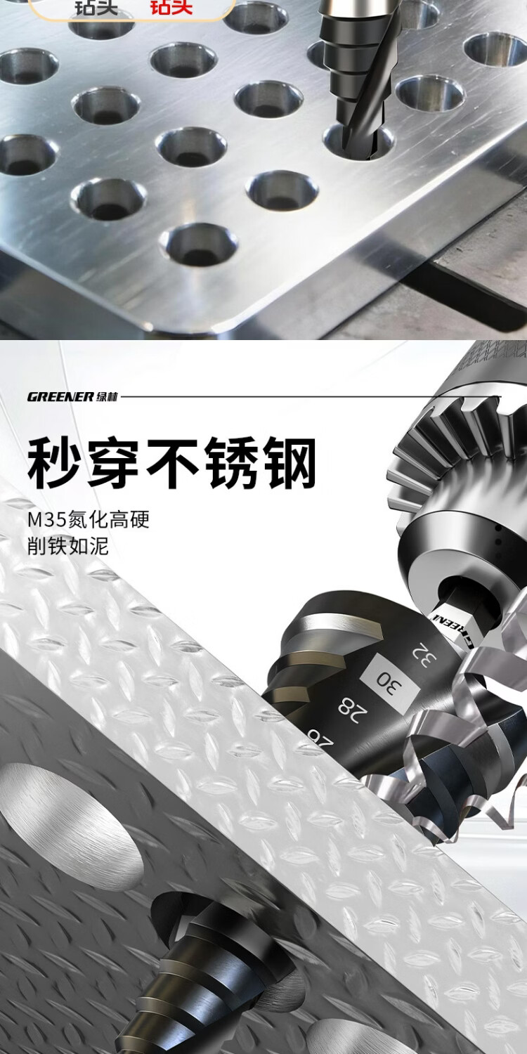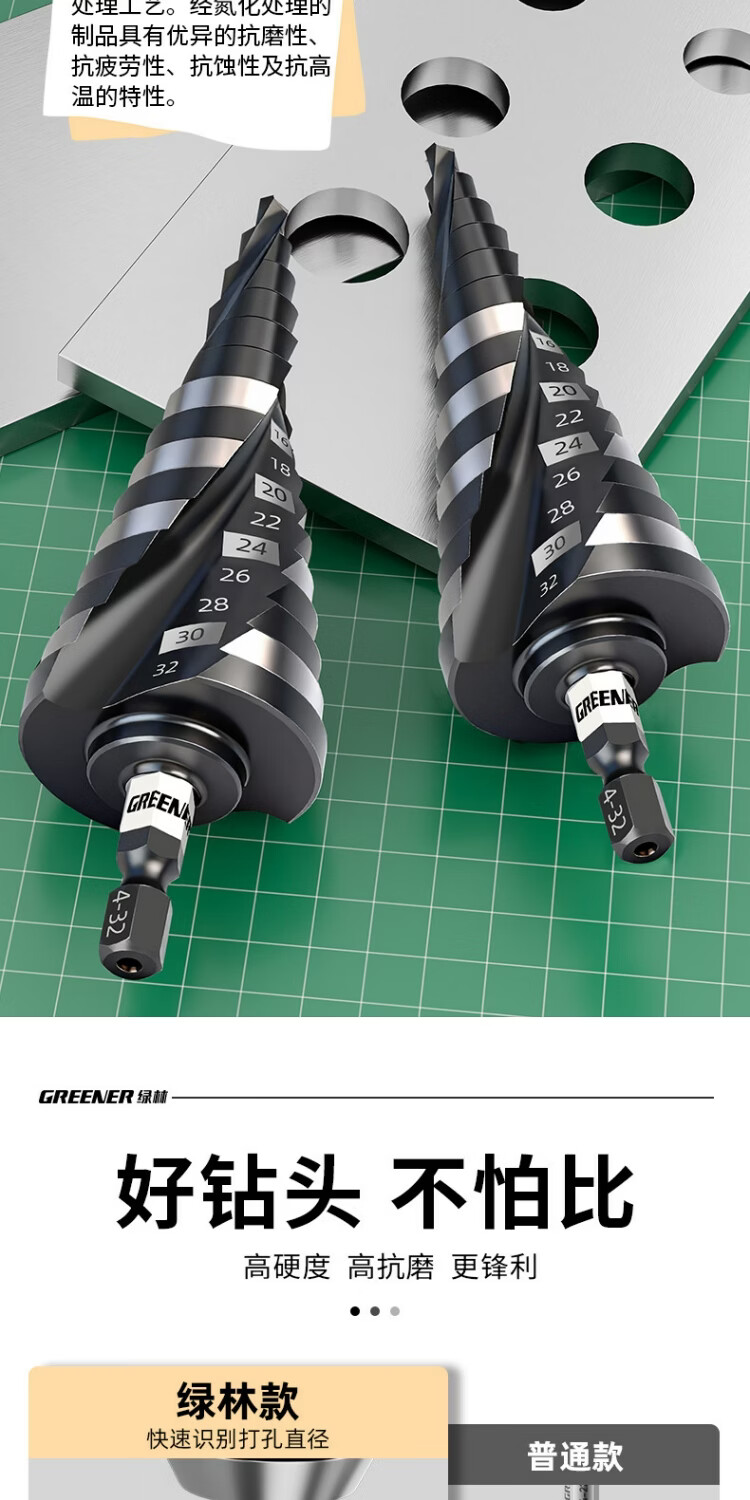 绿林高硬度宝塔钻头打孔开孔器金属扩孔锥形阶梯不锈钢专用手电钻 氮化含钴【4-12螺旋九阶】六角柄