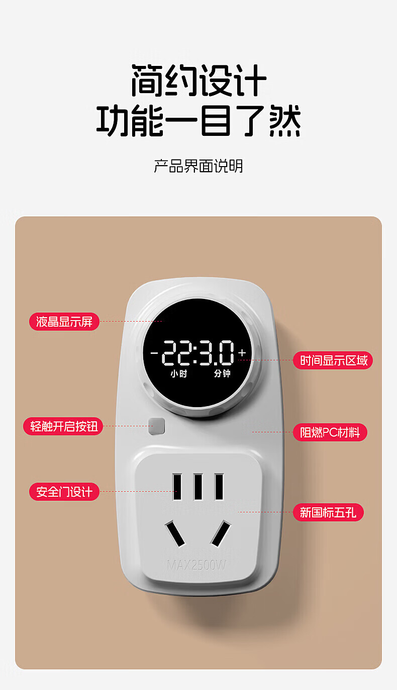 国际电工(FDD)机械式定时器插座家用电源防过充自动断电无线插头五孔时控开关 数显屏旋钮定时插座-带按键