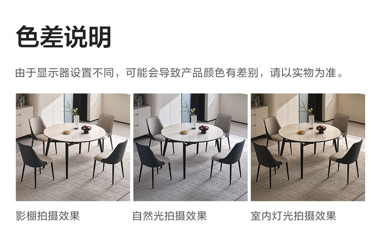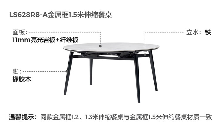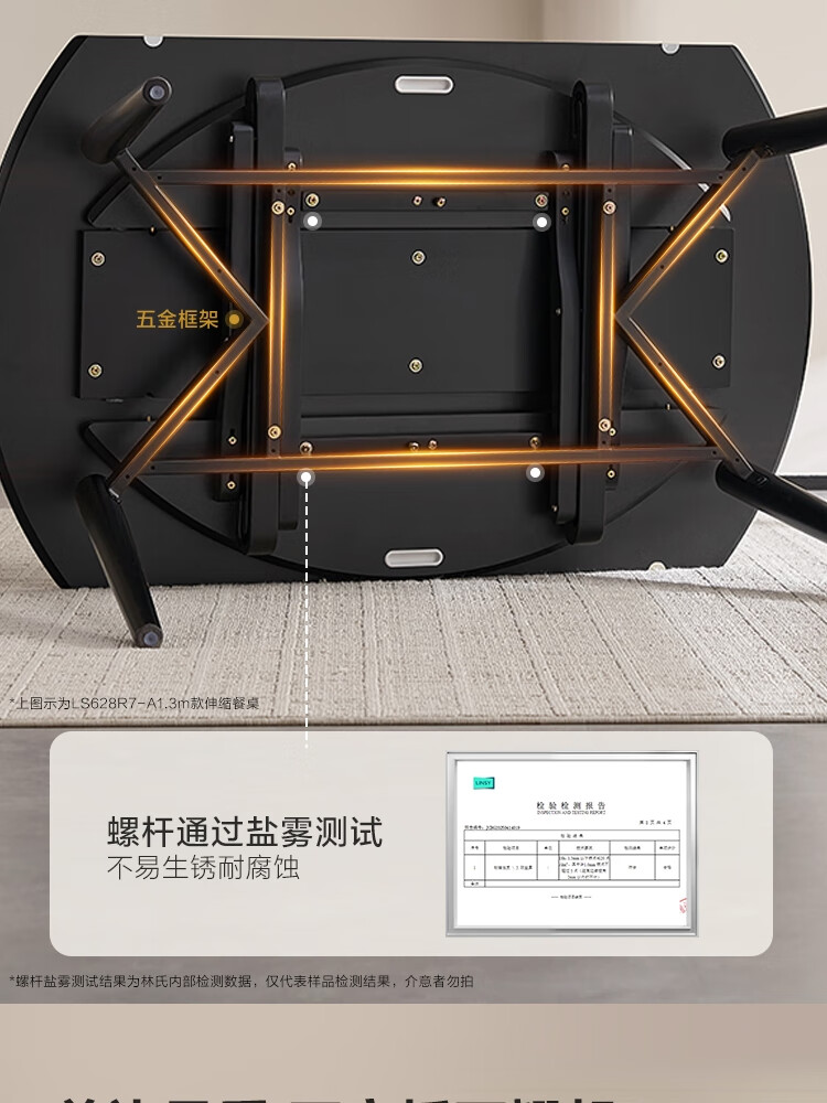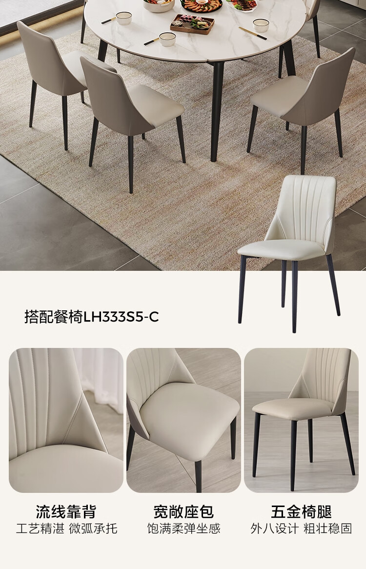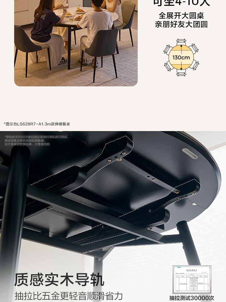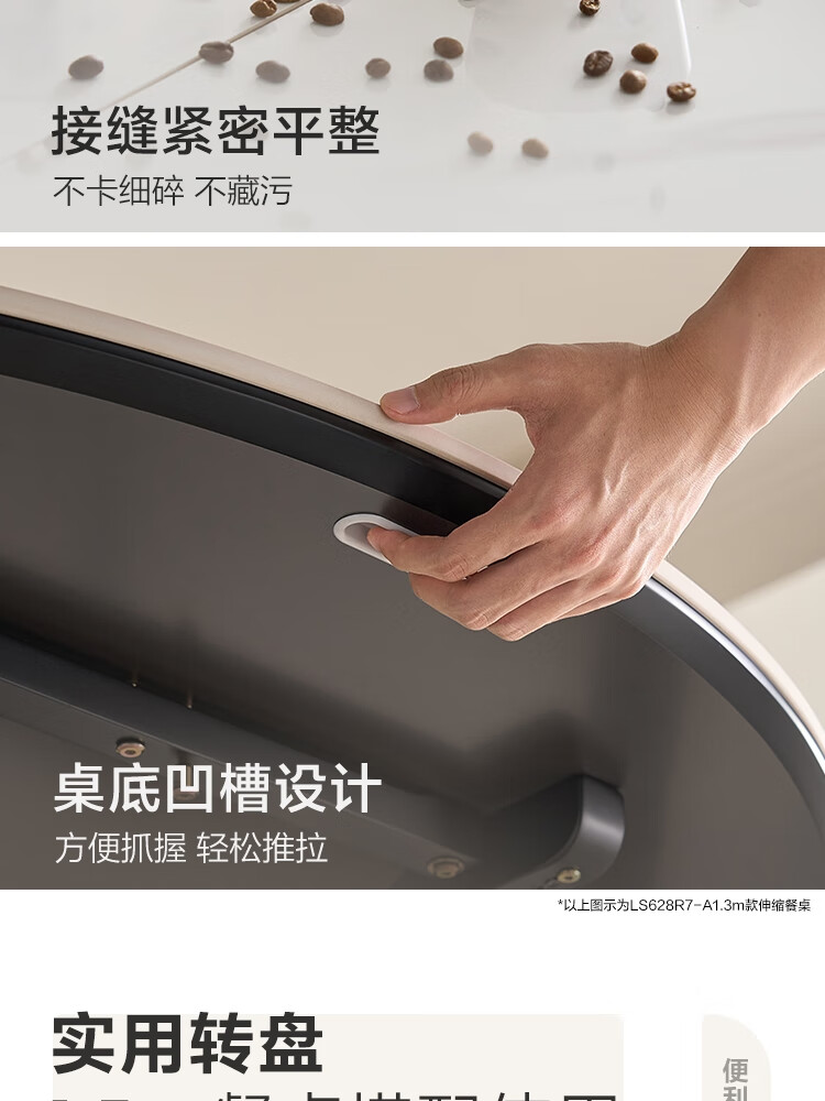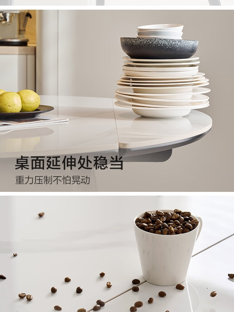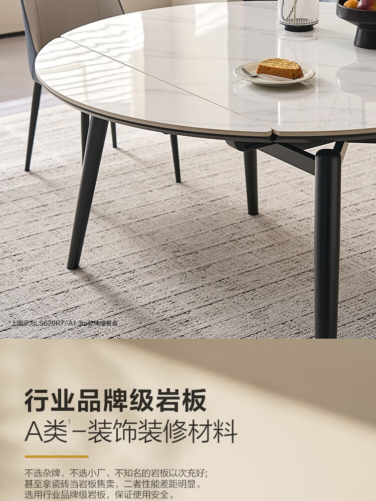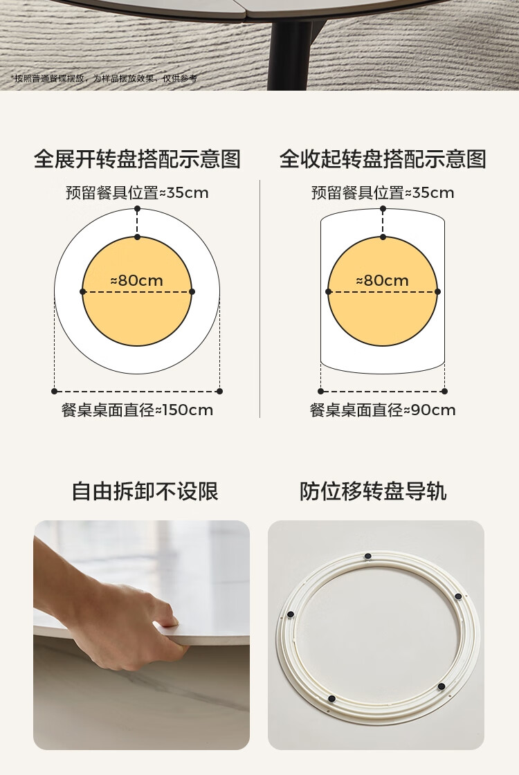 林氏家居岩板餐桌饭桌子家用餐桌折叠可伸缩小户型圆餐桌椅子全套LS628R7 手动转盘0.8m|适用1.5m餐桌