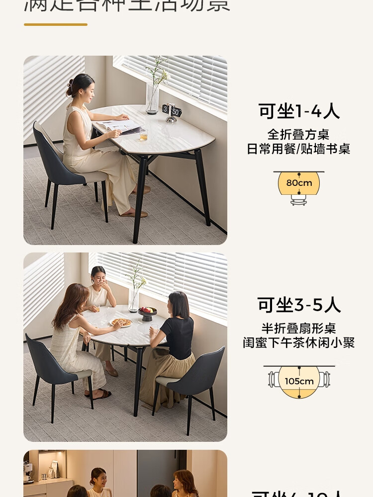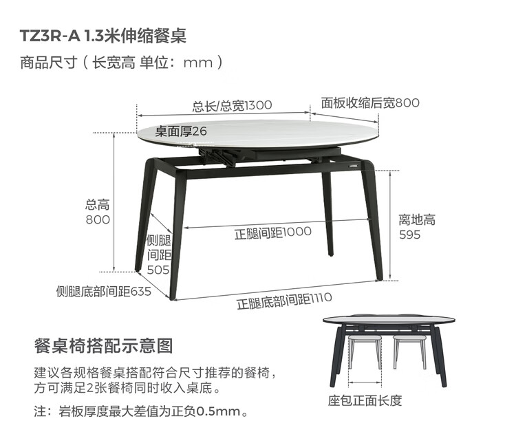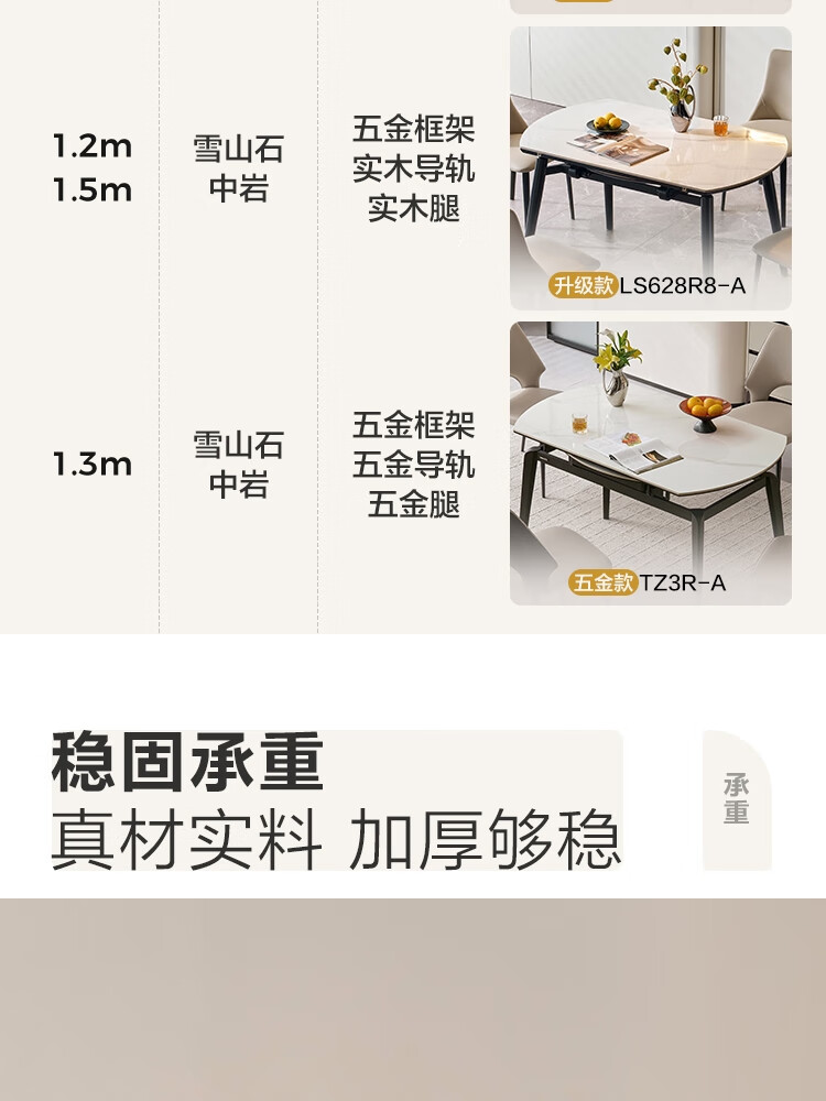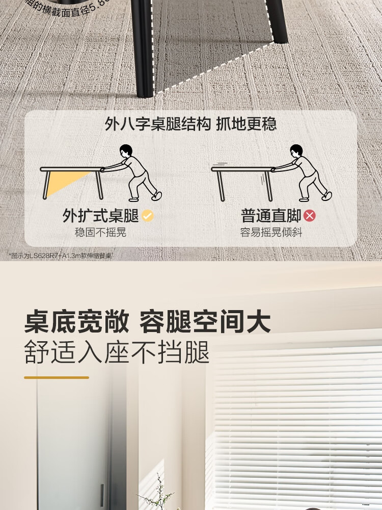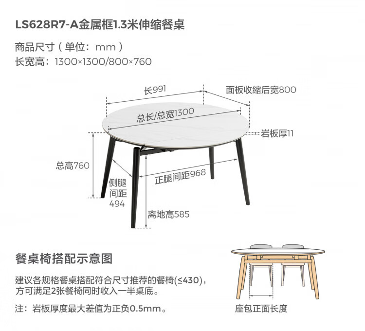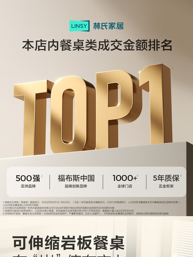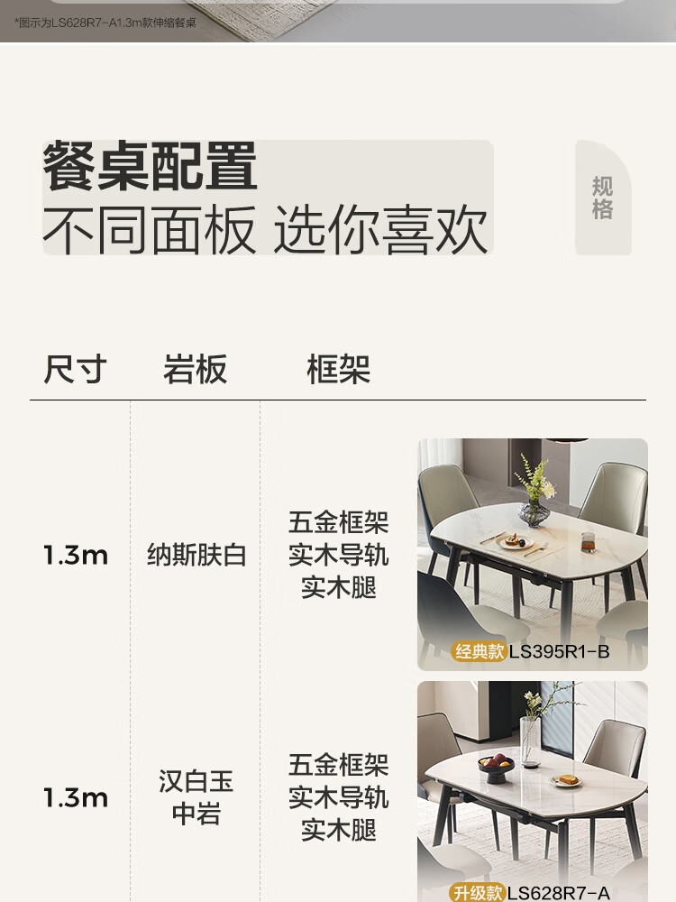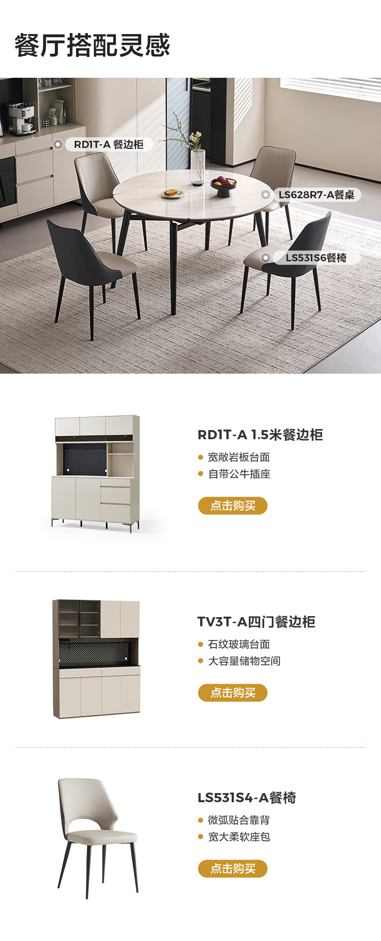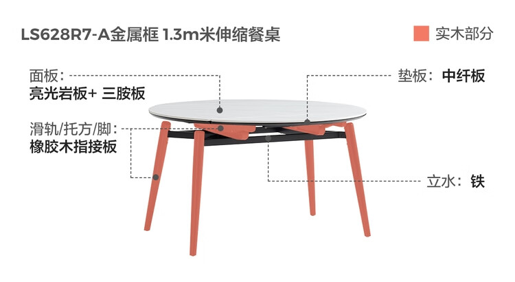 林氏家居岩板餐桌饭桌子家用餐桌折叠可伸缩小户型圆餐桌椅子全套LS628R7 手动转盘0.8m|适用1.5m餐桌