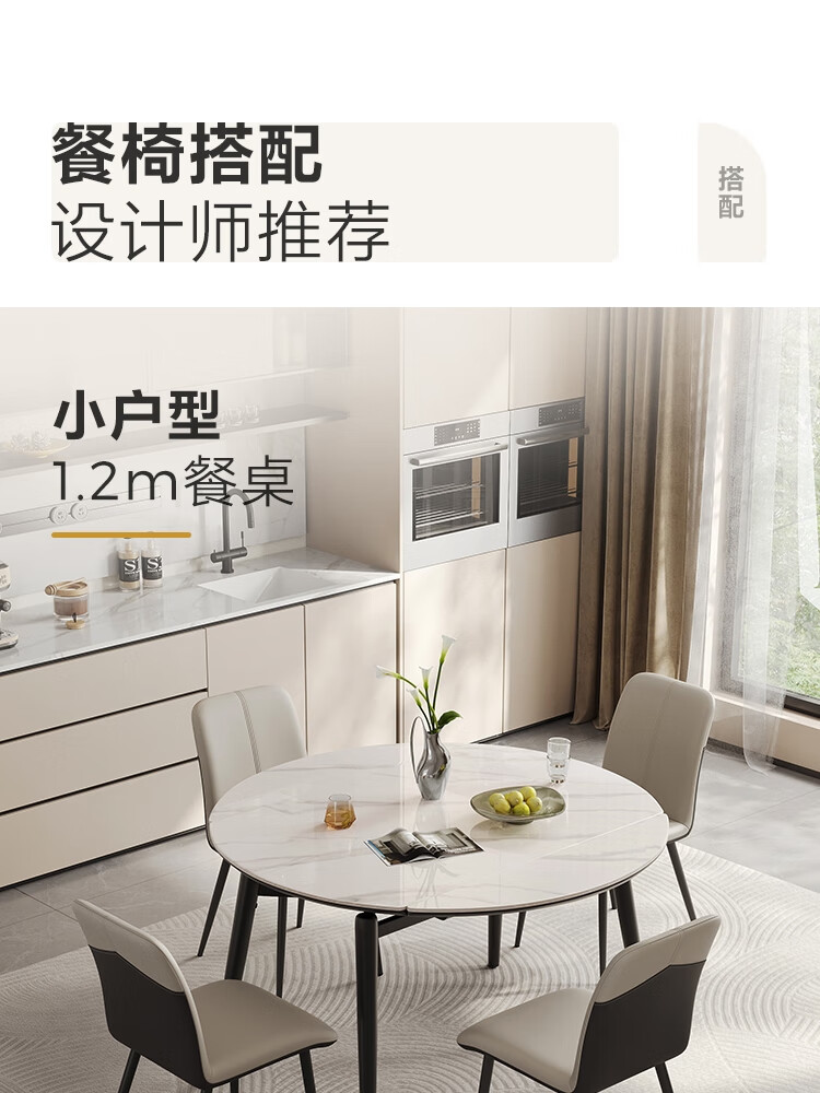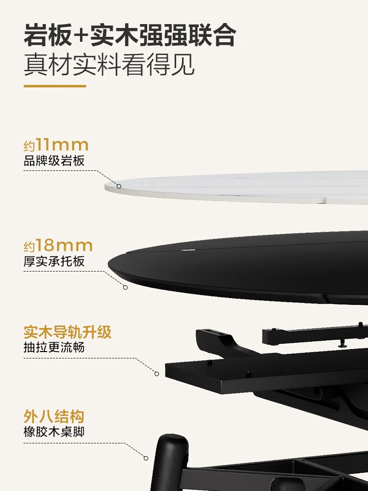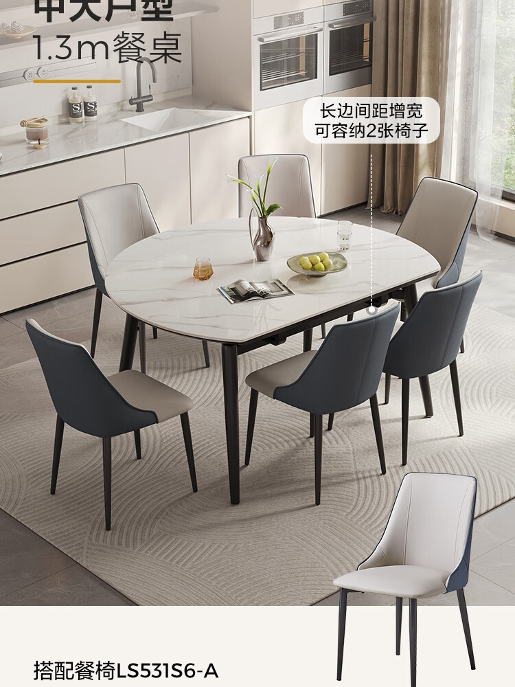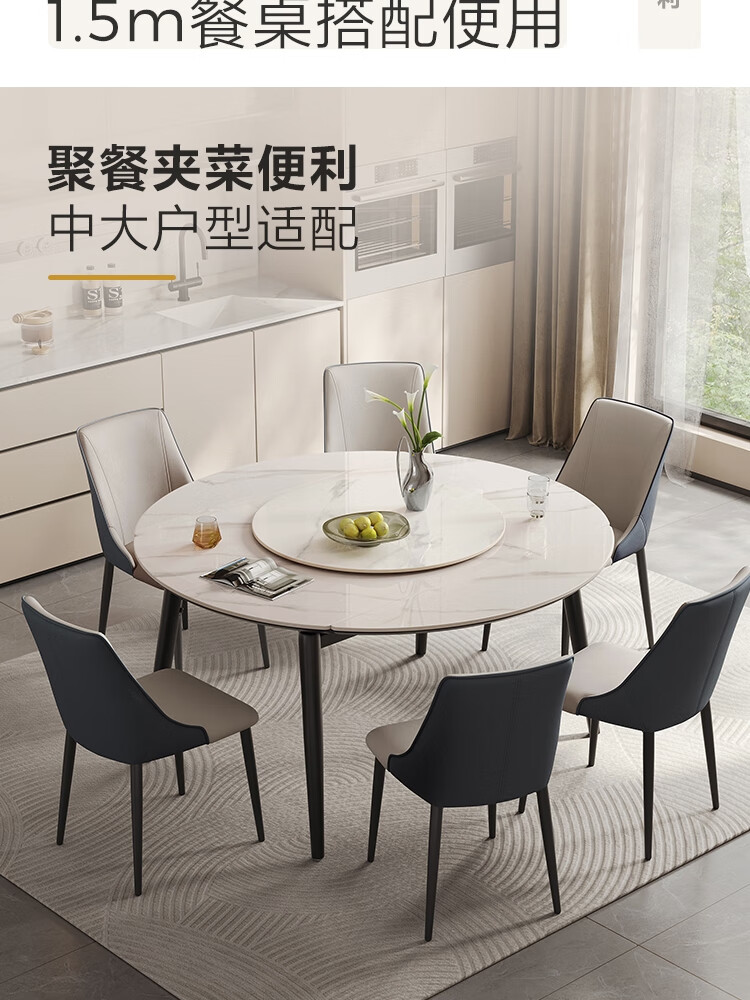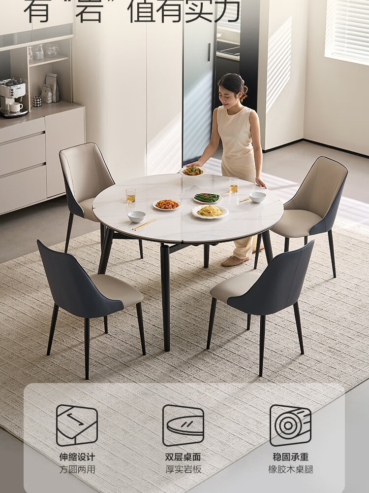 木斌实木岩板餐桌椅子全套现代简约家用小户型伸缩可折叠饭桌可变圆桌 【12MM岩板】 1桌6贝勒椅 (抗菌岩板) 1.5米