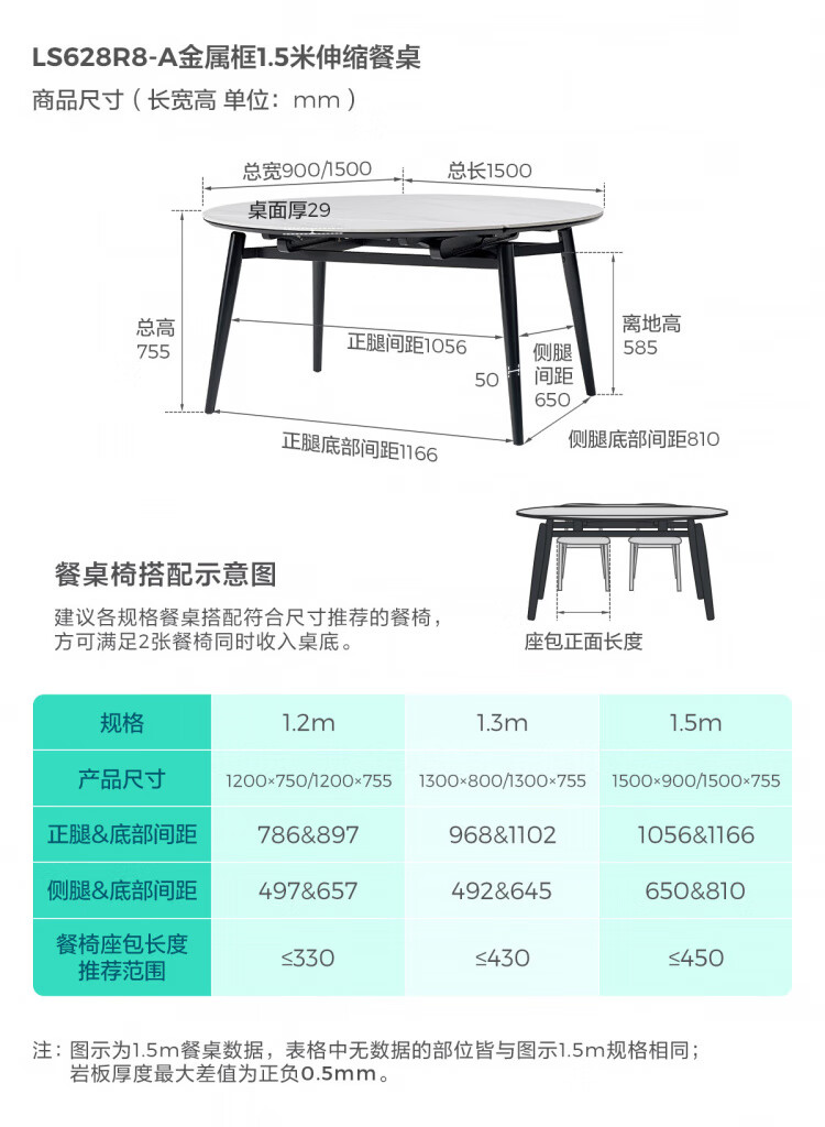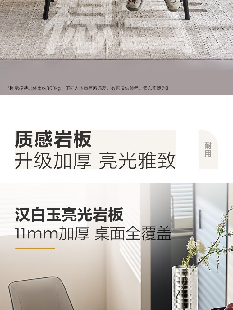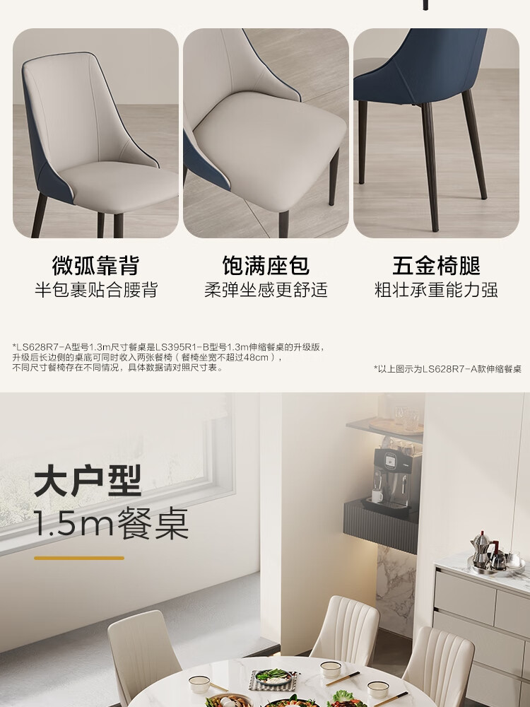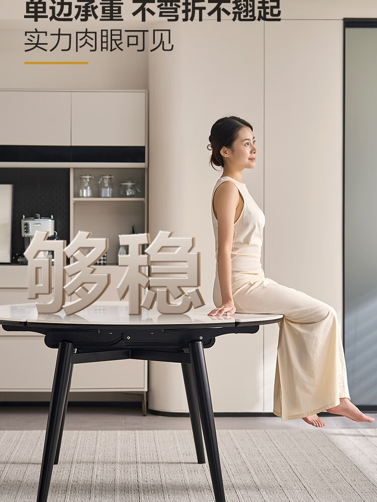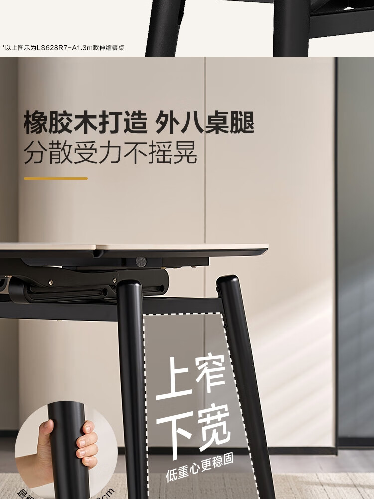 木斌实木岩板餐桌椅子全套现代简约家用小户型伸缩可折叠饭桌可变圆桌 【12MM岩板】 1桌6贝勒椅 (抗菌岩板) 1.5米