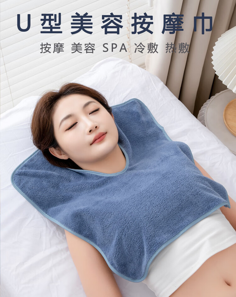 常为者美容院高档U型毛巾冷热敷吸水柔软男女按摩耐脏养生馆SPA加厚披肩 米白色 1条装