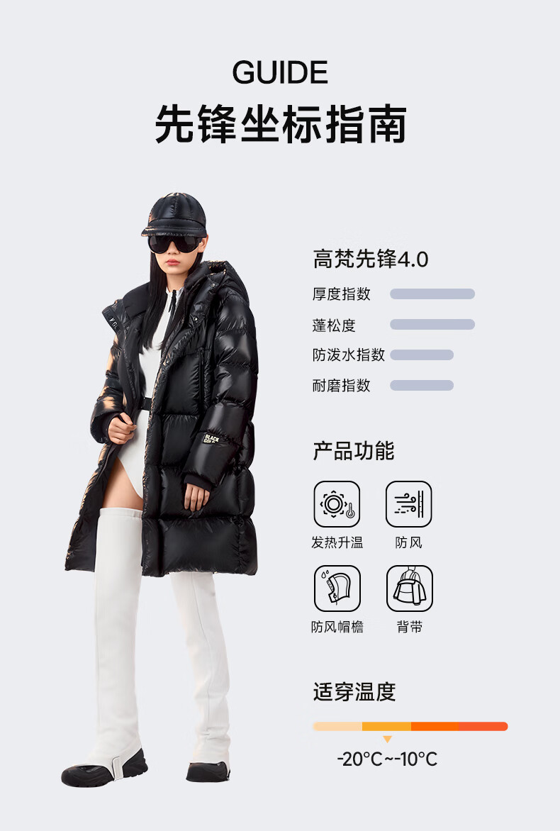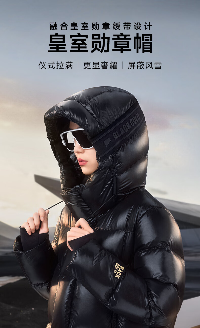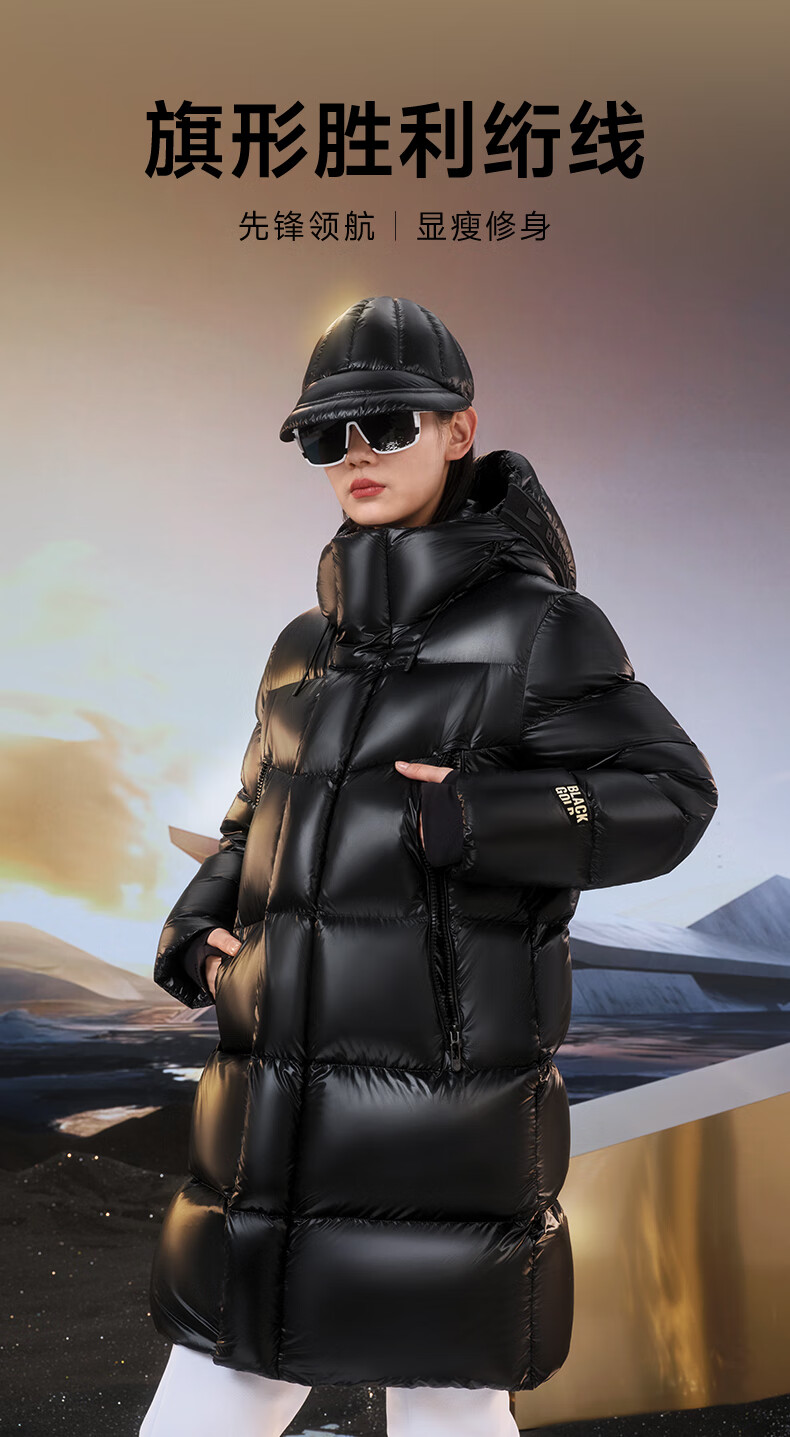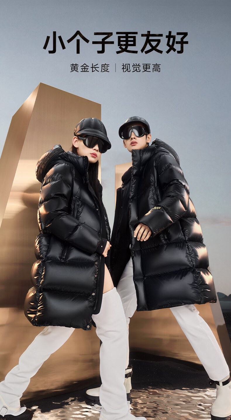 高梵黑金鹅绒服先锋4.0六格男女同款中长款冬季羽绒服外套 黑色 XL
