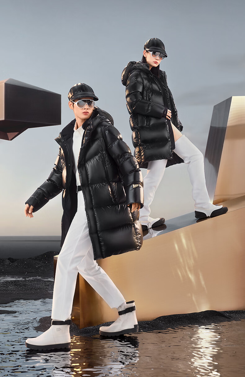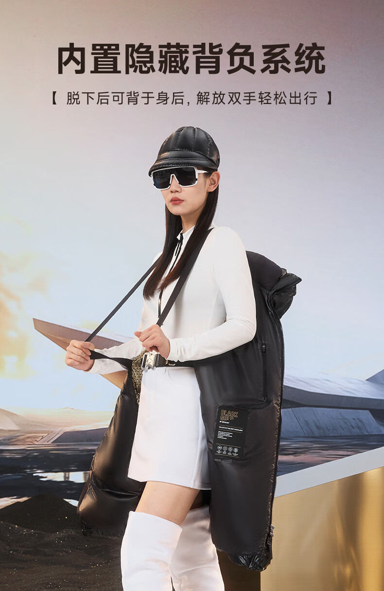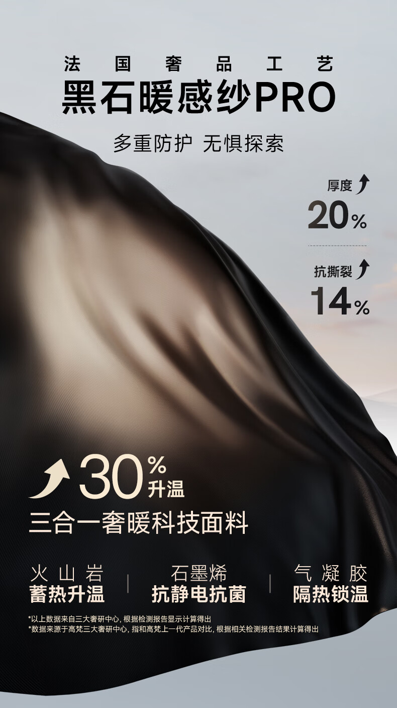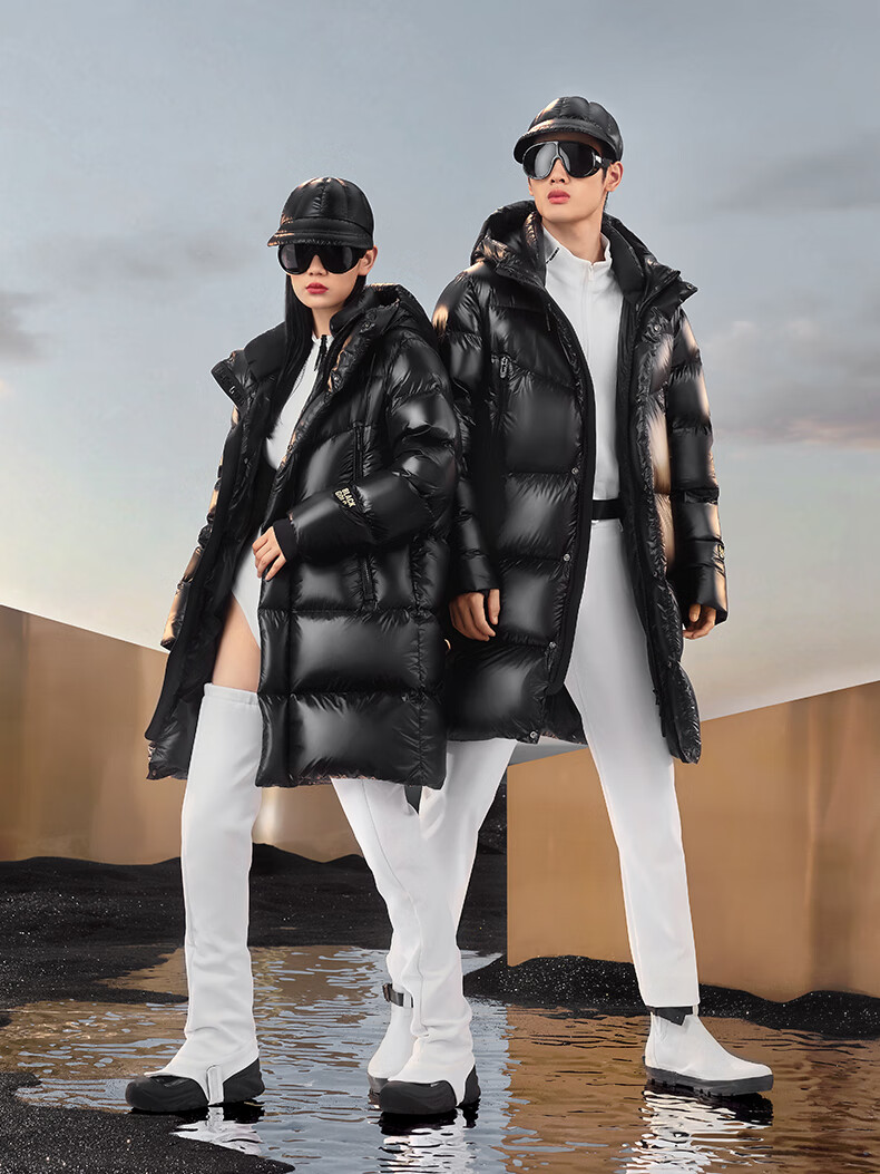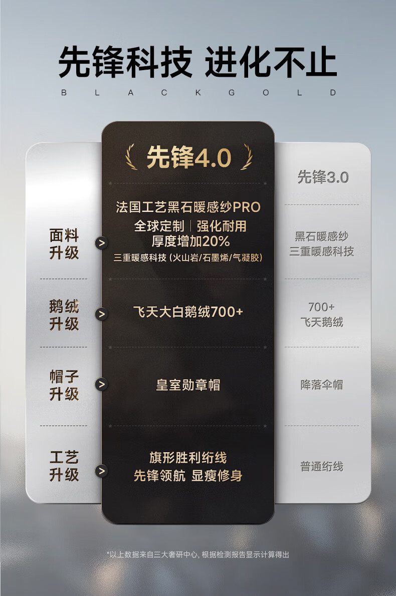 高梵黑金鹅绒服先锋4.0六格男女同款中长款冬季羽绒服外套 黑色 XL