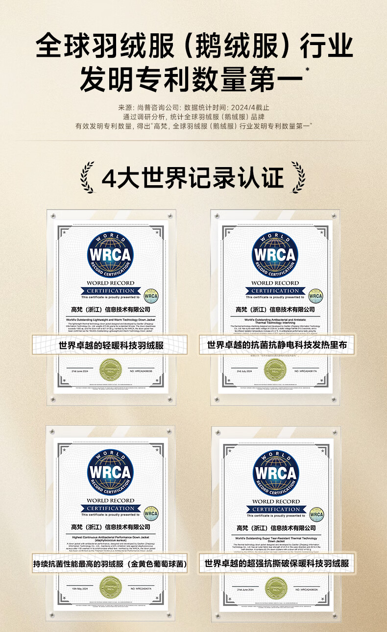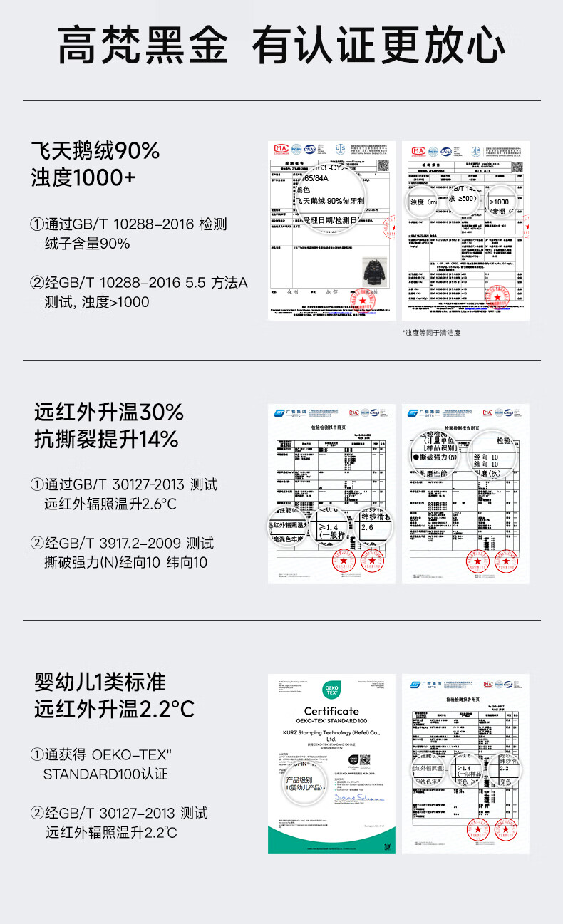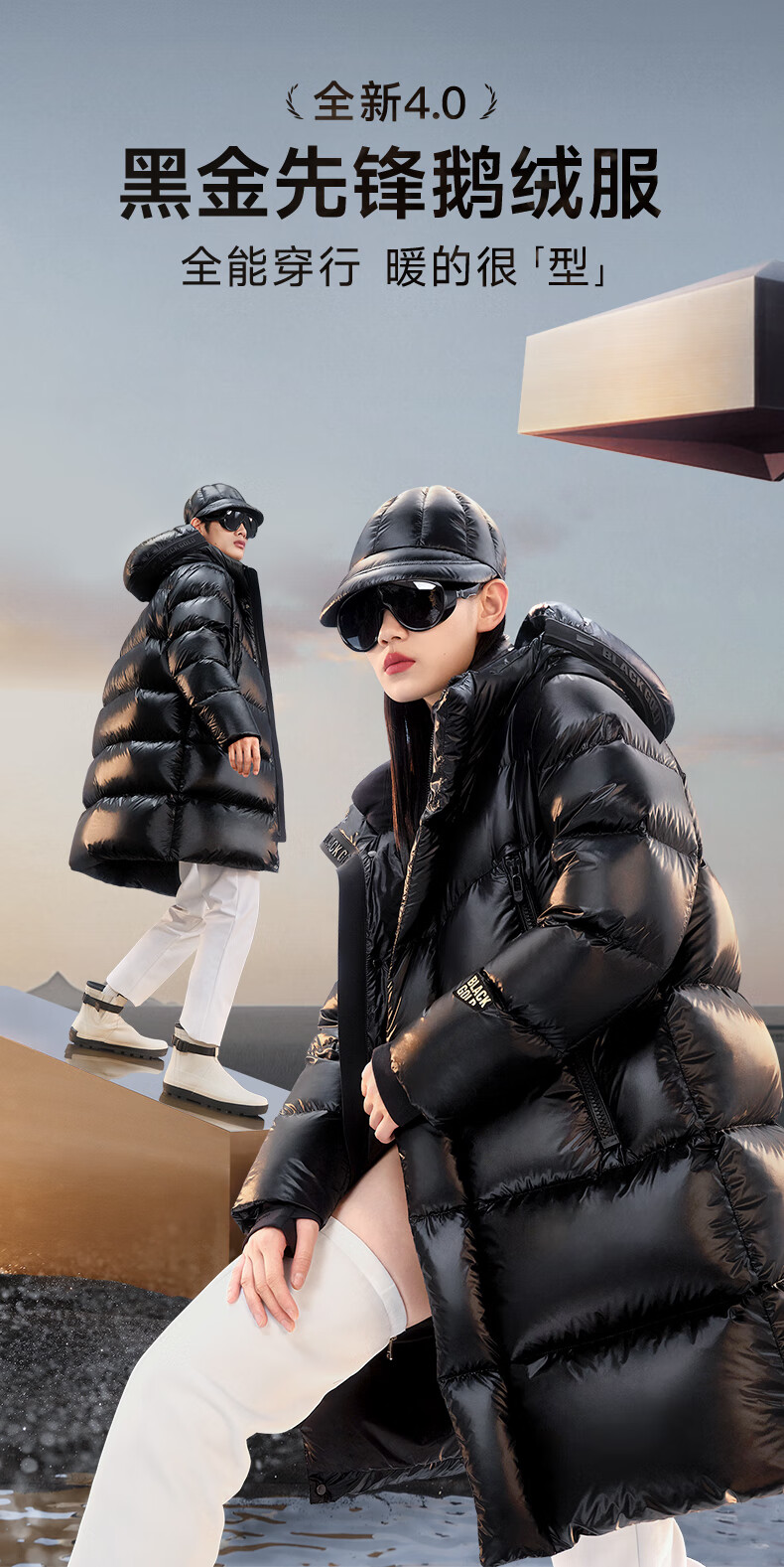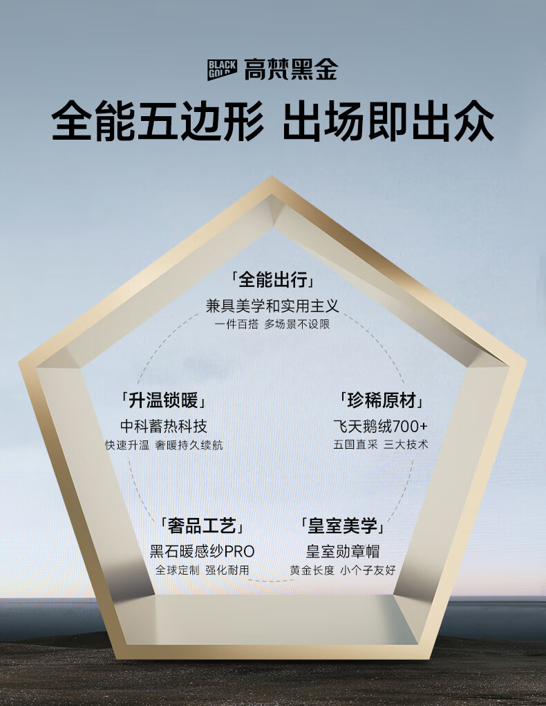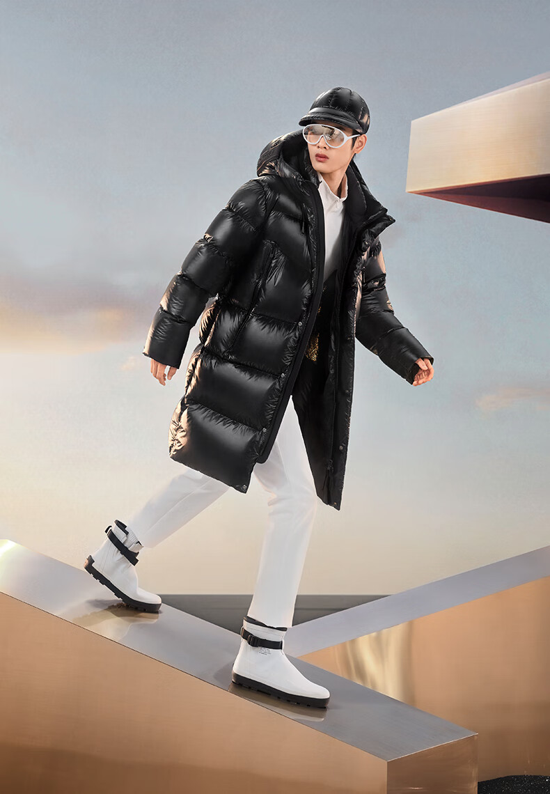 高梵黑金鹅绒服先锋4.0六格男女同款中长款冬季羽绒服外套 黑色 XL