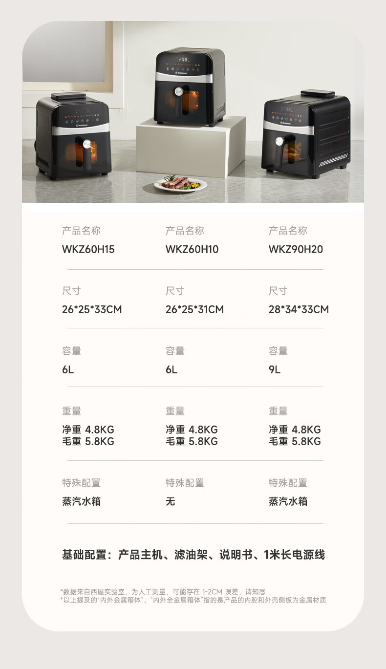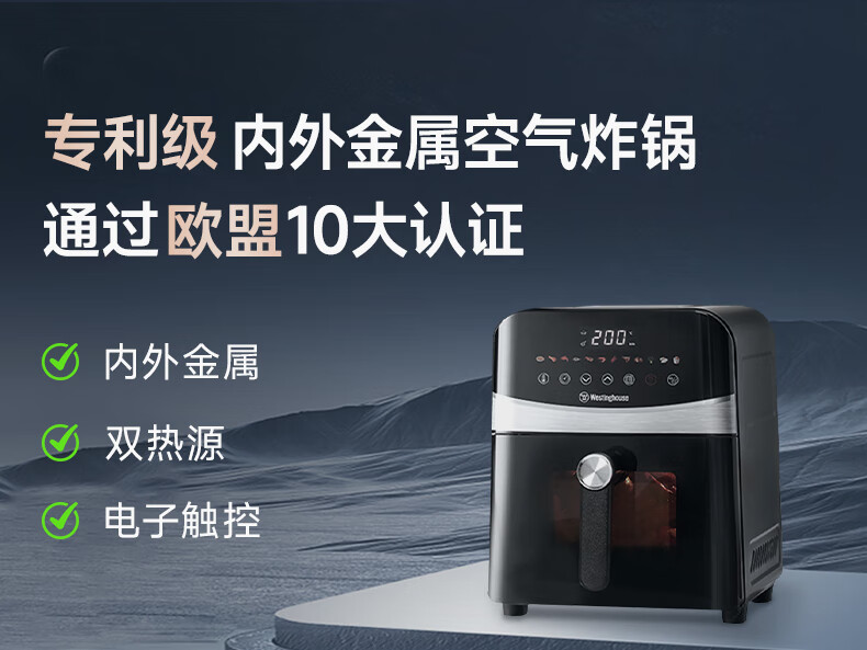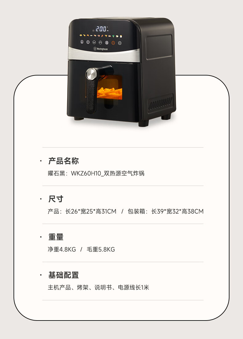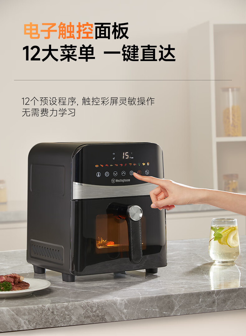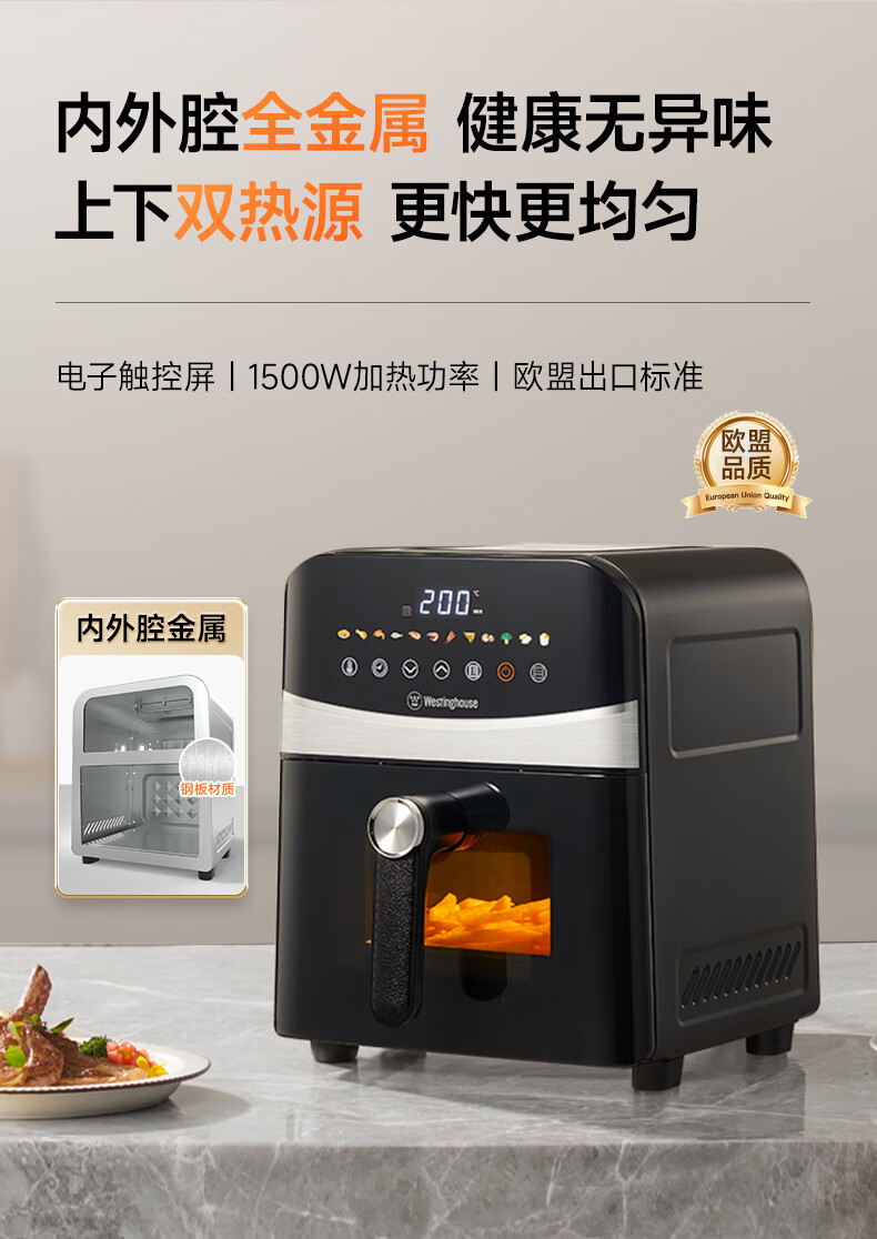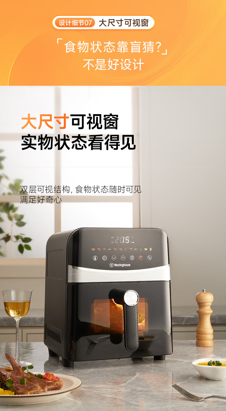 西屋(Westinghouse)可视化空气炸锅6升大容量金属内腔体多功能烤箱免翻面炸锅 WKZ60H10