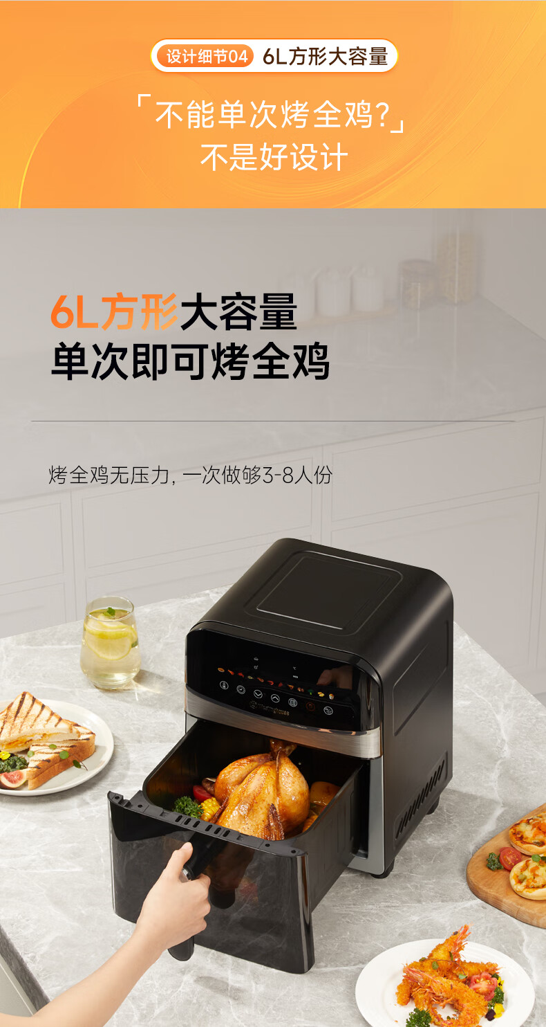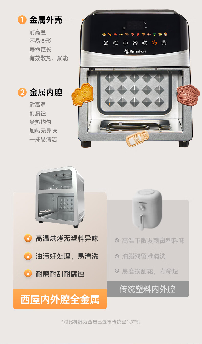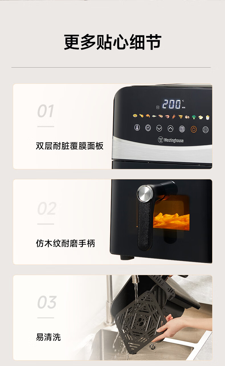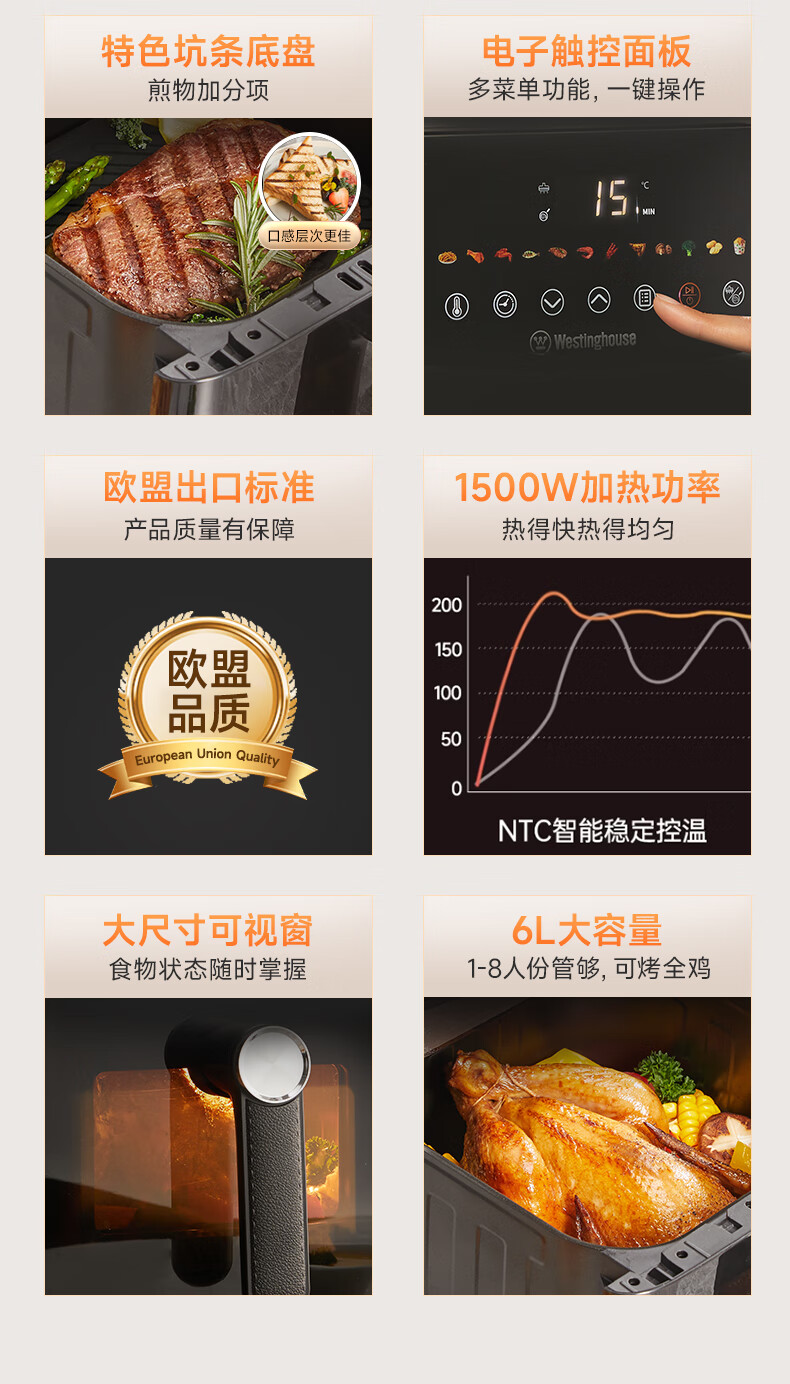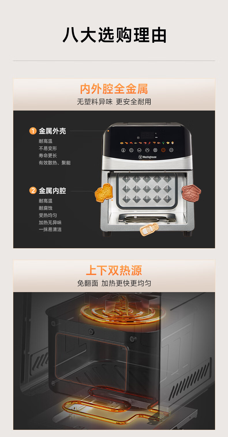 西屋(Westinghouse)可视化空气炸锅6升大容量金属内腔体多功能烤箱免翻面炸锅 WKZ60H10