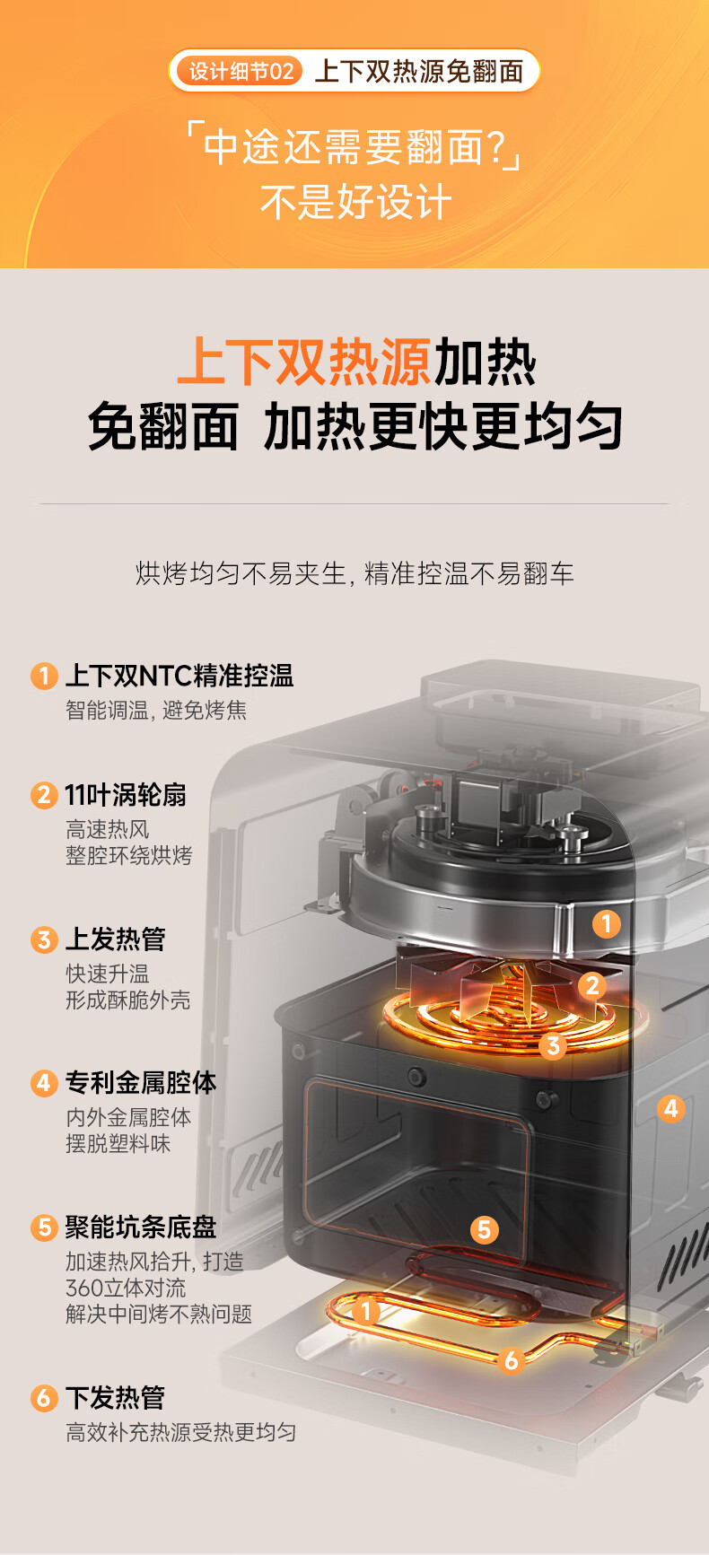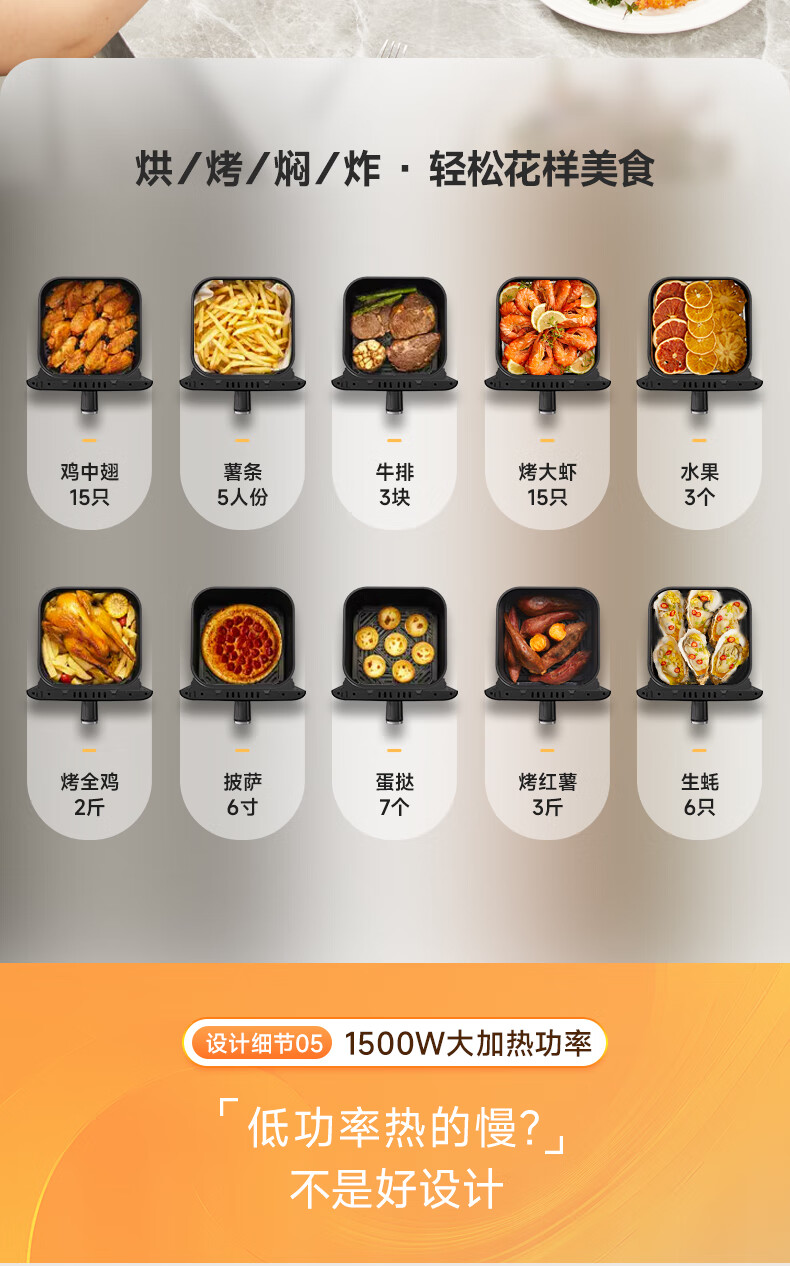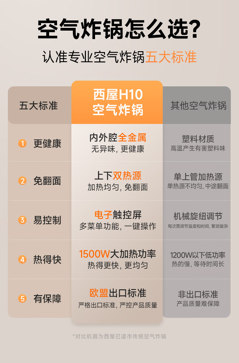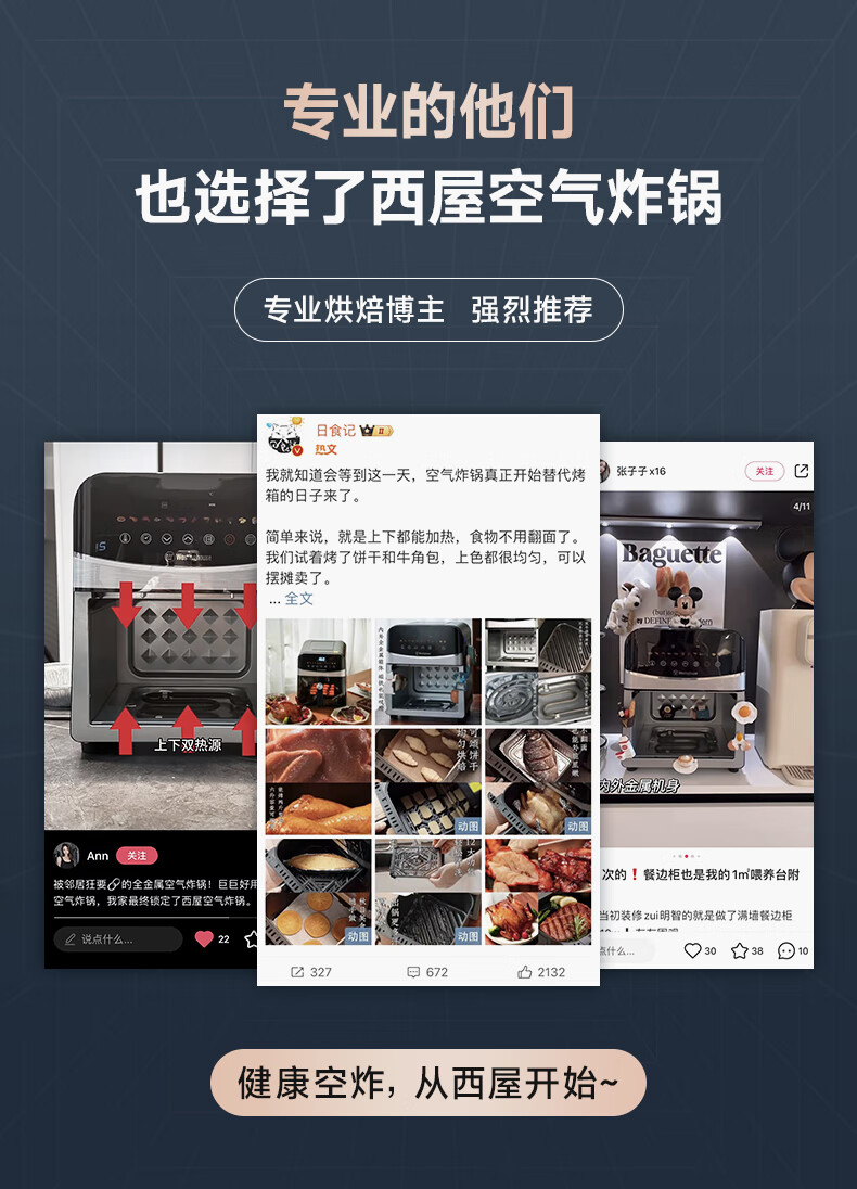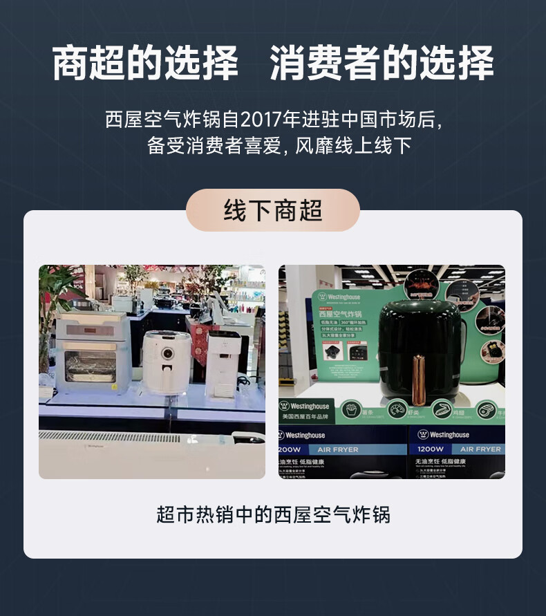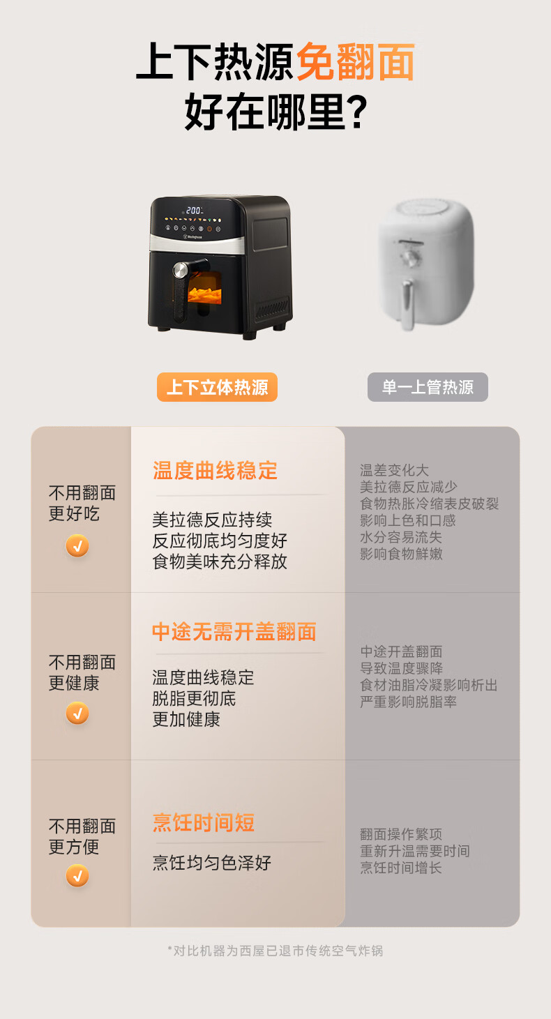 西屋(Westinghouse)可视化空气炸锅6升大容量金属内腔体多功能烤箱免翻面炸锅 WKZ60H10