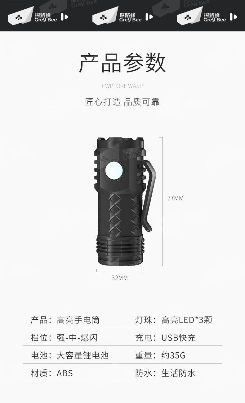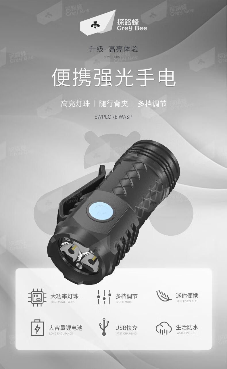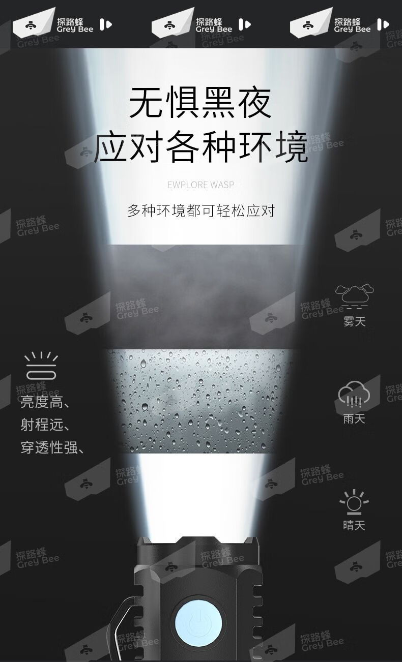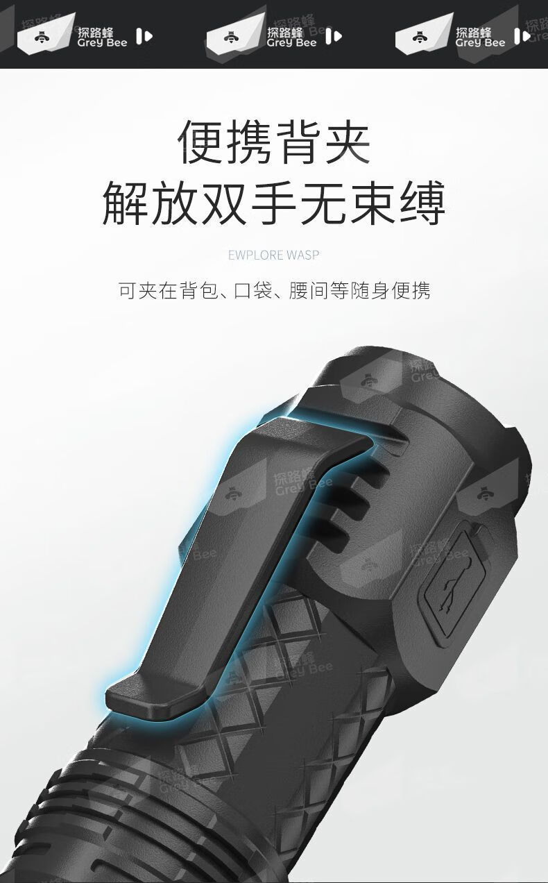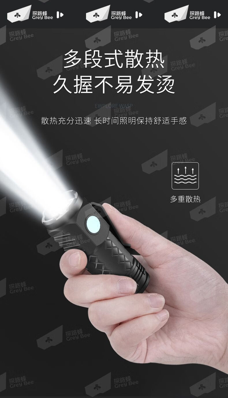 手电筒强光充电小型便携超量家用户外照明手电筒超长续航多功能潮流好物 中配款-S2灯芯 慢充-待机19天