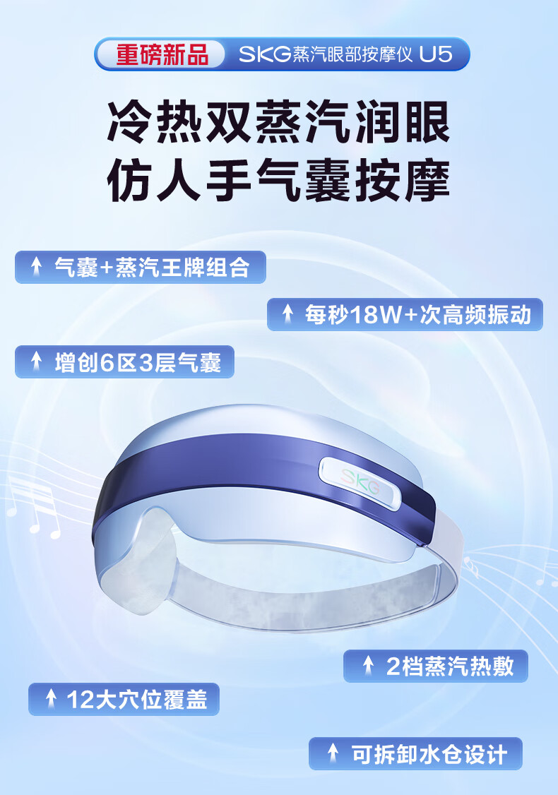 SKG眼部按摩仪U5护眼仪蒸汽眼罩眼睛疲劳舒缓神器干眼润眼热敷雾化智能按摩仪 元旦新年礼物送男女生 【热销1万+】热敷蒸汽润眼+气囊按摩