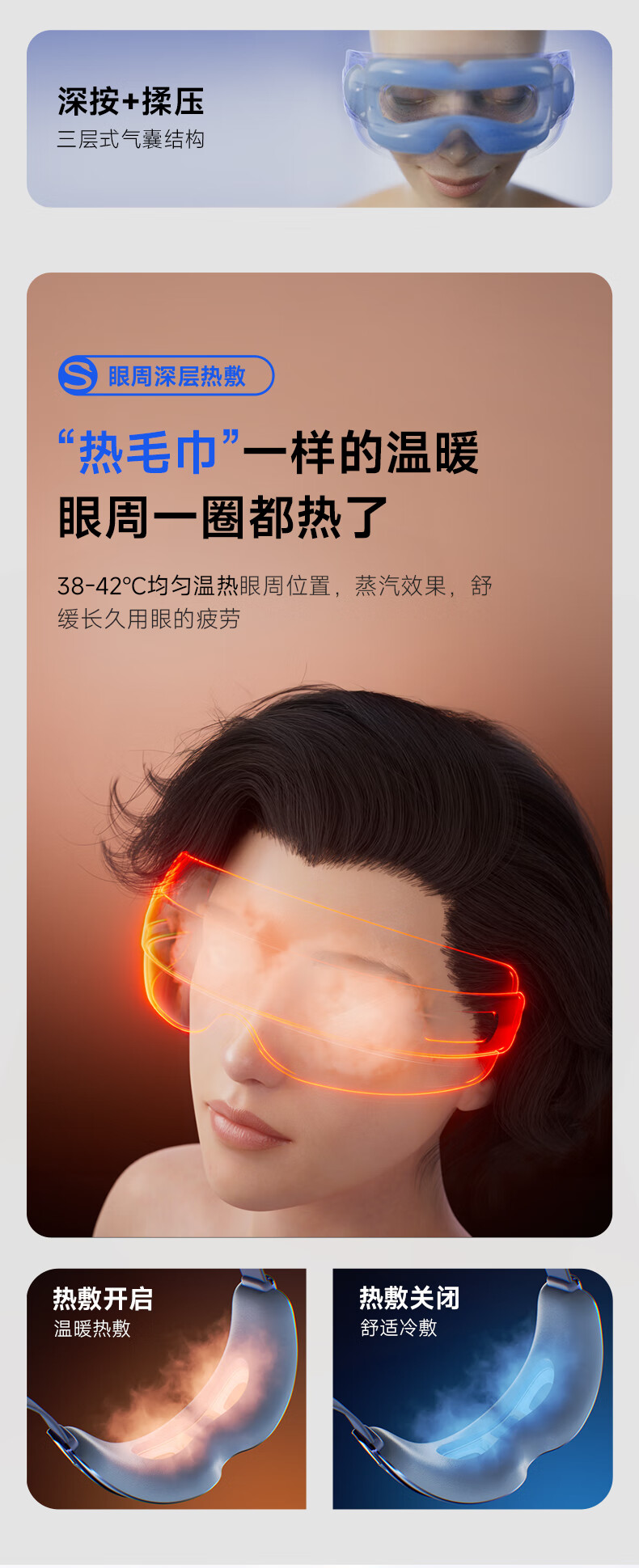 VLVEE眼部按摩仪润眼蒸汽护眼仪穴位按摩热敷眼罩眼睛干涩蓝牙音乐生日礼物女生 尊享款柔雾灰【穴位按摩+蒸汽润眼+蓝牙音乐】