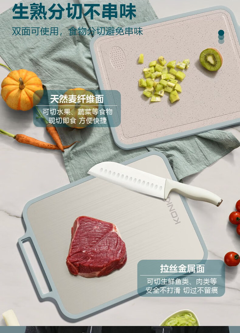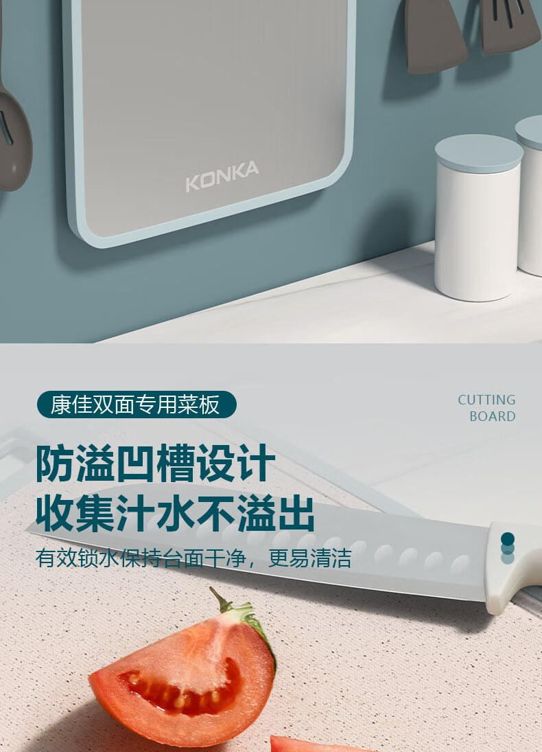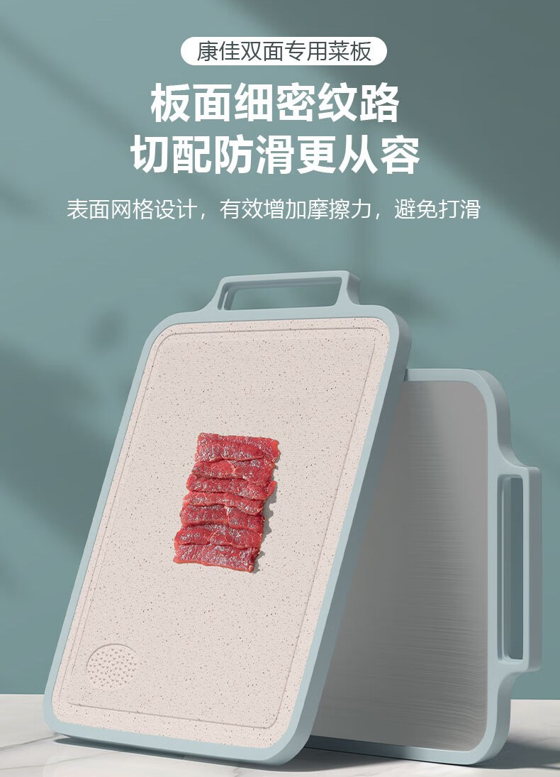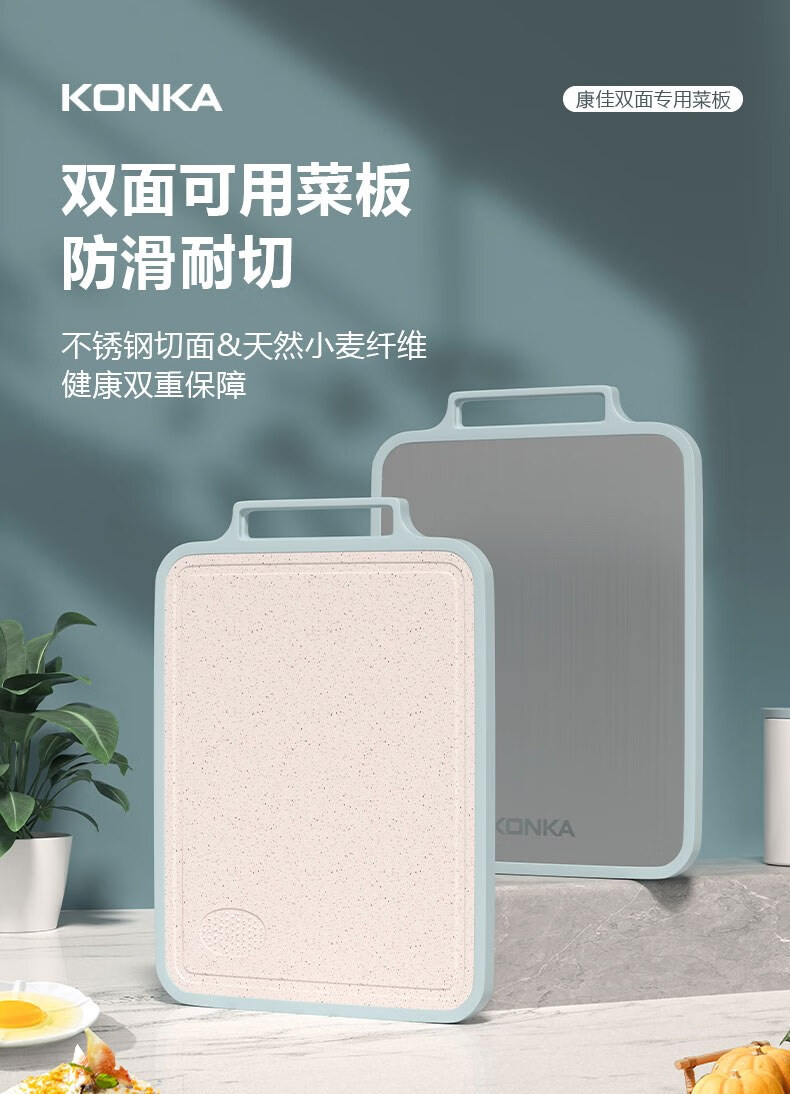 康佳(KONKA)菜板双面砧板不锈钢粘板家用防霉抗菌切菜板厨房擀面案板多功能 双面可用小清新 长38cm宽29cm