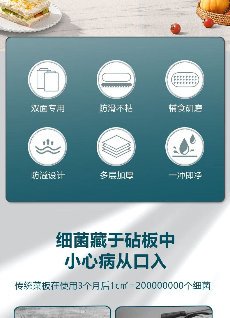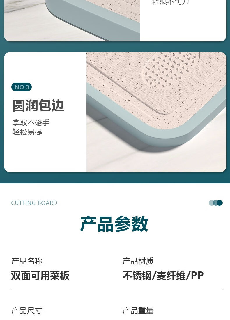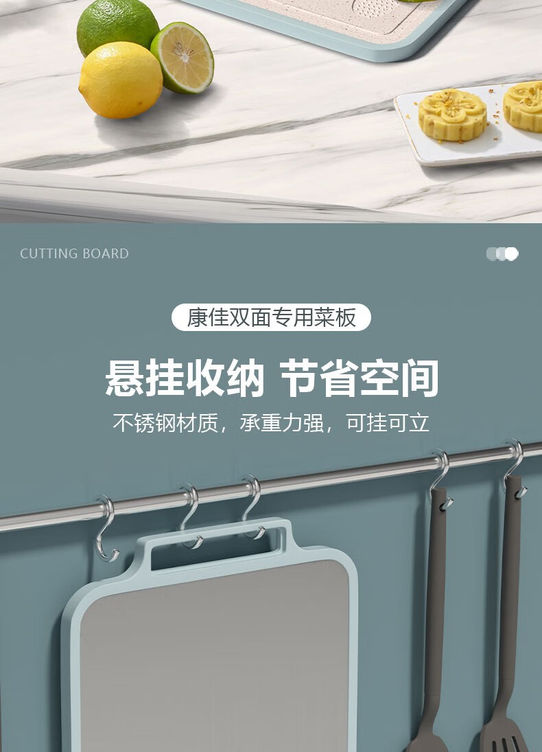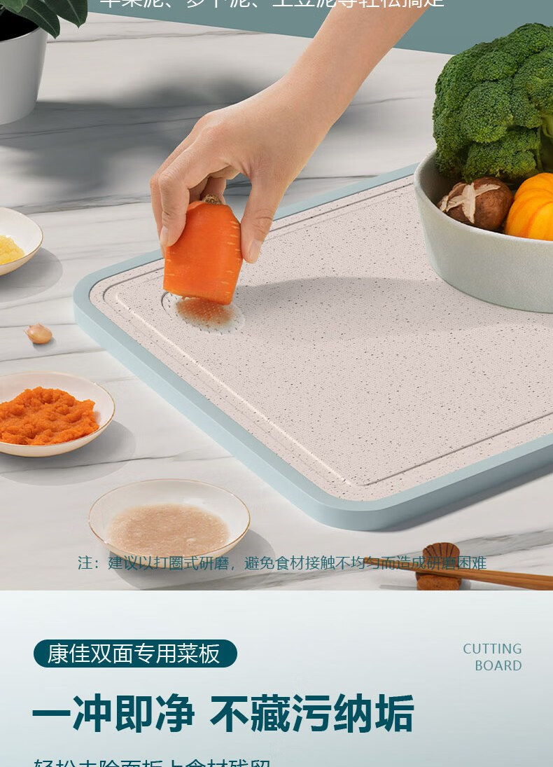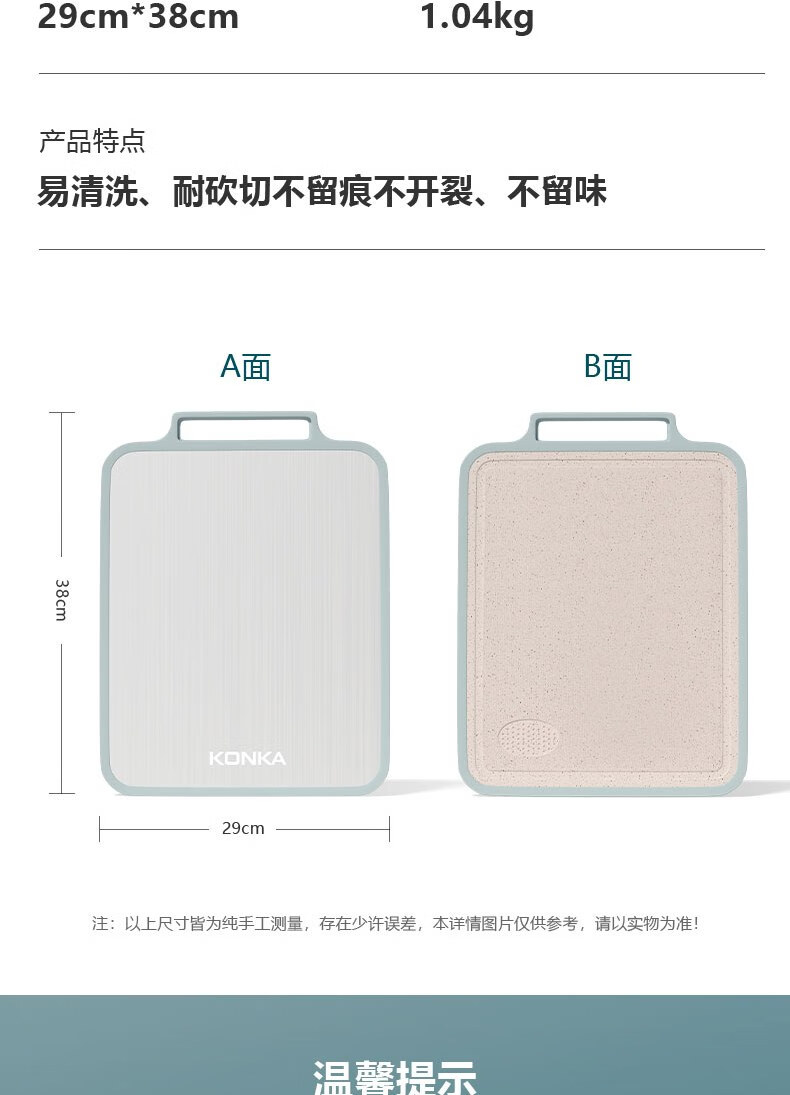 康佳(KONKA)菜板双面砧板不锈钢粘板家用防霉抗菌切菜板厨房擀面案板多功能 双面可用小清新 长38cm宽29cm