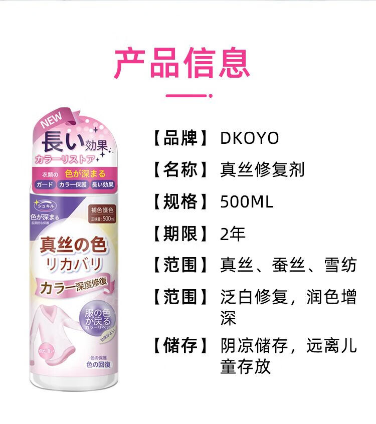 洁护雅真丝颜色恢复剂蚕丝雪纺增色增艳衣物泛白发灰褪色修复还原洗涤剂 500ml 1瓶【体验装】