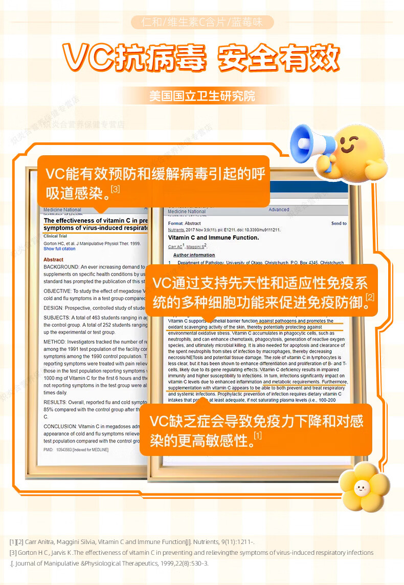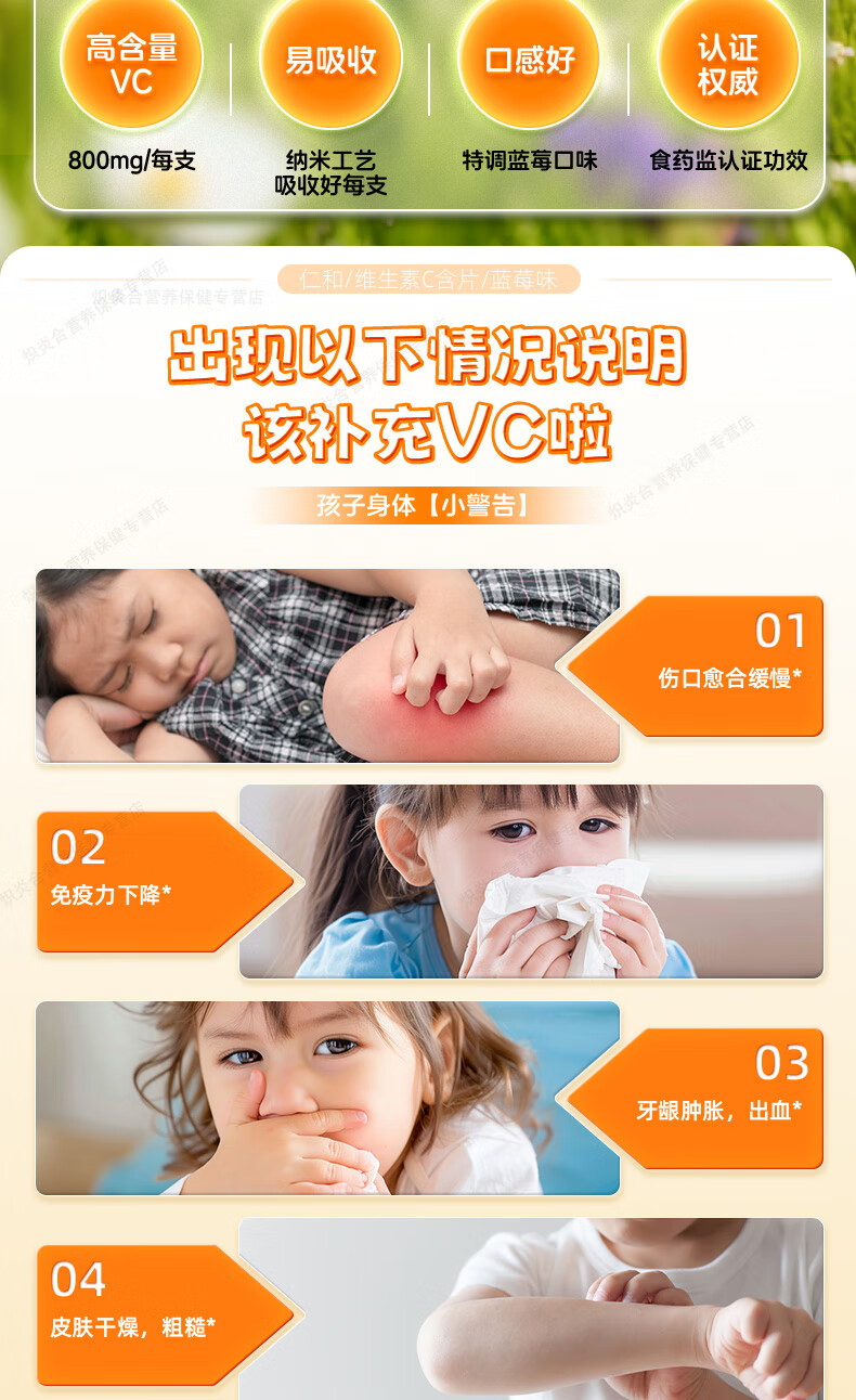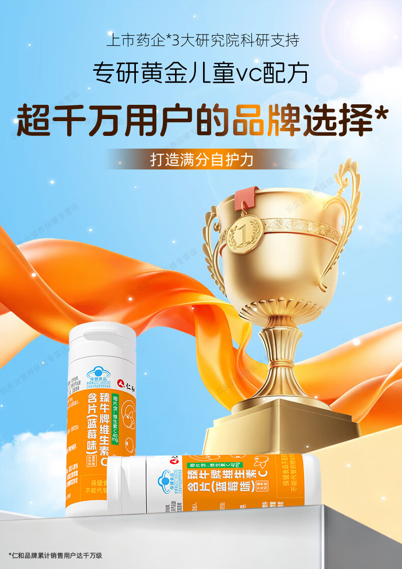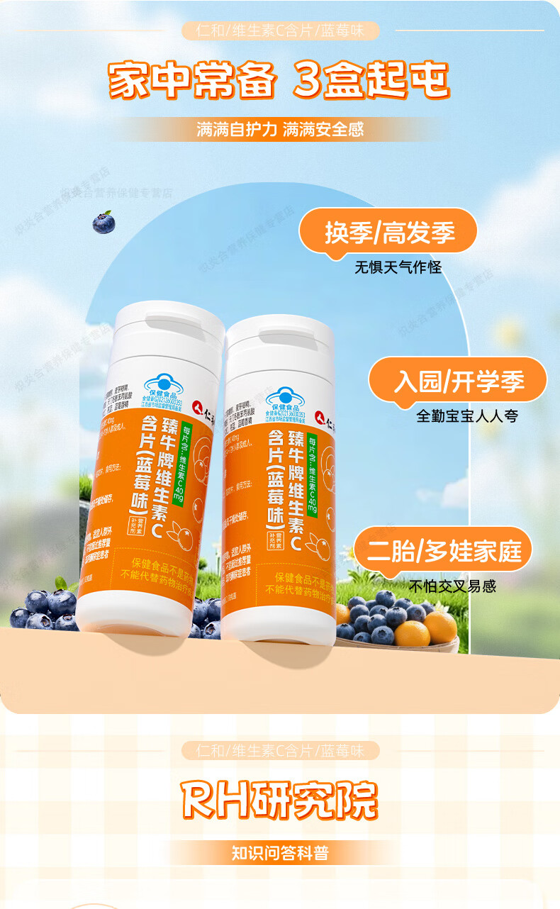 仁和维生素C咀嚼片蓝莓味复合维c宝宝补充VC儿童4-17岁感冒过敏常备 【8盒巩固装】贴心守护*自护小超人 20片*8瓶