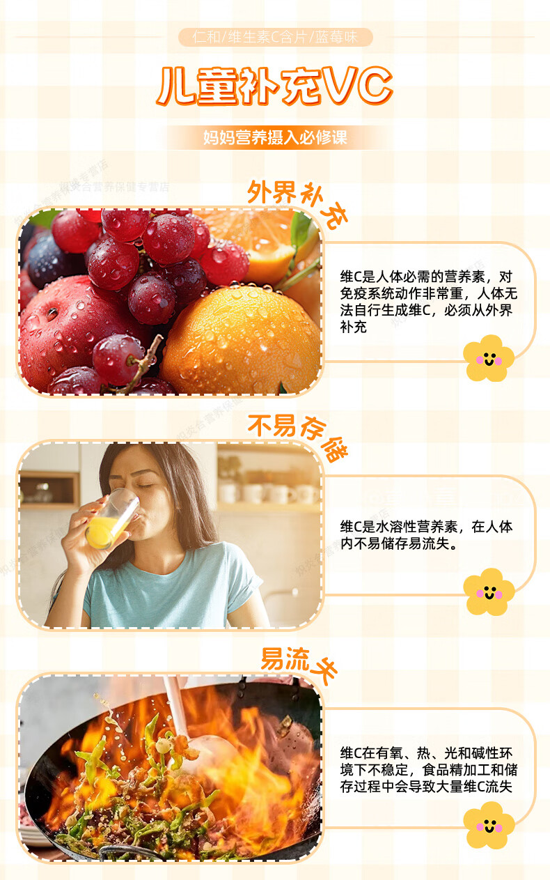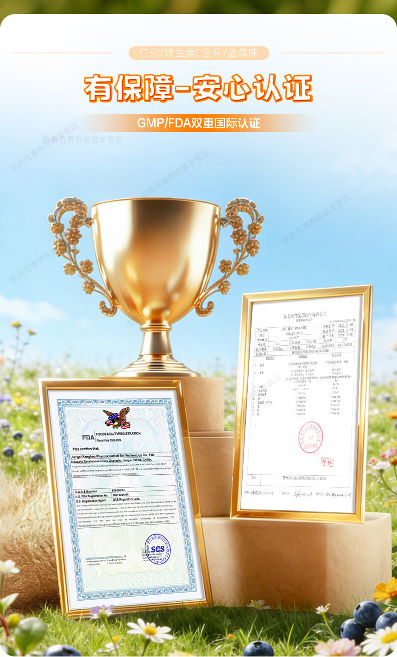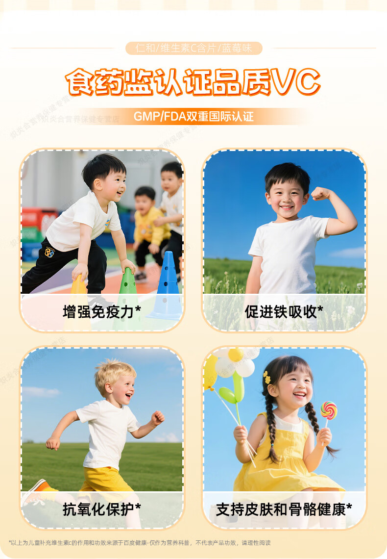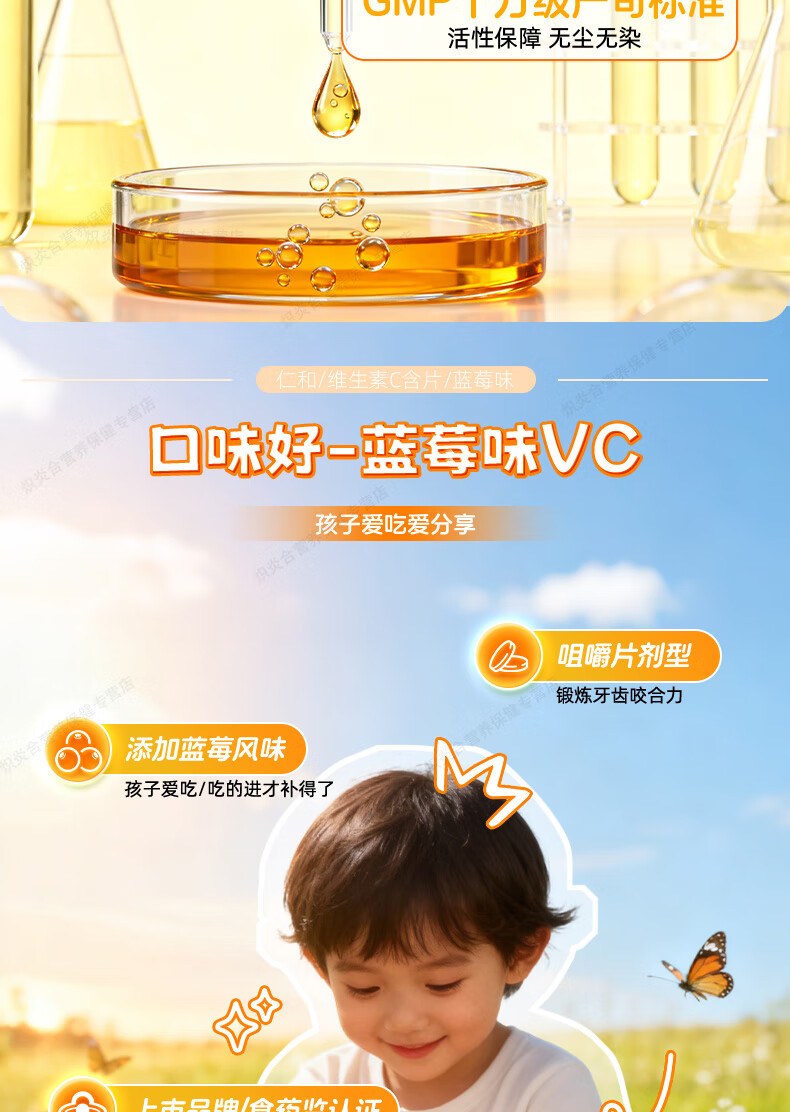仁和维生素C咀嚼片蓝莓味复合维c宝宝补充VC儿童4-17岁感冒过敏常备 【8盒巩固装】贴心守护*自护小超人 20片*8瓶