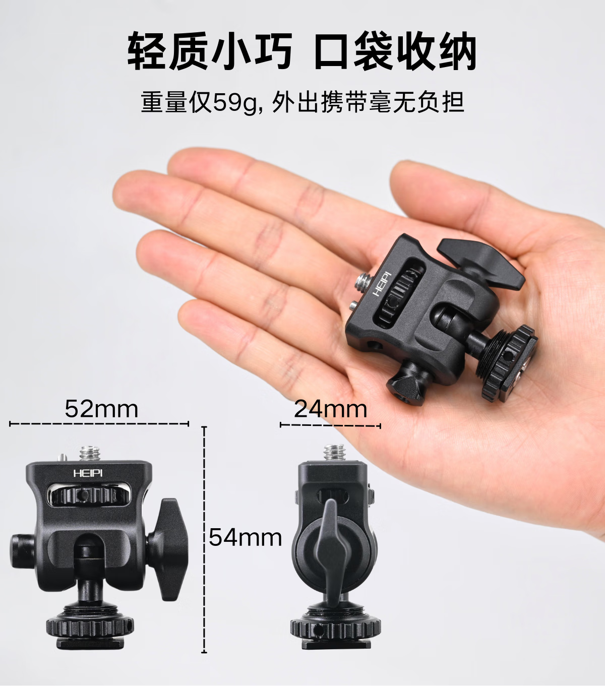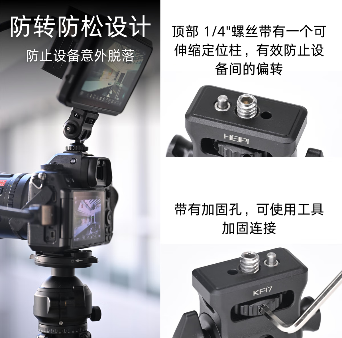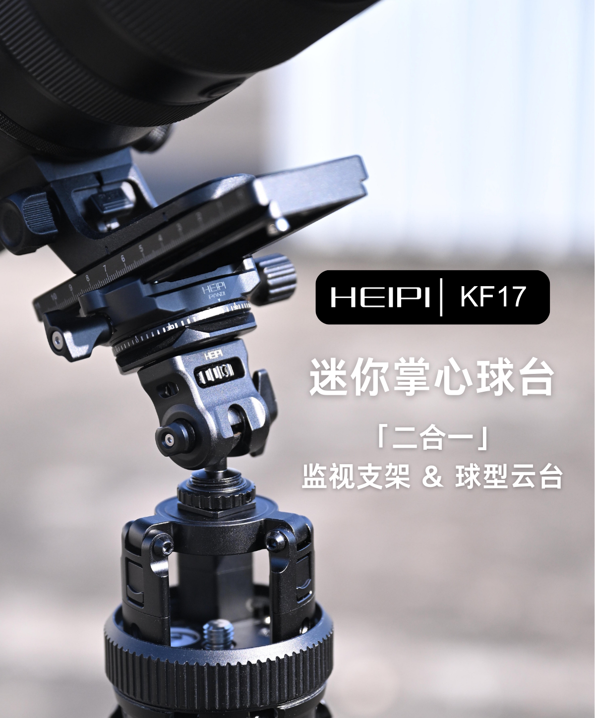 黑琵HEIPI迷你掌心球型云台KF17监视器支架蜗牛云台单反相机微单配件三脚架配件 KF17迷你云台+全景夹座+大力夹C100(全银)