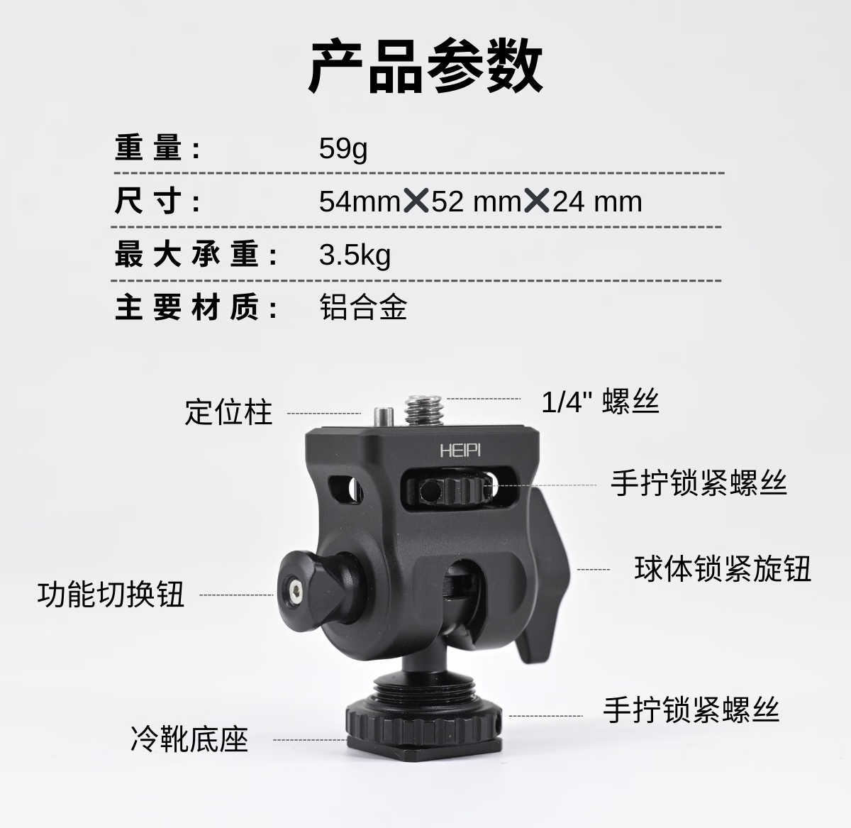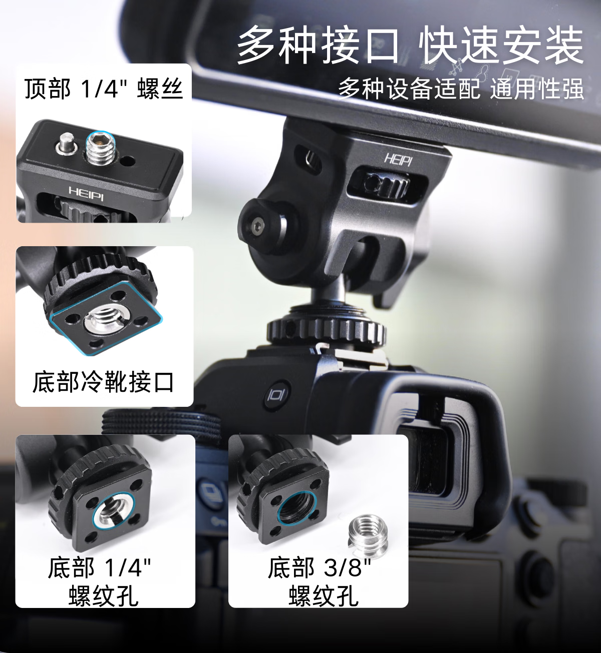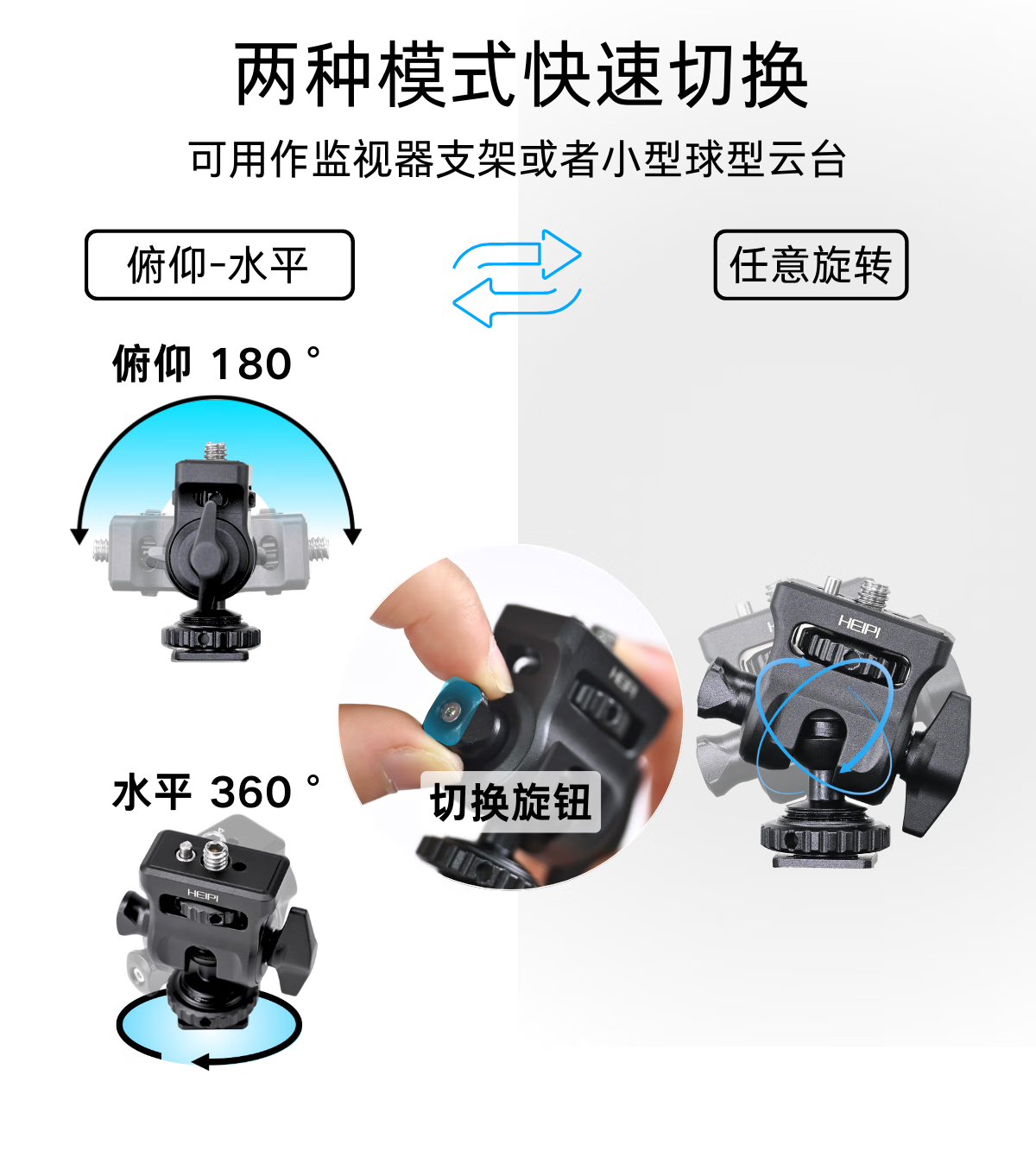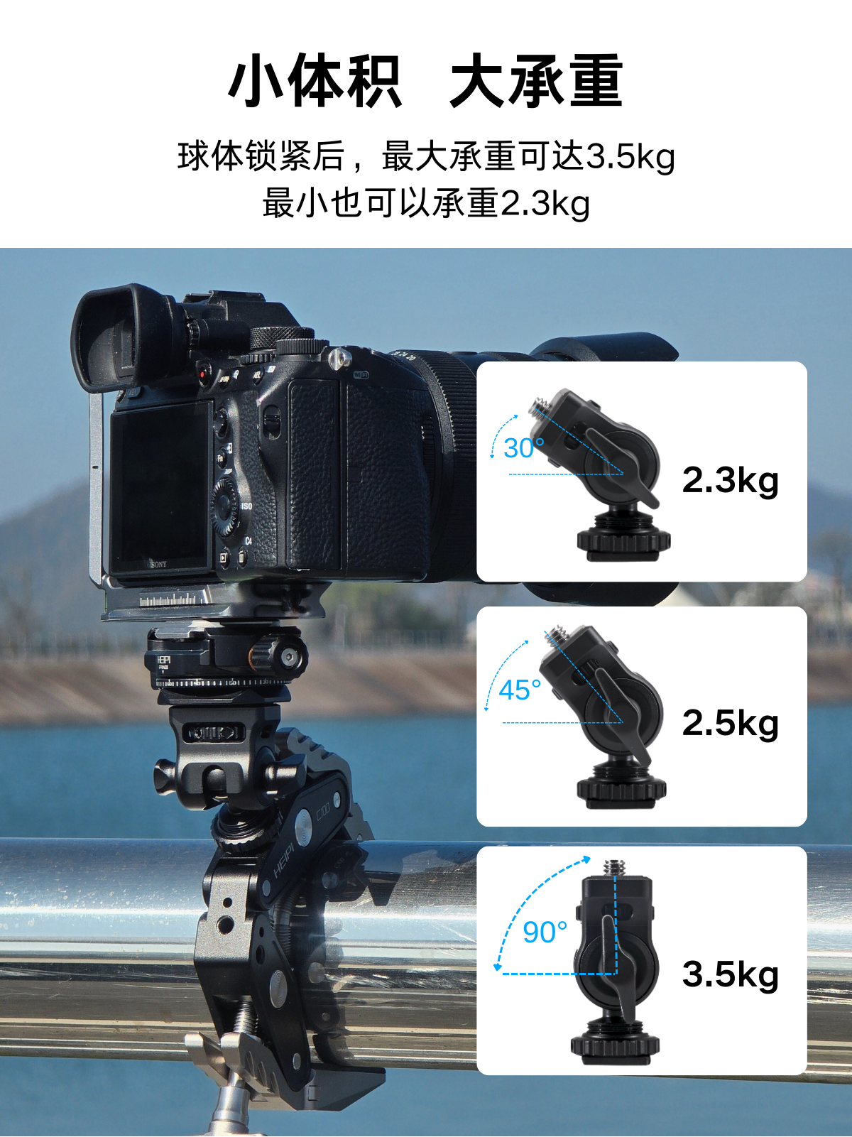 黑琵HEIPI迷你掌心球型云台KF17监视器支架蜗牛云台单反相机微单配件三脚架配件 KF17迷你云台+全景夹座+大力夹C100(全银)