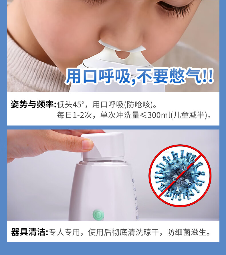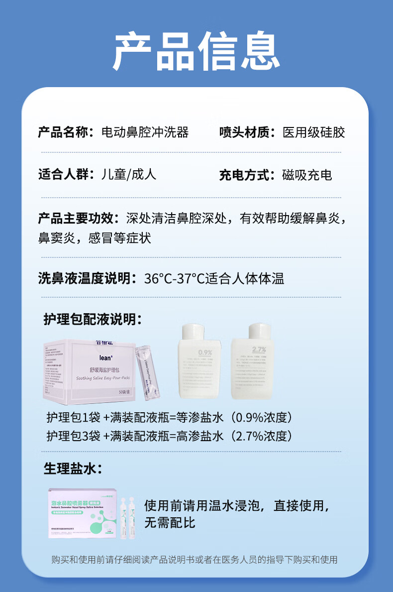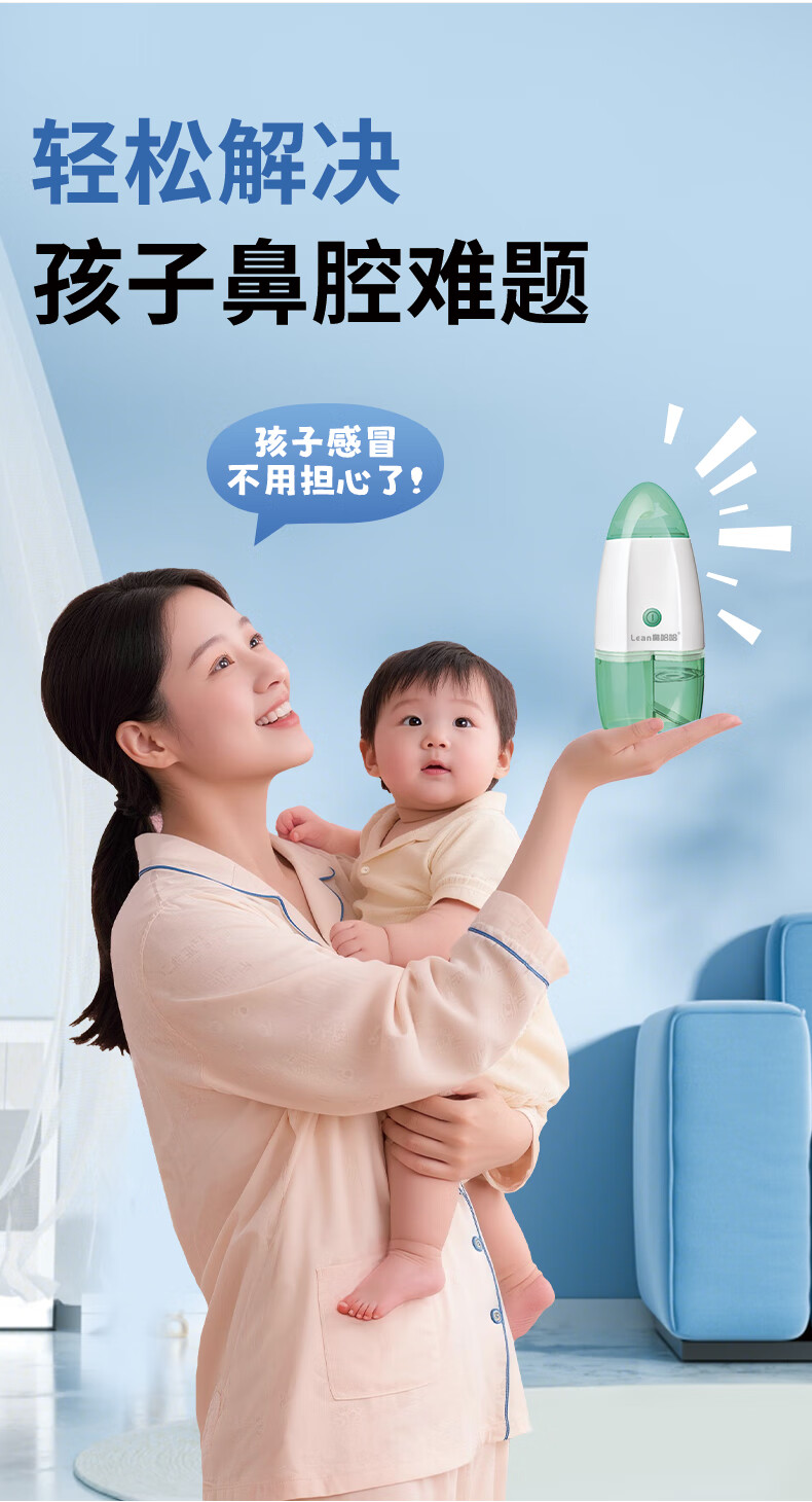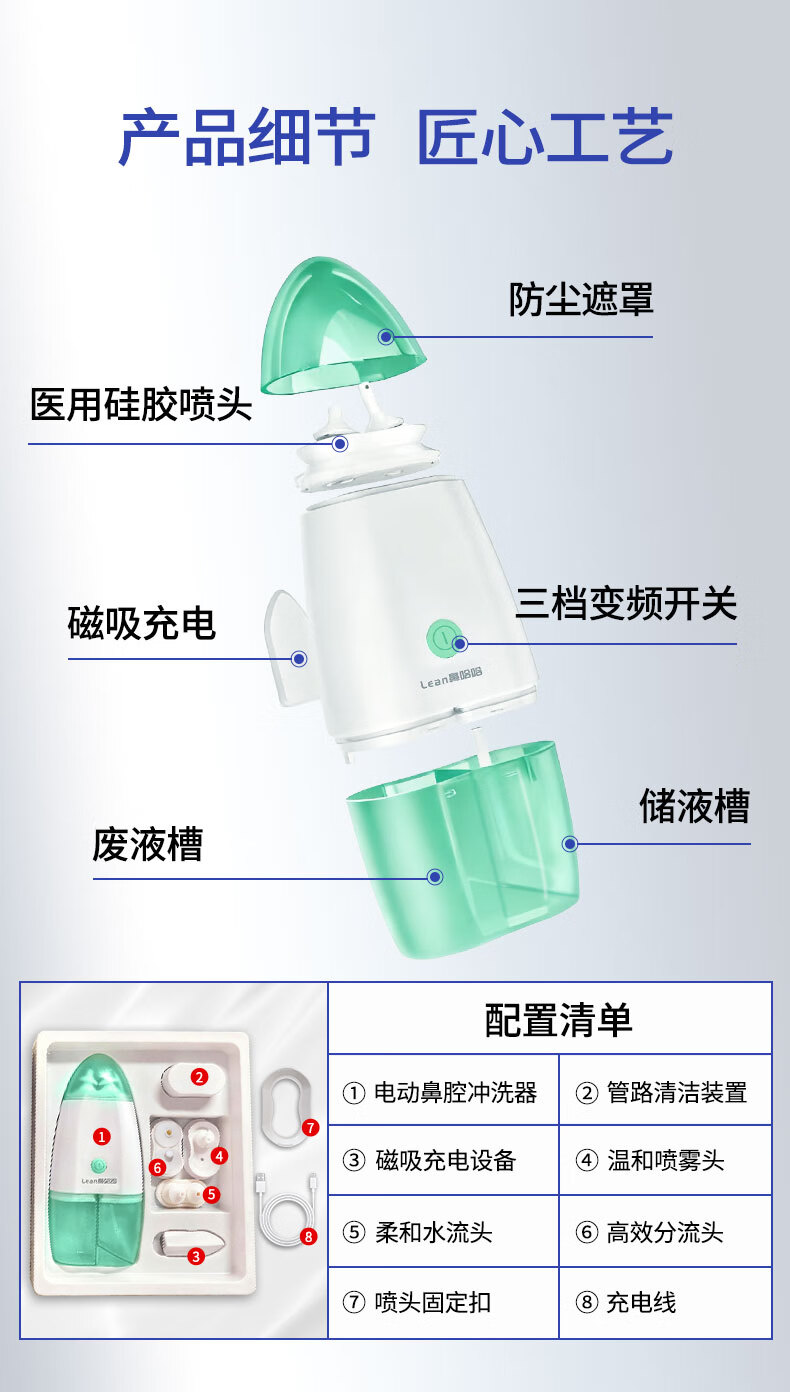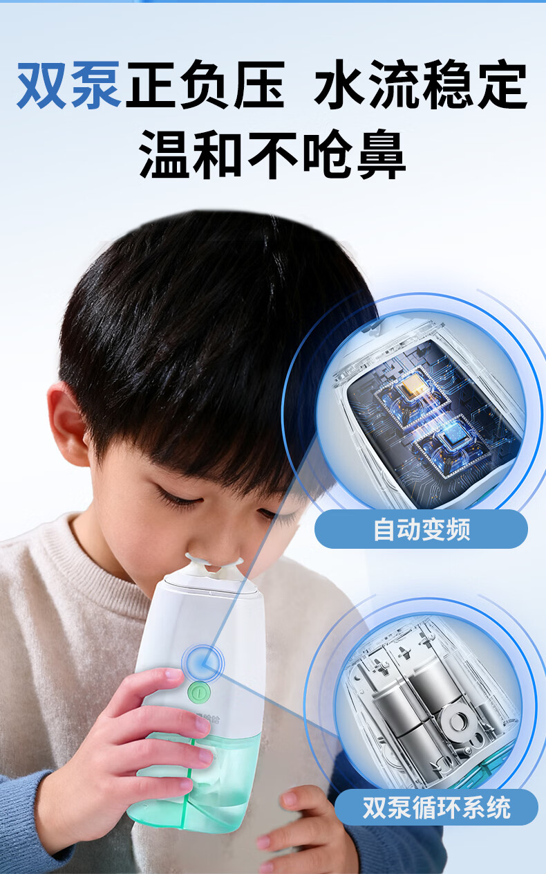 lean乐恩鼻哈哈电动洗鼻器儿童喷雾双泵脉冲正负压式鼻炎过敏鼻腔堵塞 儿童电动洗鼻器+【60支洗鼻液 2盒】