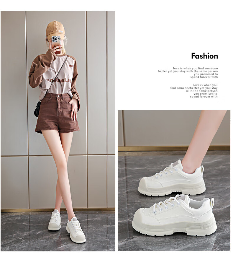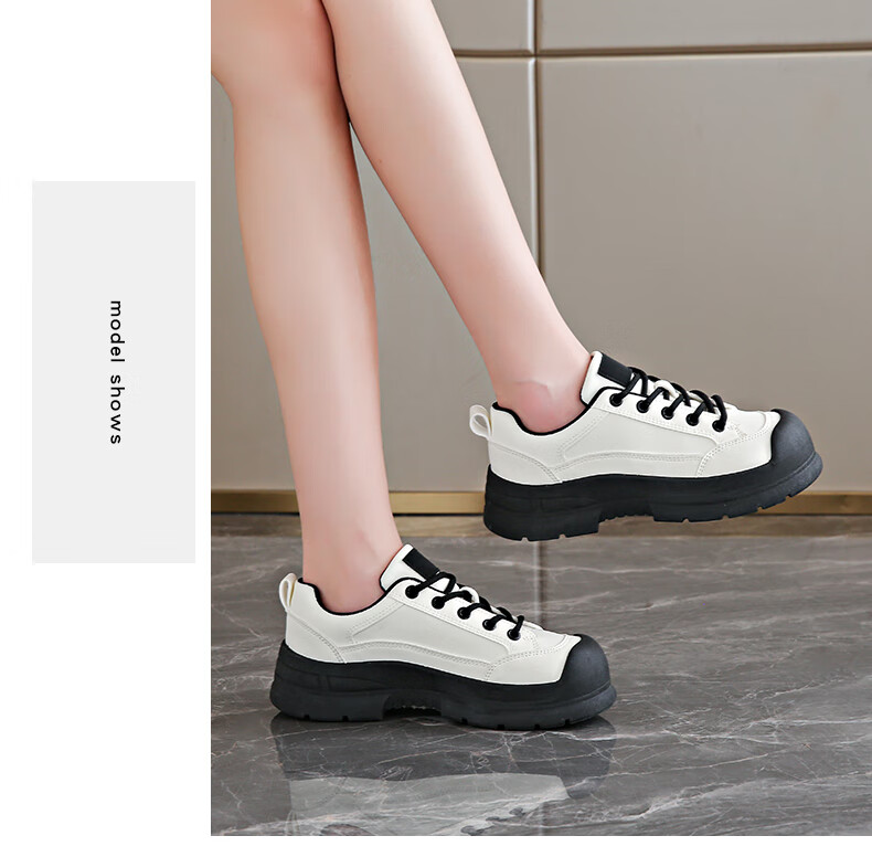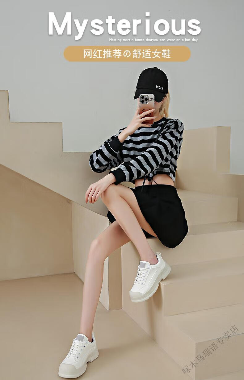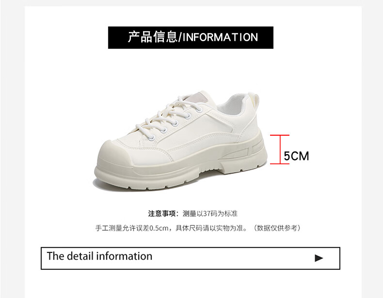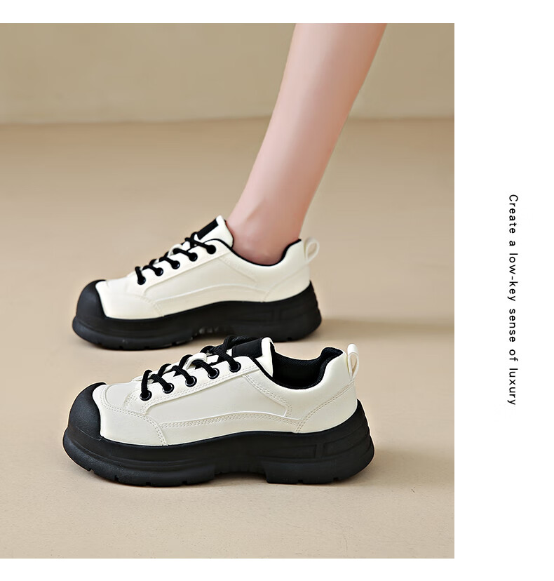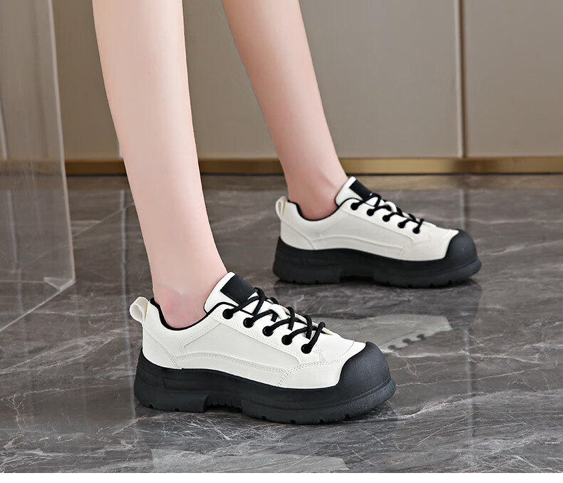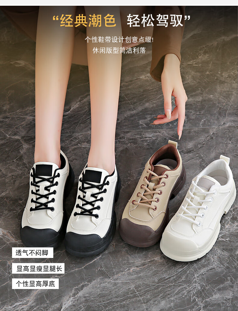 JAN ZIGULLA厚底内增高小白鞋女2025秋季新款初中生小个子女大头丑萌运动鞋 白色 40