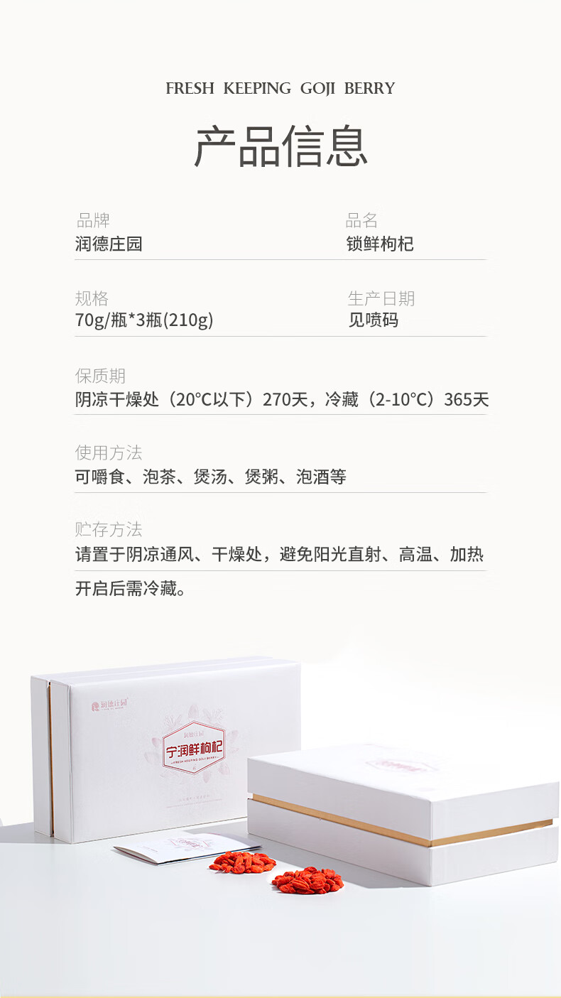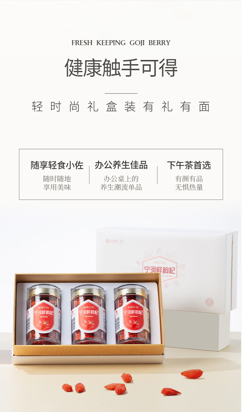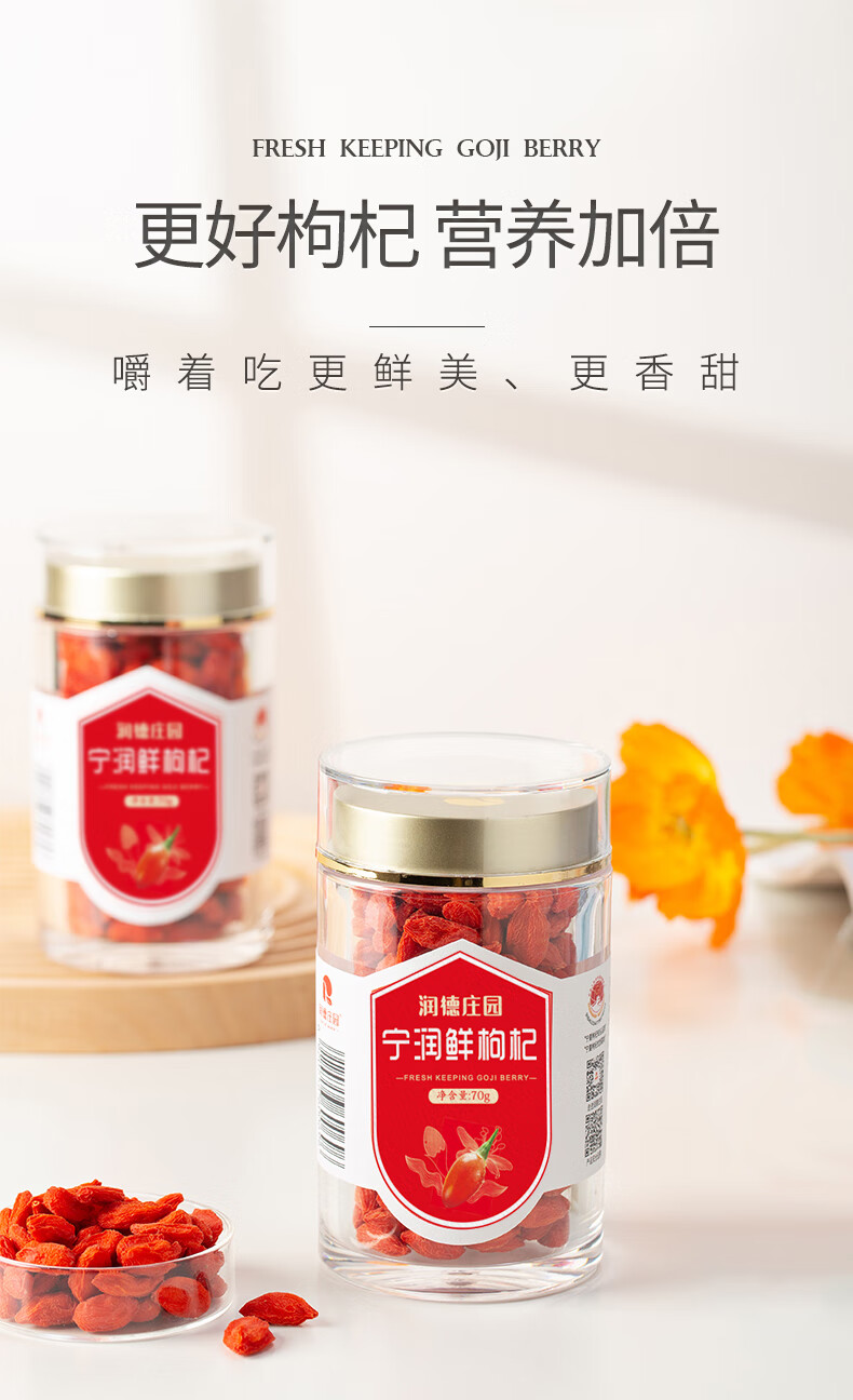 润德庄园有机锁住鲜枸杞 宁夏正宗特优级富硒头茬枸杞子无硫熏 年货礼盒 【顺丰包邮】有机富硒鲜枸杞 70g*3罐 【礼盒装】