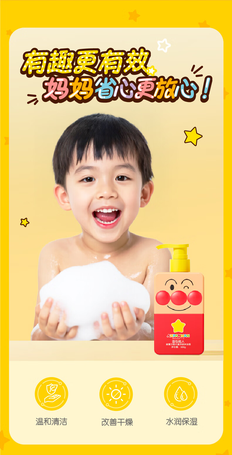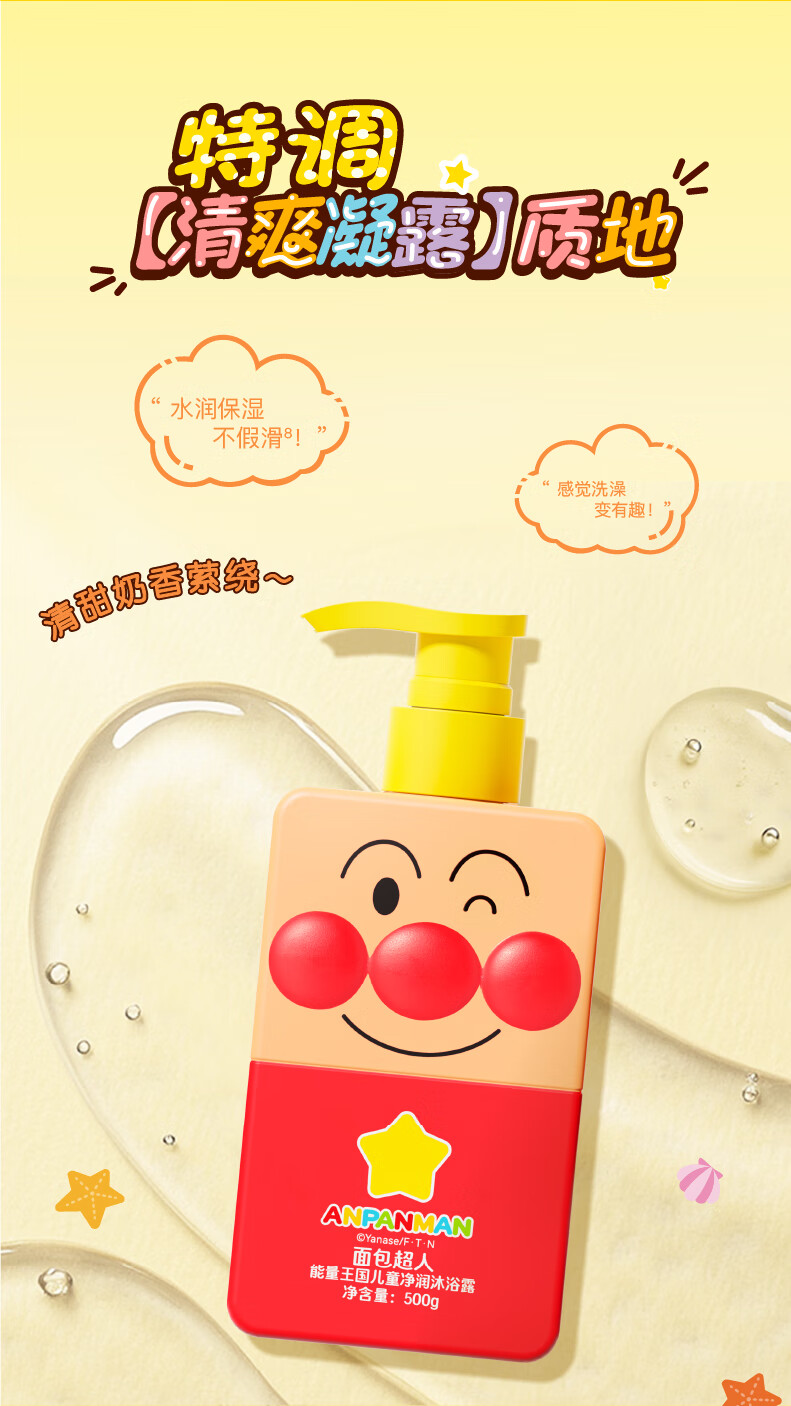 面包超人儿童沐浴露 宝宝沐浴乳温和易冲洗沐浴液500ml 新年礼物送宝宝 【温和清爽】儿童净润沐浴露500g