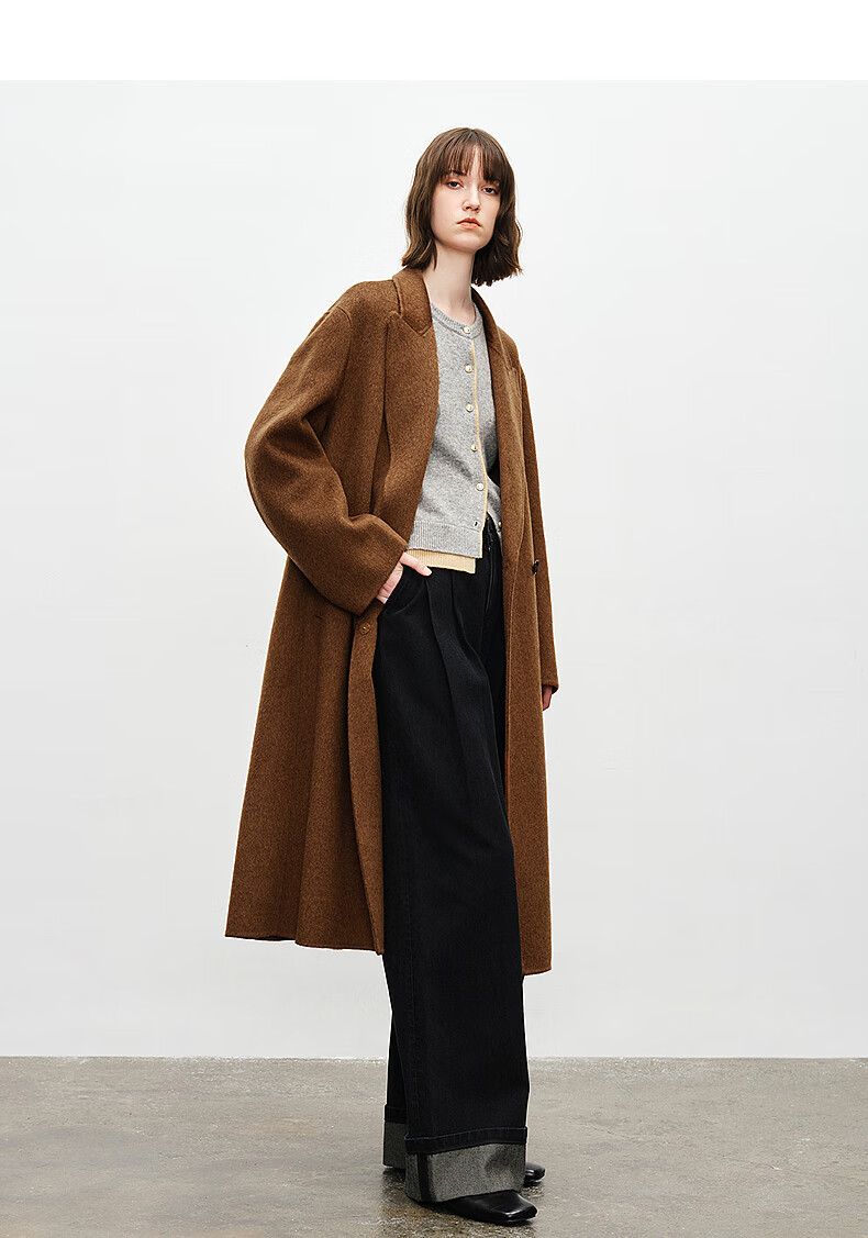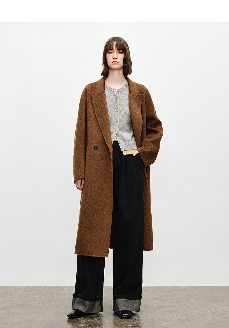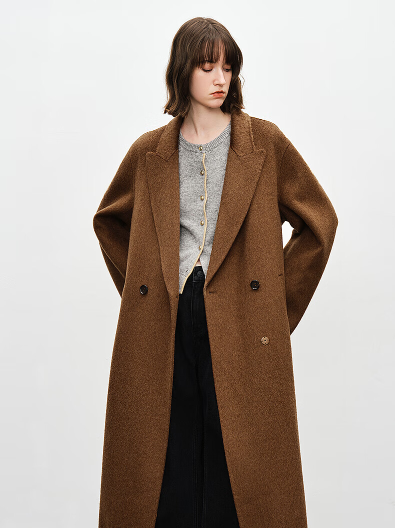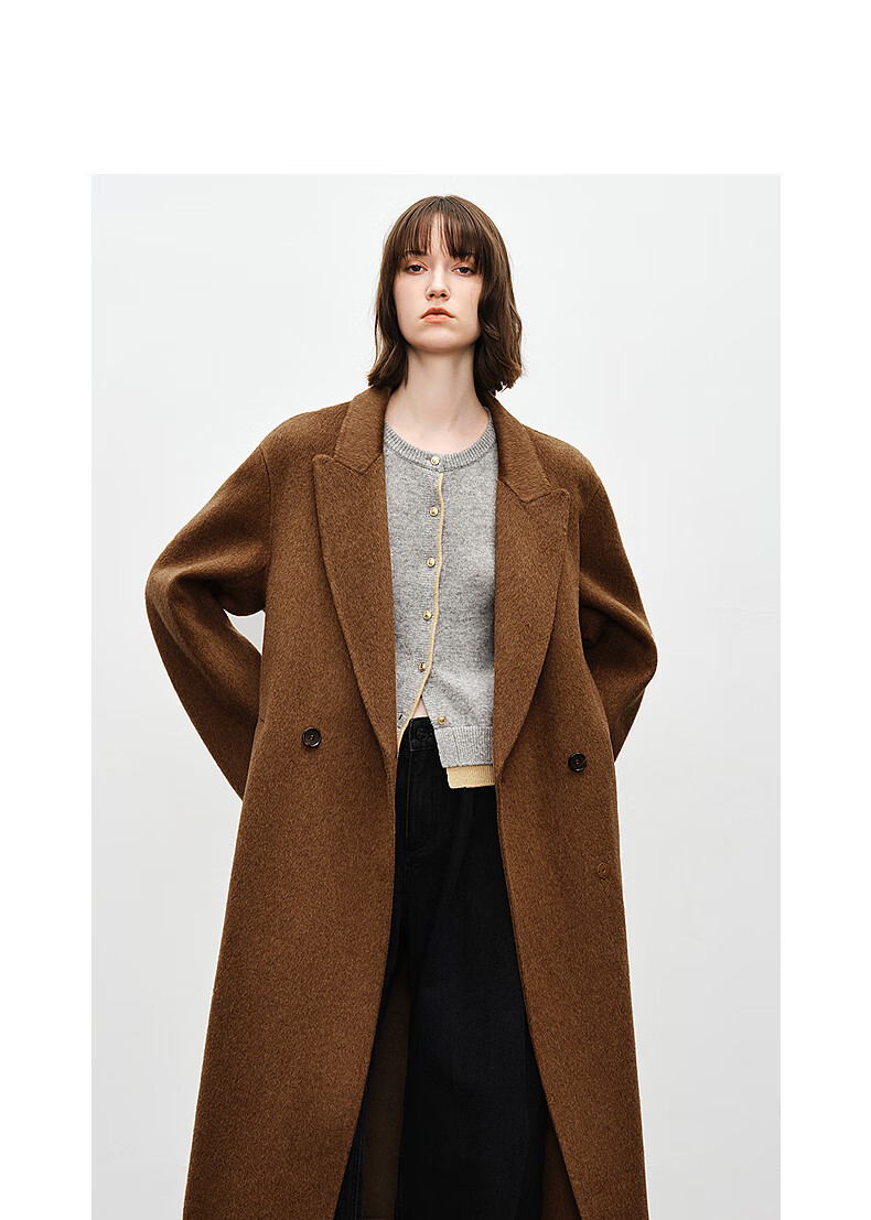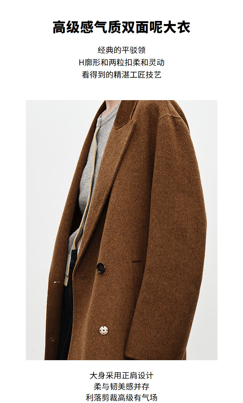 H's时髦高级感气质双面呢大衣冬新女装绵羊毛外套 摩卡咖 XS