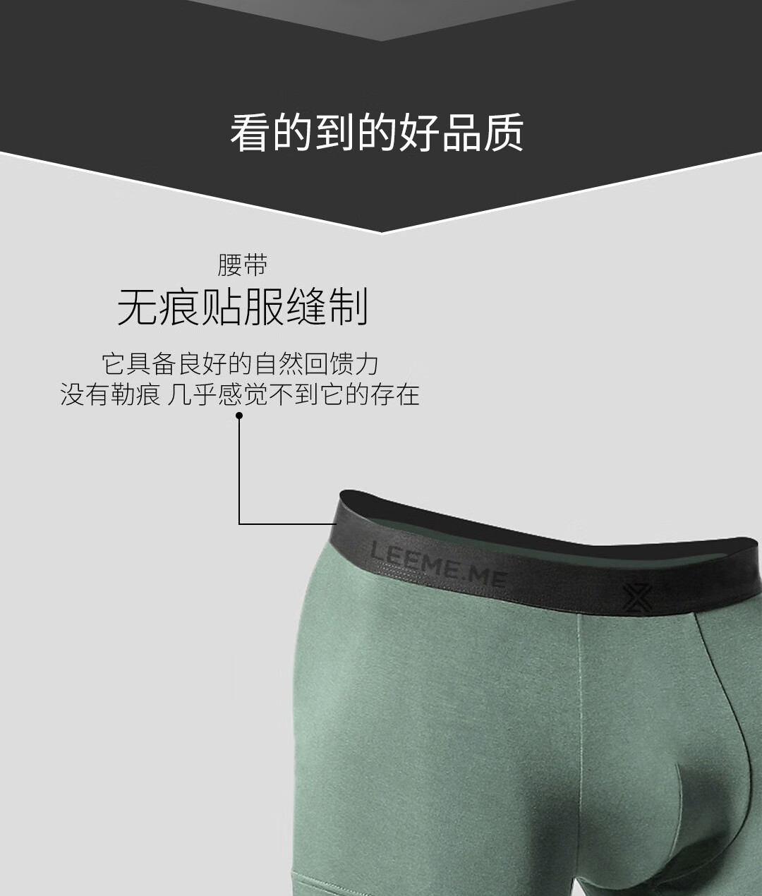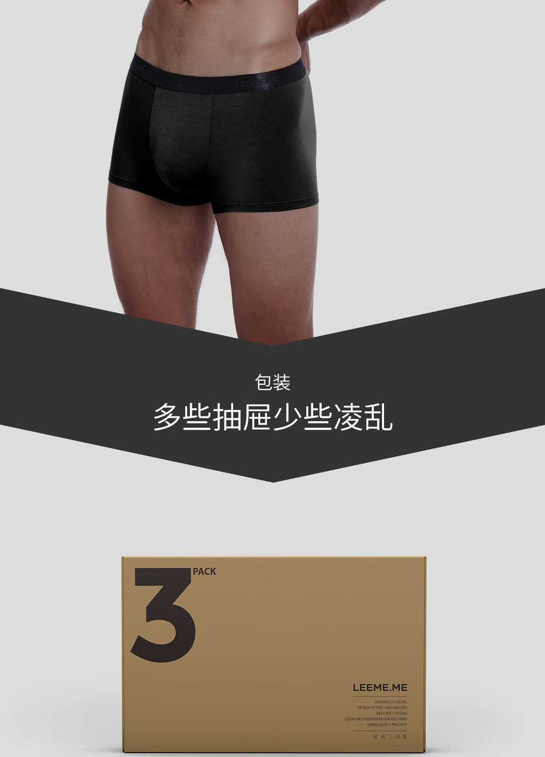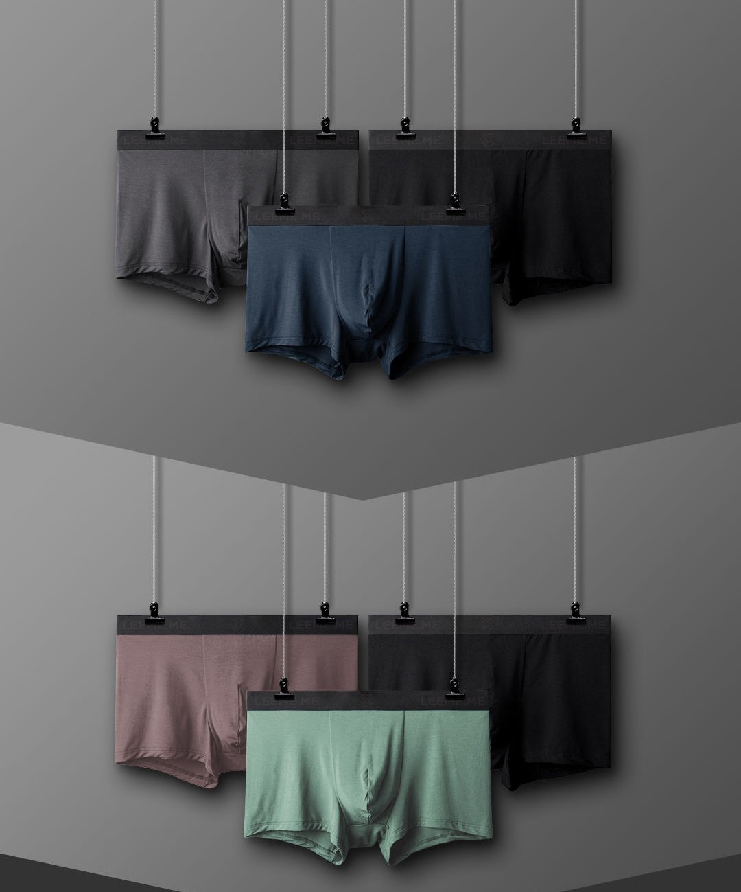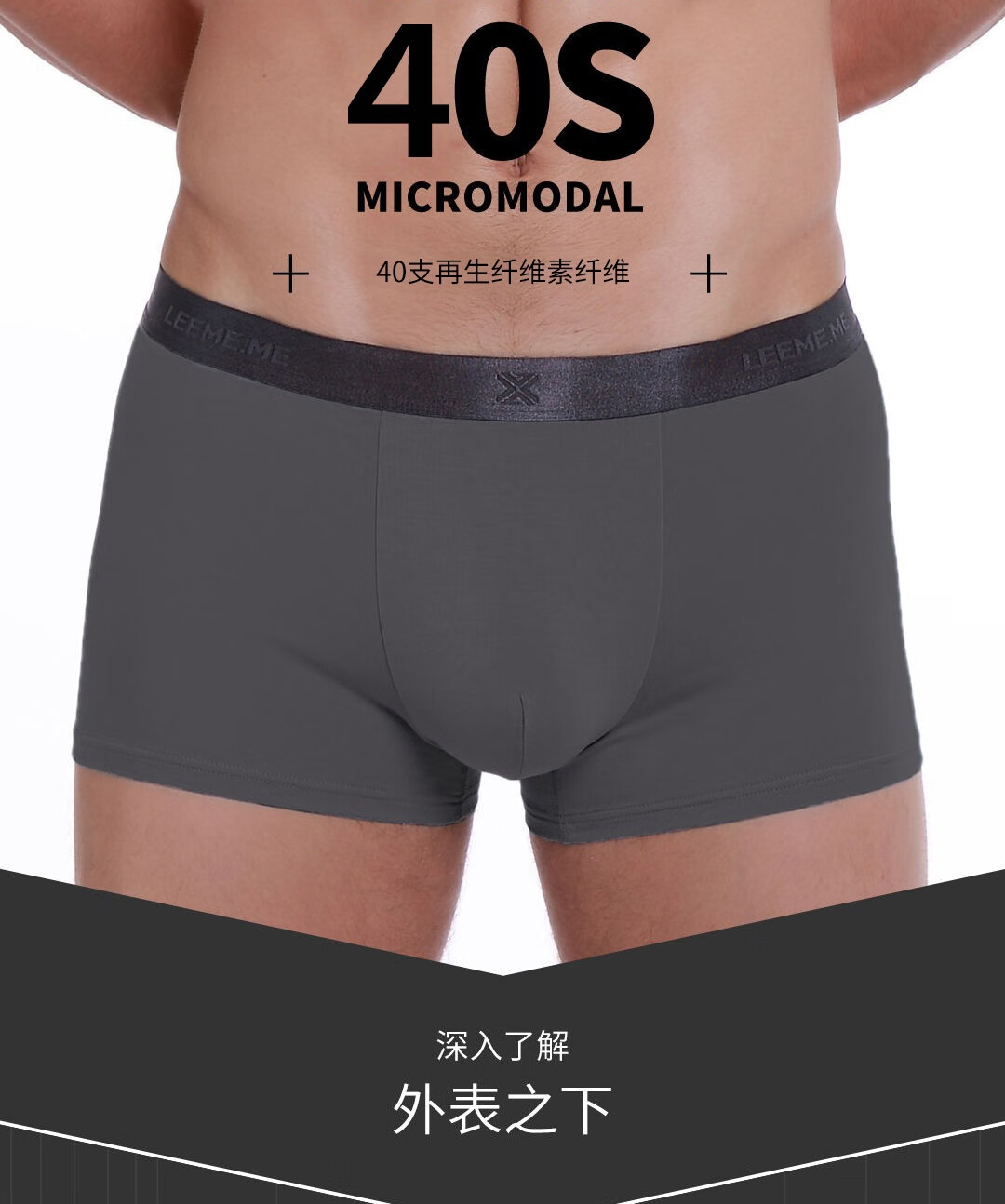 LEEME.ME 粒米男士内裤男莫代尔平角裤抗菌弹力透气四角裤3条装 巅峰黑+深海蓝+ 冷酷灰 XXL(185/92)