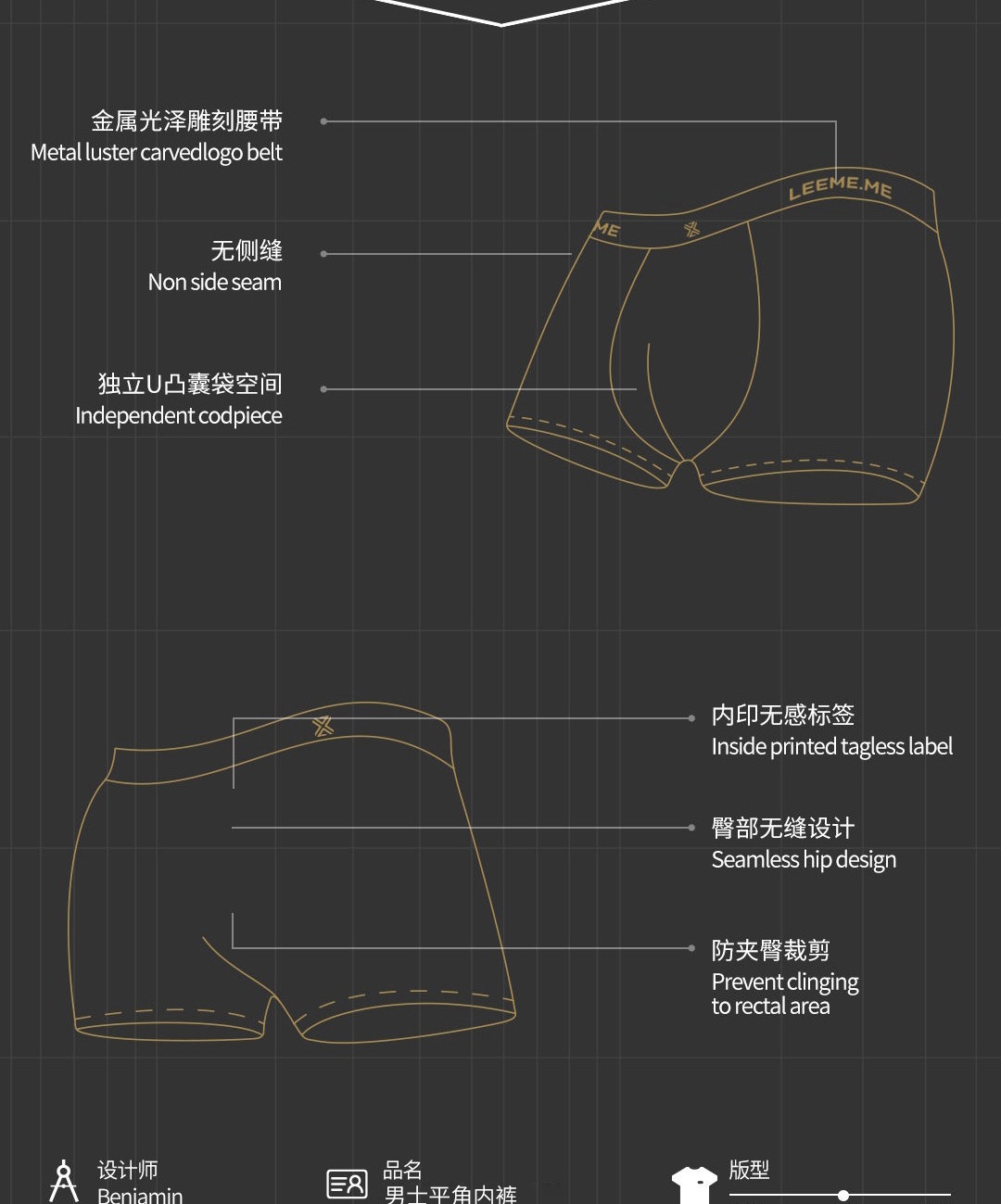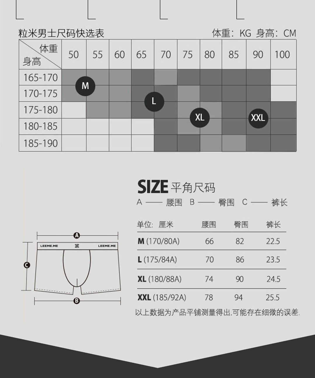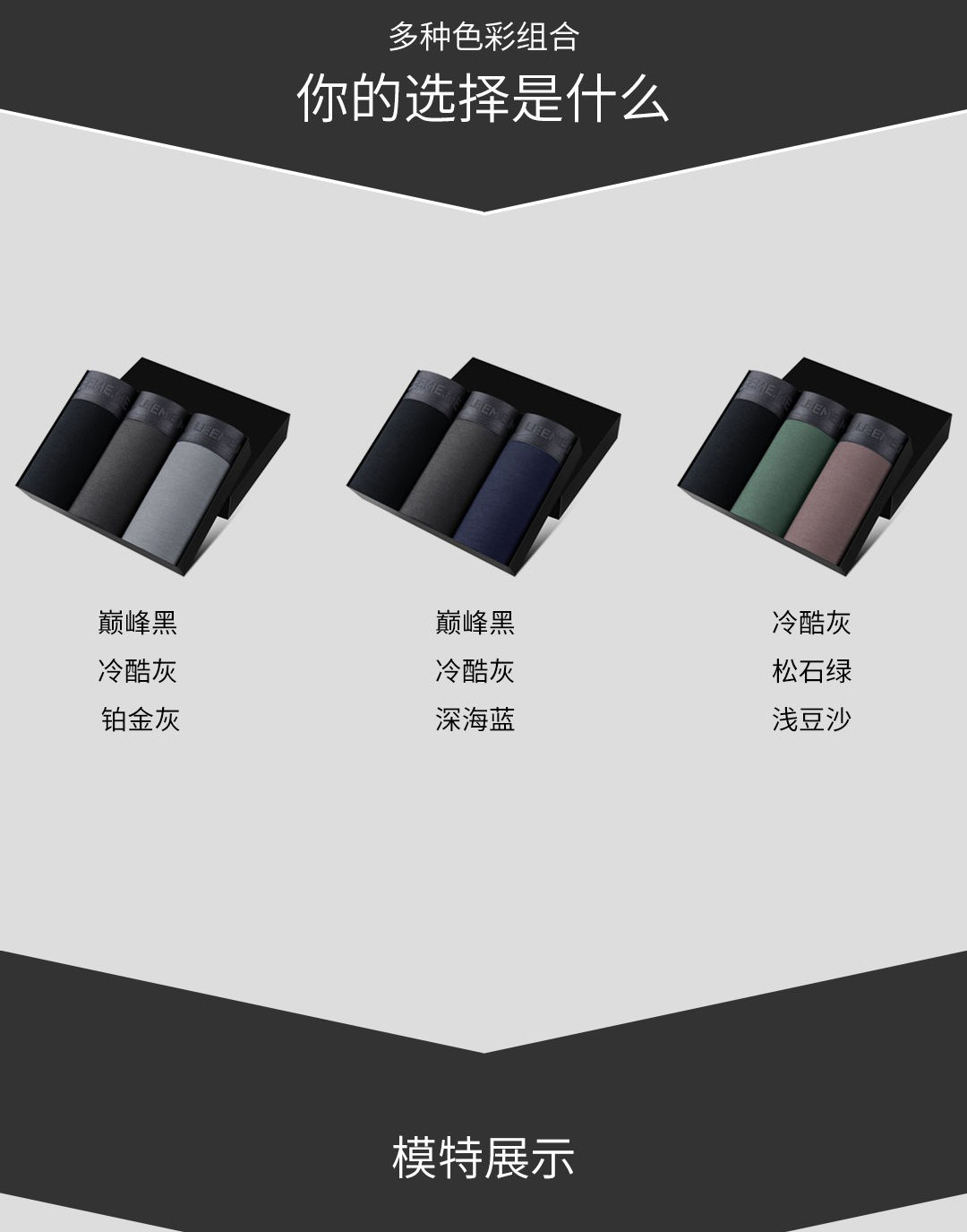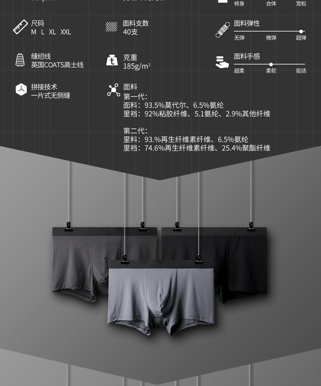 LEEME.ME 粒米男士内裤男莫代尔平角裤抗菌弹力透气四角裤3条装 巅峰黑+深海蓝+ 冷酷灰 XXL(185/92)